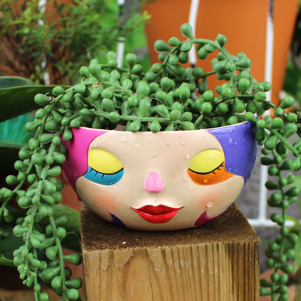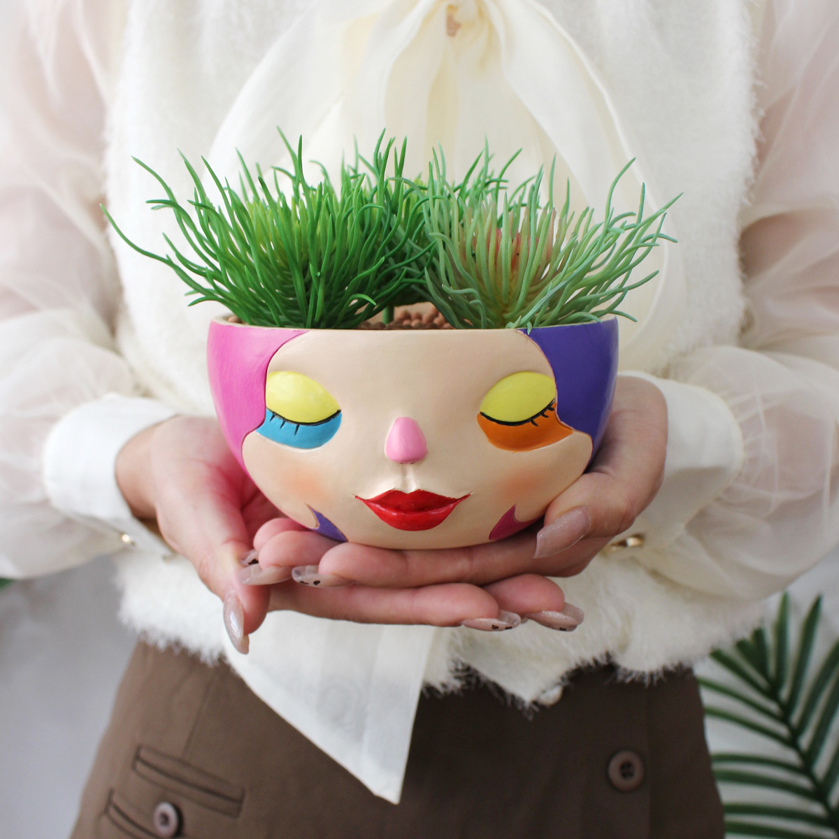 국경 간 신제품 닫힌 눈 얼굴 꽃 냄비 보헤미안 화려한 수지 공예 육체 화분 정원 창문 장식