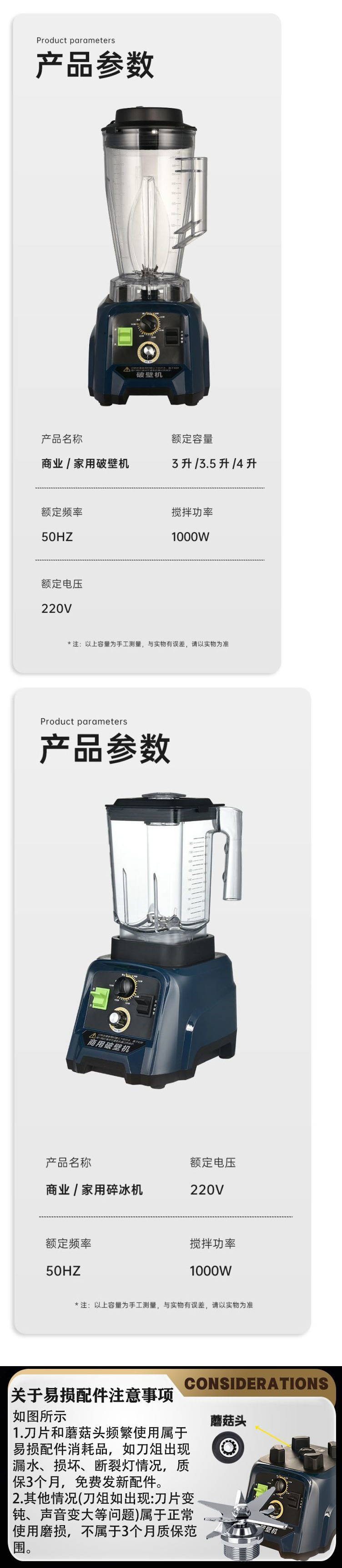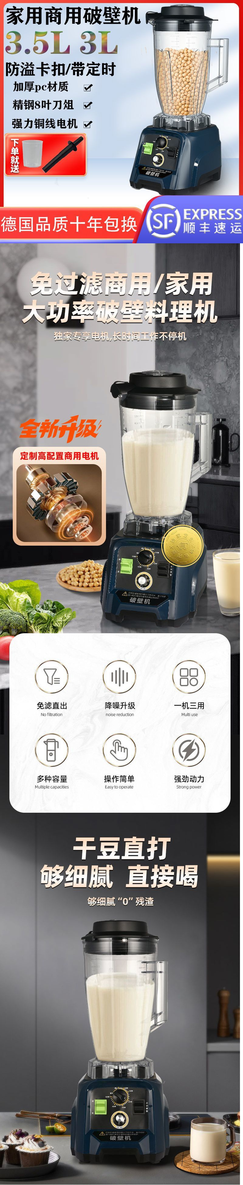 • 가열 없음/8잎 대형 블레이드/독일 품질-3리터[표준 버전 모터]는 스무디를 칠 수 없습니다.