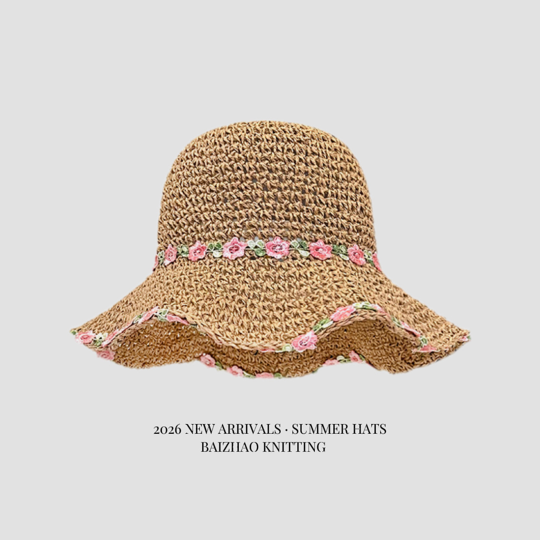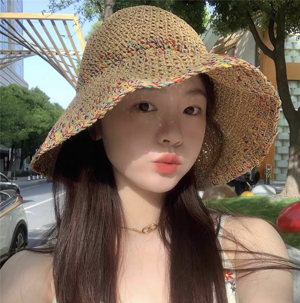 밀짚 모자 여성의 2025 년 새로운 여름 중공 밀짚 모자 여행 태양 보호 모자 해변 큰 브림 차양 모자스토어 가기