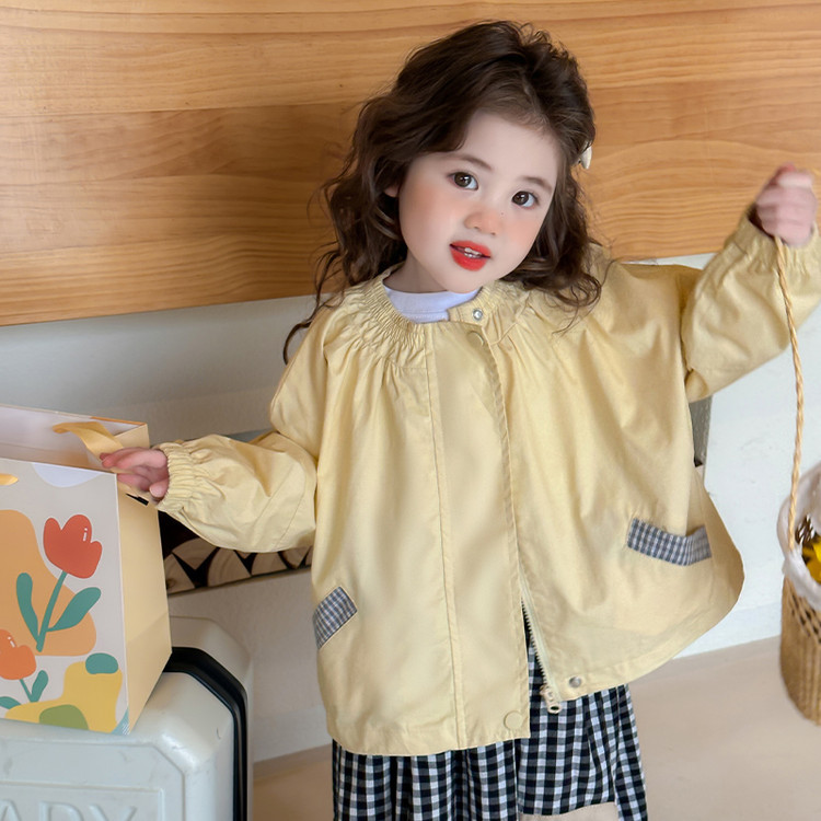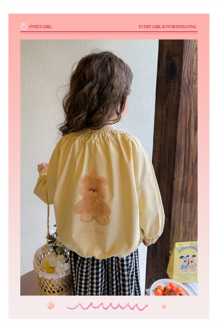 소녀 격자 무늬 포켓 베어 코트 2025 봄과 가을 새로운 패션 귀여운 곰 캐주얼 코트 재킷스토어 가기