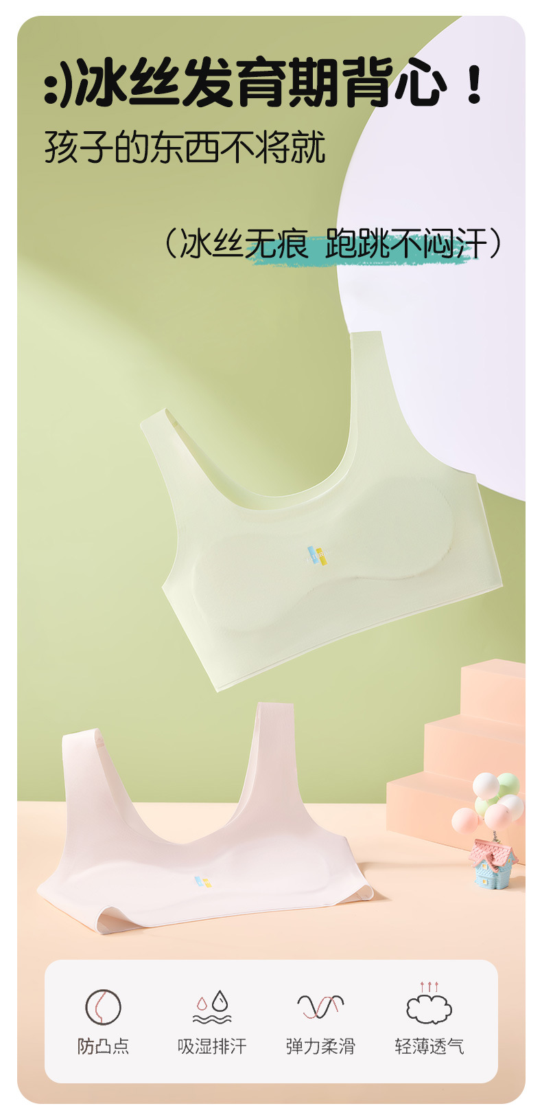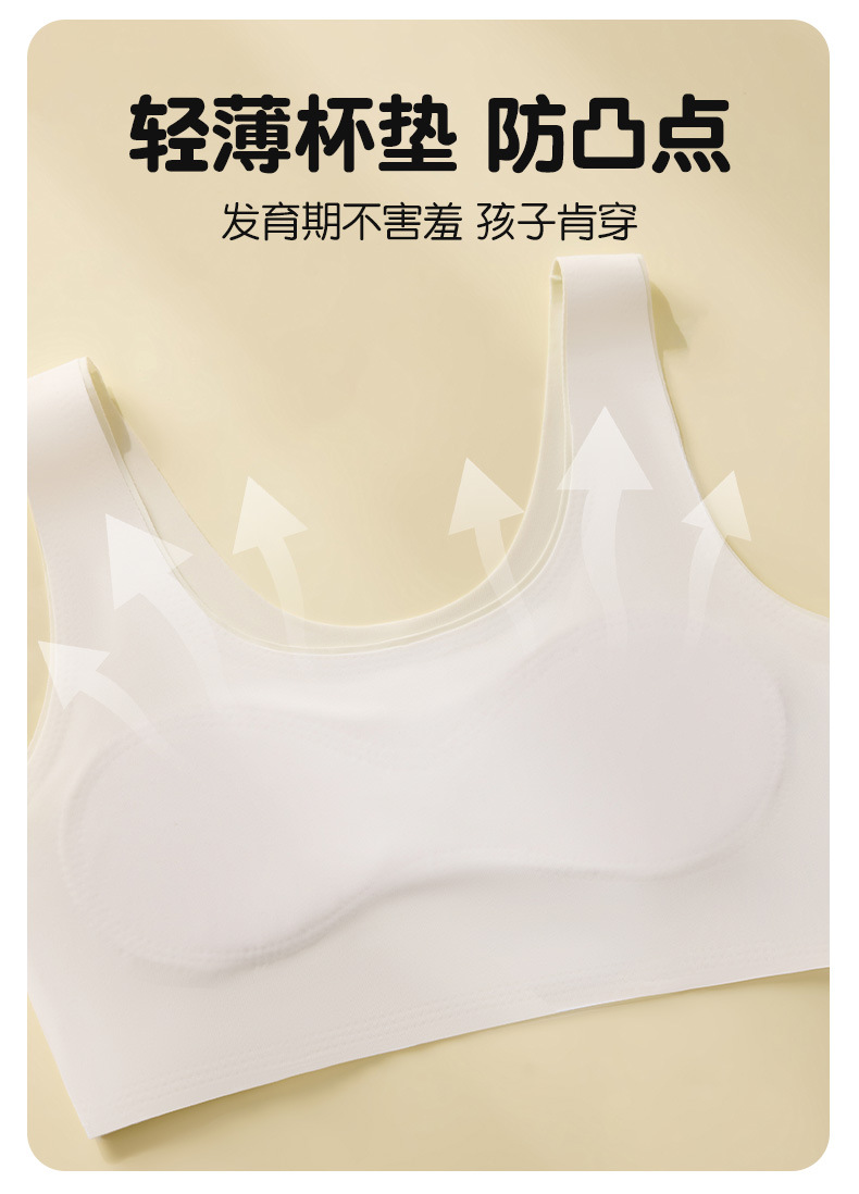 새 스타일 소녀 속옷 개발 기간 소녀 어린이 첫 단계 9-12 년 된 traceless 아이스 실크 조끼 플러스 사이즈 고정 컵
