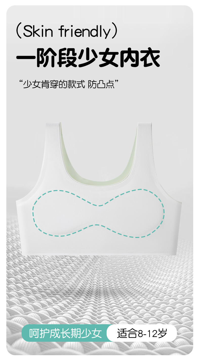 새 스타일 소녀 속옷 개발 기간 소녀 어린이 첫 단계 9-12 년 된 traceless 아이스 실크 조끼 플러스 사이즈 고정 컵스토어 가기