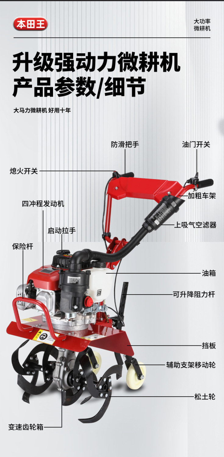 • 오리지널 수입 고급 4행정 미세 경운기, 토양 풀기 및 쟁기 헤드