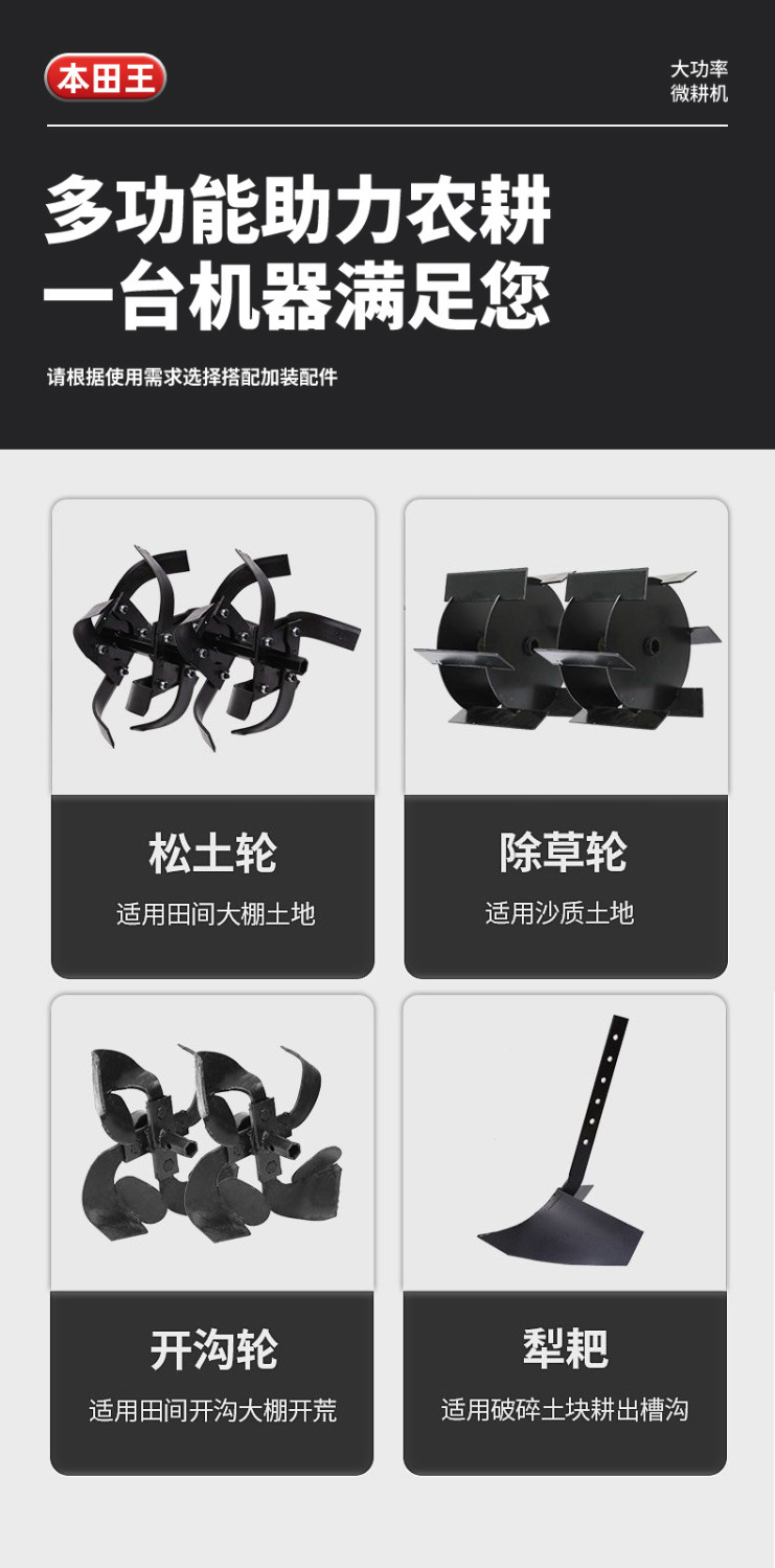 • 고급 4행정 미세 경운기, 토양 풀기, 잡초, 도랑 및 쟁기 헤드