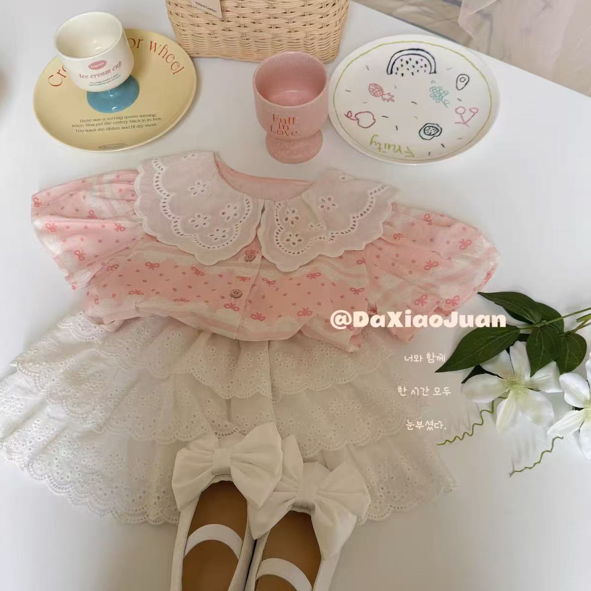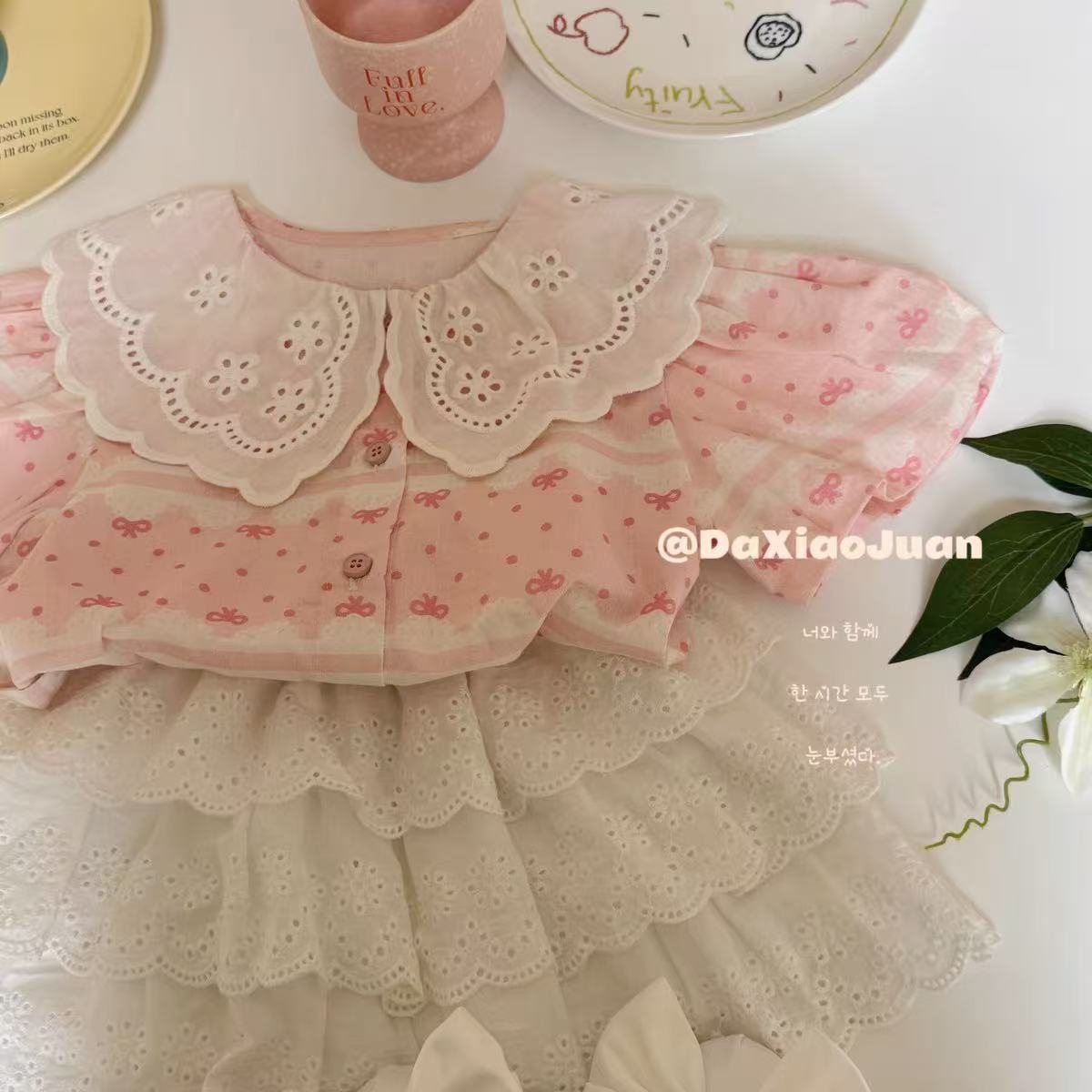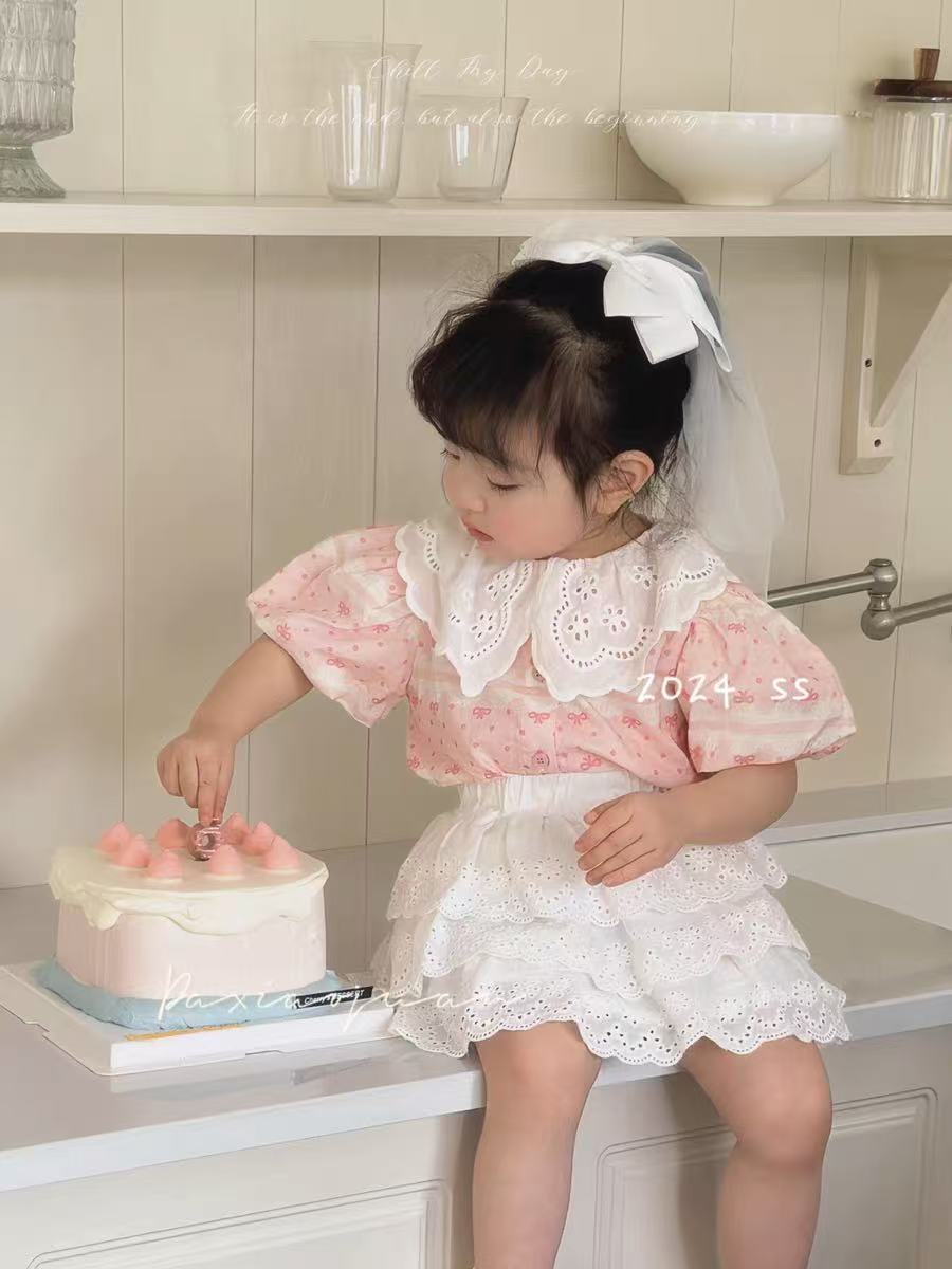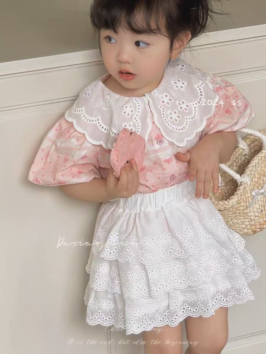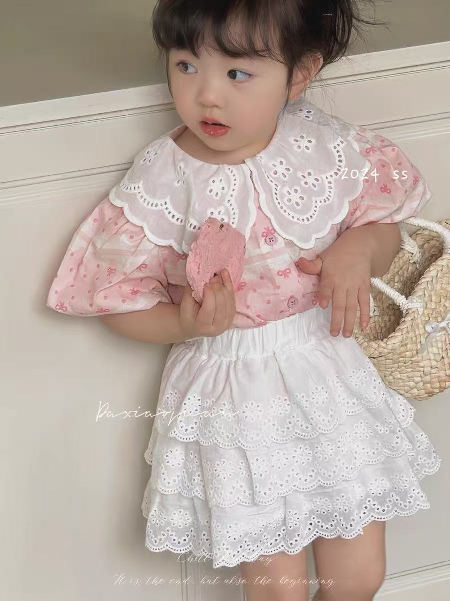 작고 작은 롤 소녀의 셔츠 여름 새로운 한국 인형 셔츠 아기 레이스 탑 레이스 스커트 케이크 스커트스토어 가기