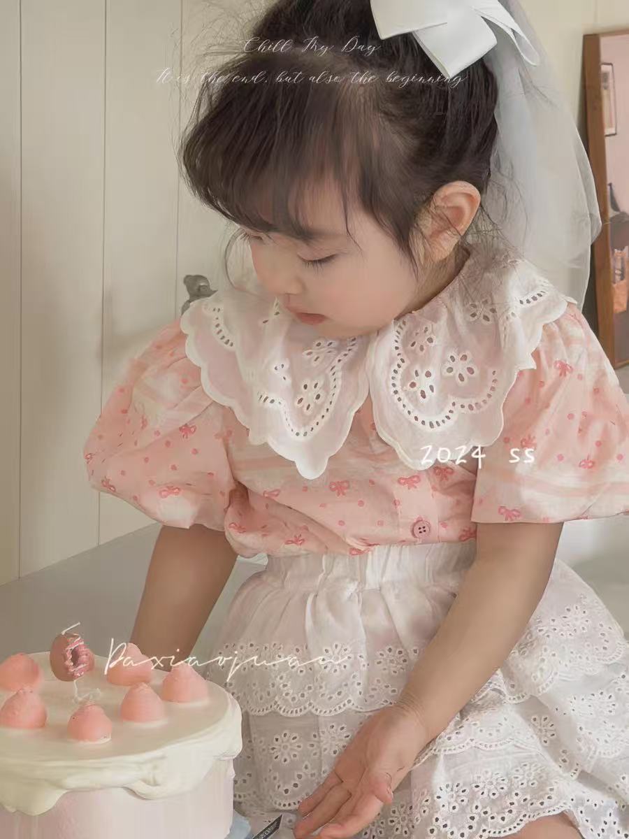 작고 작은 롤 소녀의 셔츠 여름 새로운 한국 인형 셔츠 아기 레이스 탑 레이스 스커트 케이크 스커트