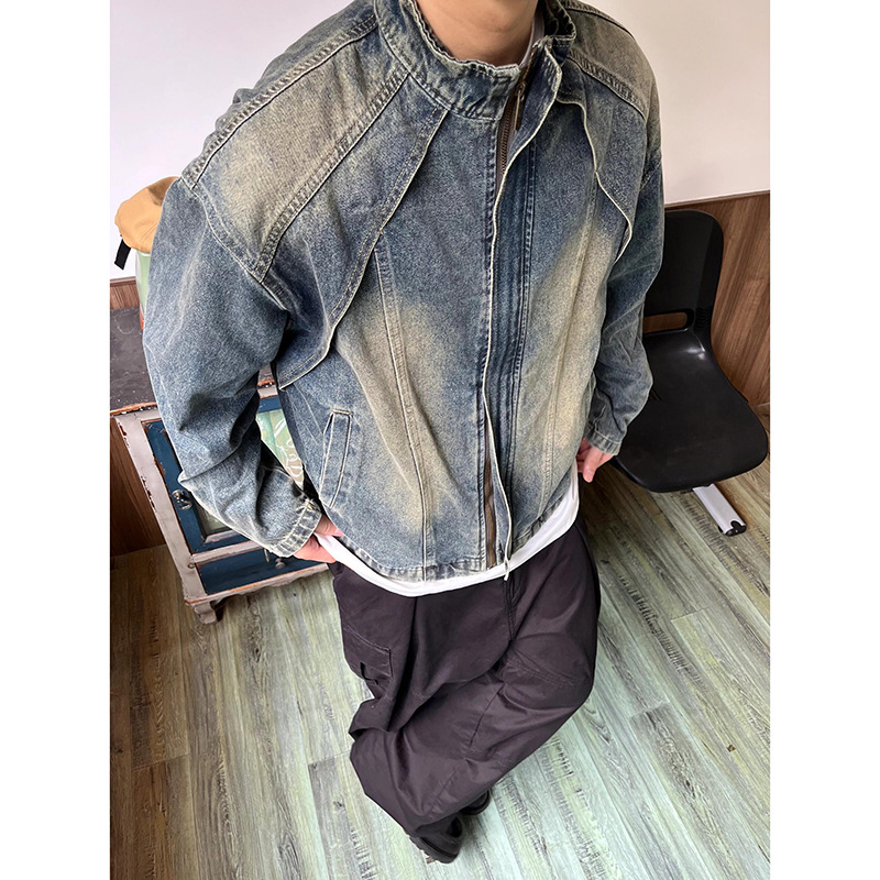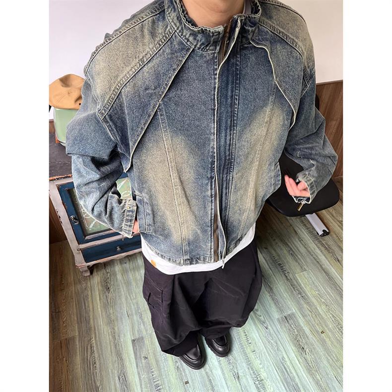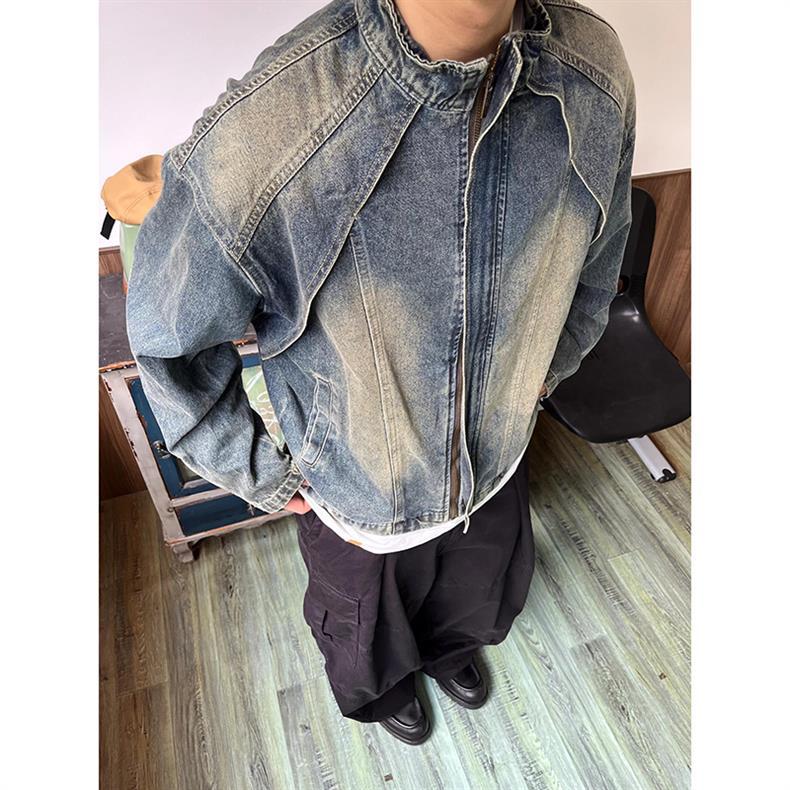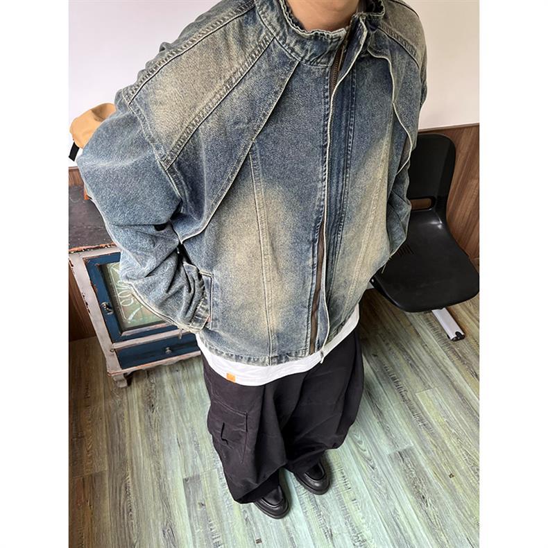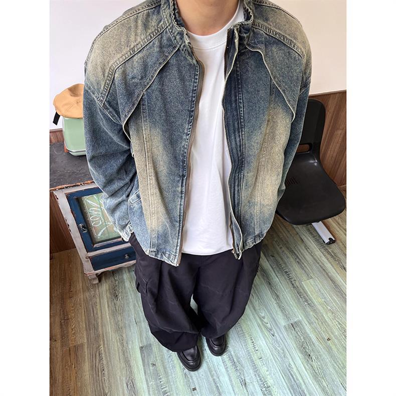 블루 세탁 데님 재킷 남자의 봄과 가을 캐주얼 해체 디자인 센스 아메리칸 스타일 하이 스트리트 툴링 올 매치 재킷 트렌디스토어 가기