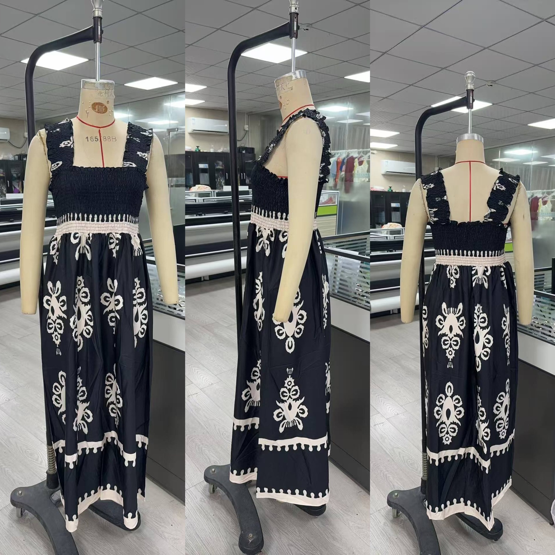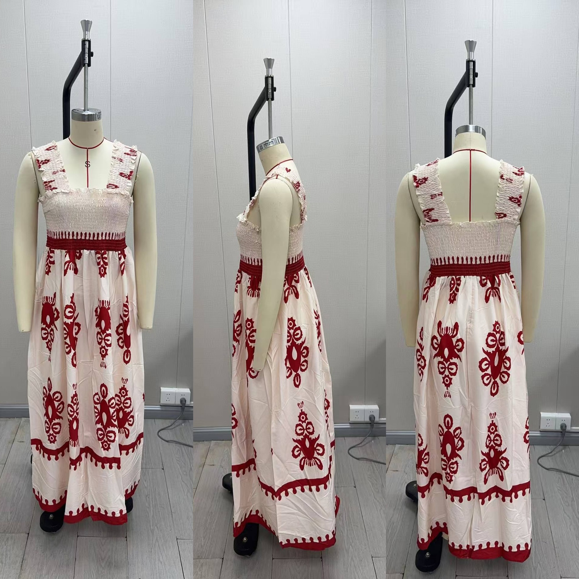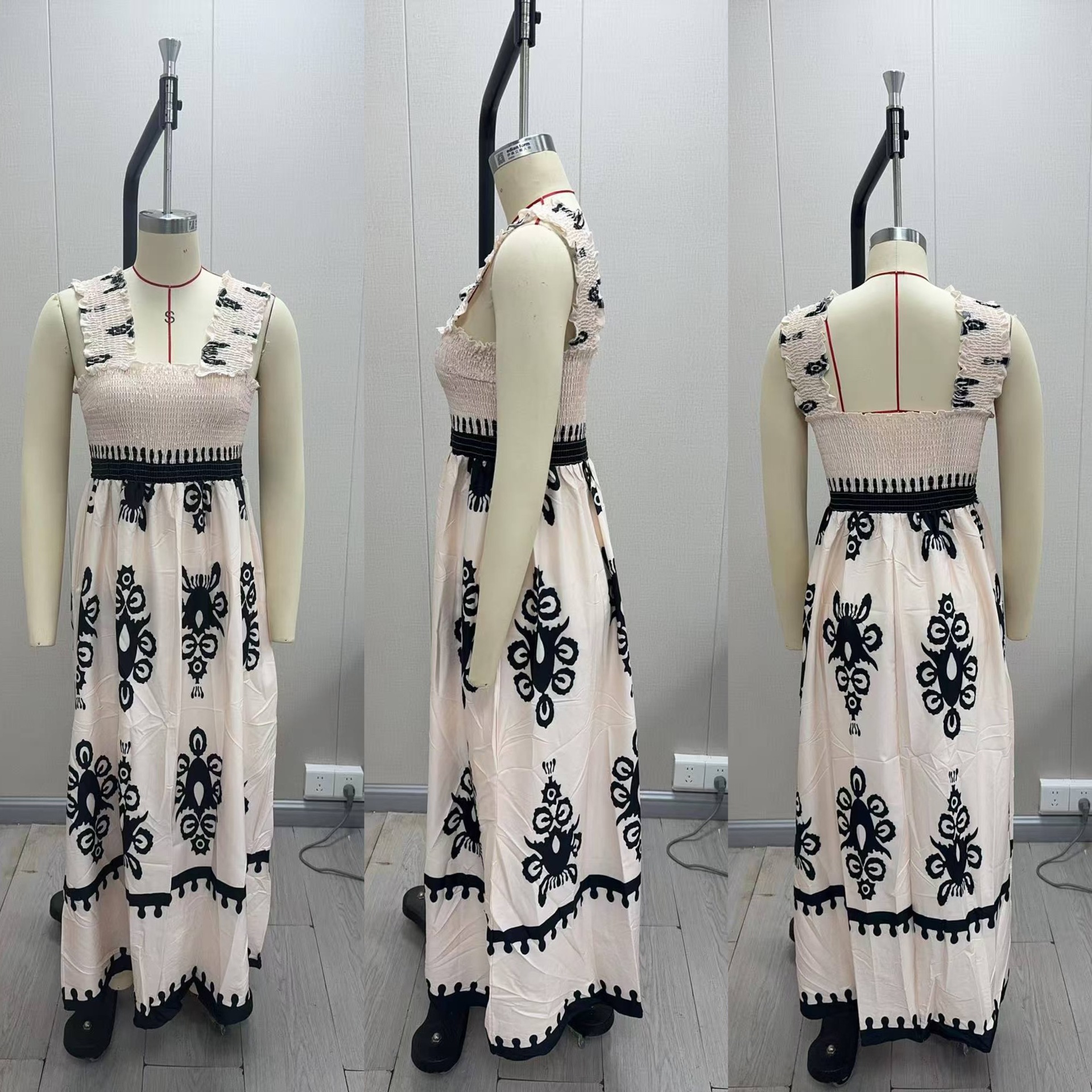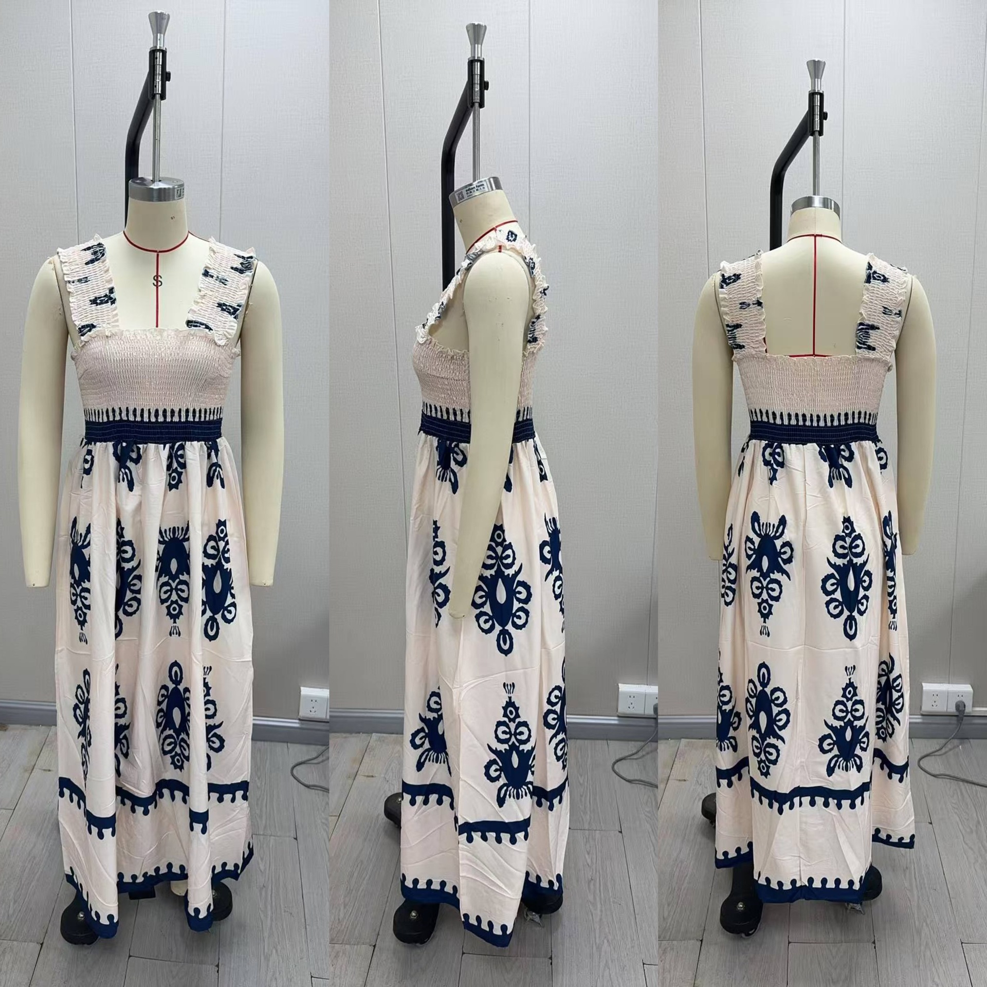 2025 유럽과 미국의 새로운 아마존 AliExpress 핫 여성 비치 원피스 휴일 스타일 인쇄 가슴 랩 원피스스토어 가기