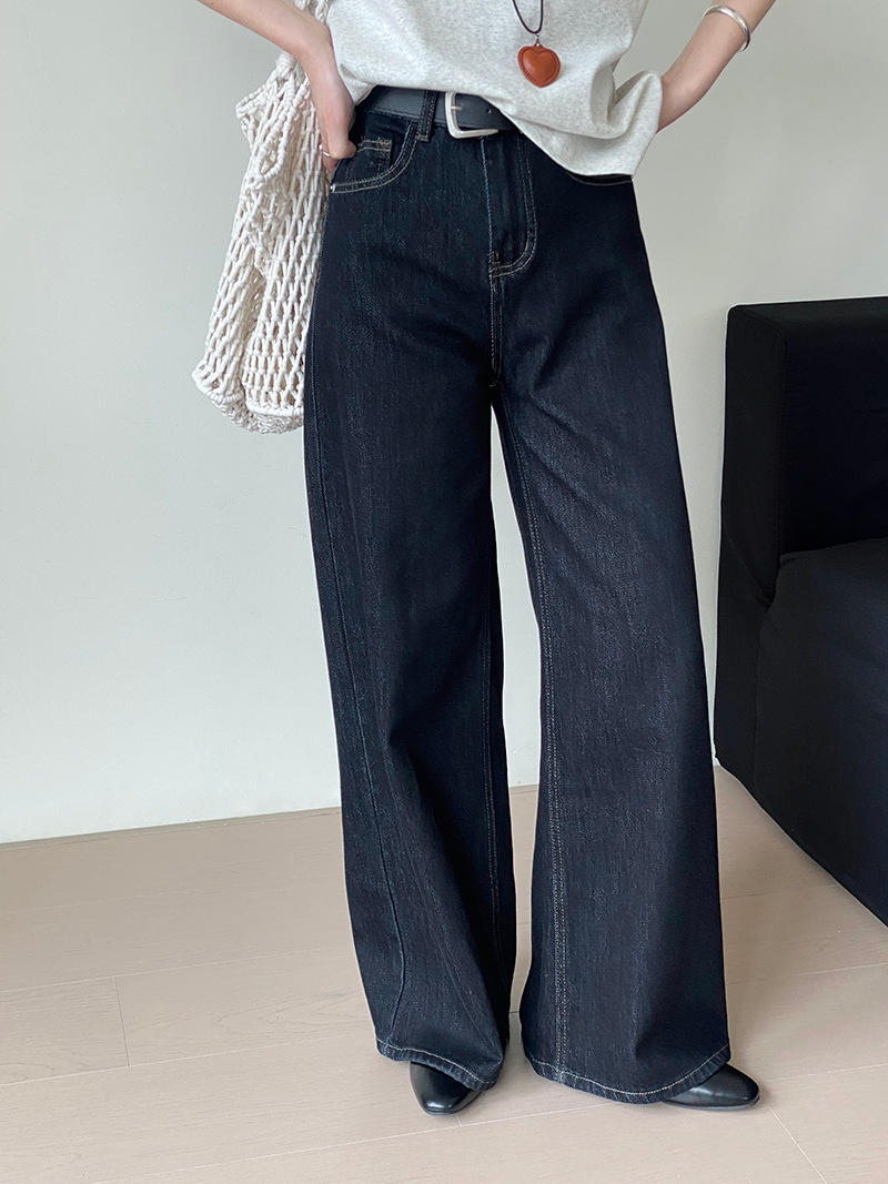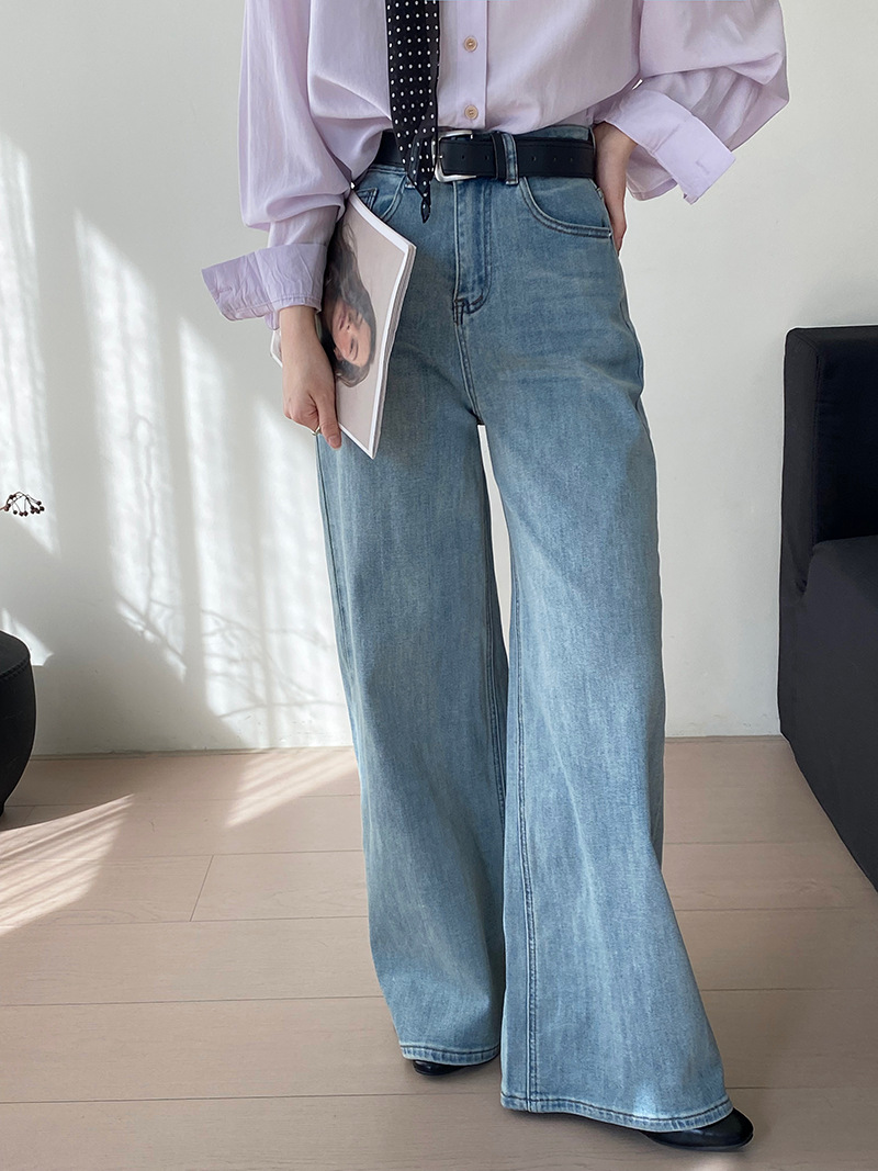 레트로 간단한 높은 허리 세척 청바지 여성용 하이 퀄리티 슬림 룩 올매치 느슨한 와이드 레그 바지 K6700