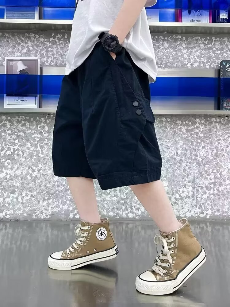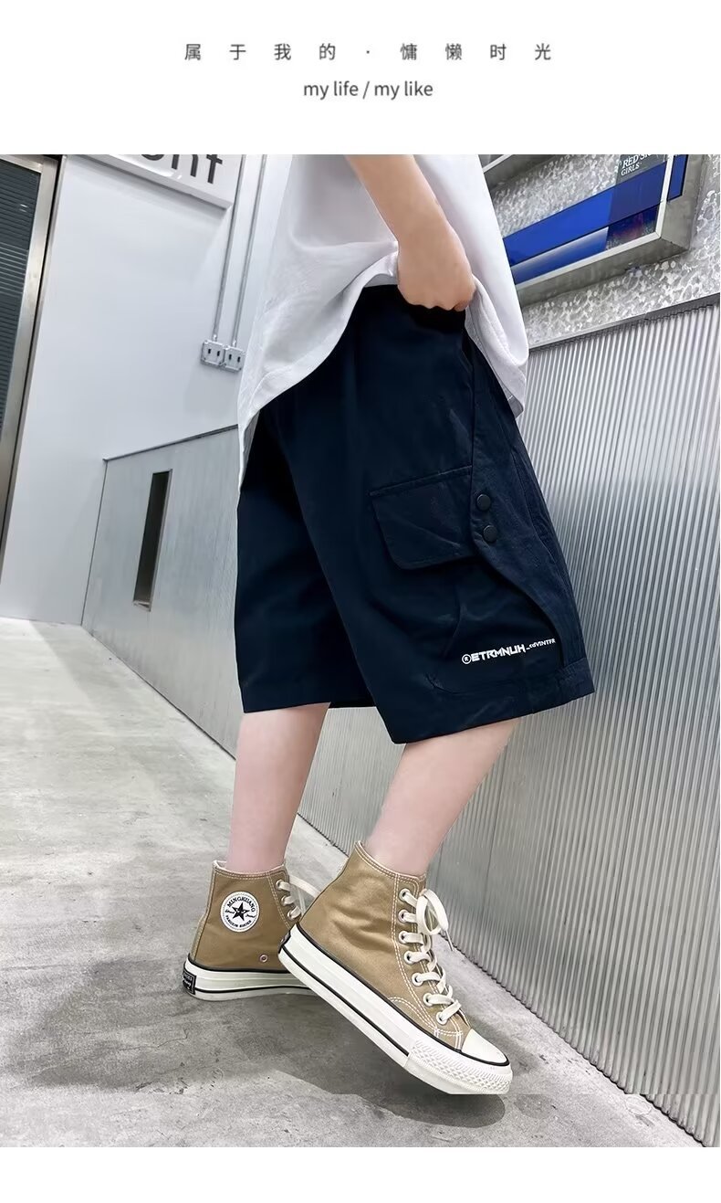 어린이 여름 소년의 빠른 건조 바지 2024 새로운 스타일 여름 소년 여름 얇은 작업 반바지스토어 가기
