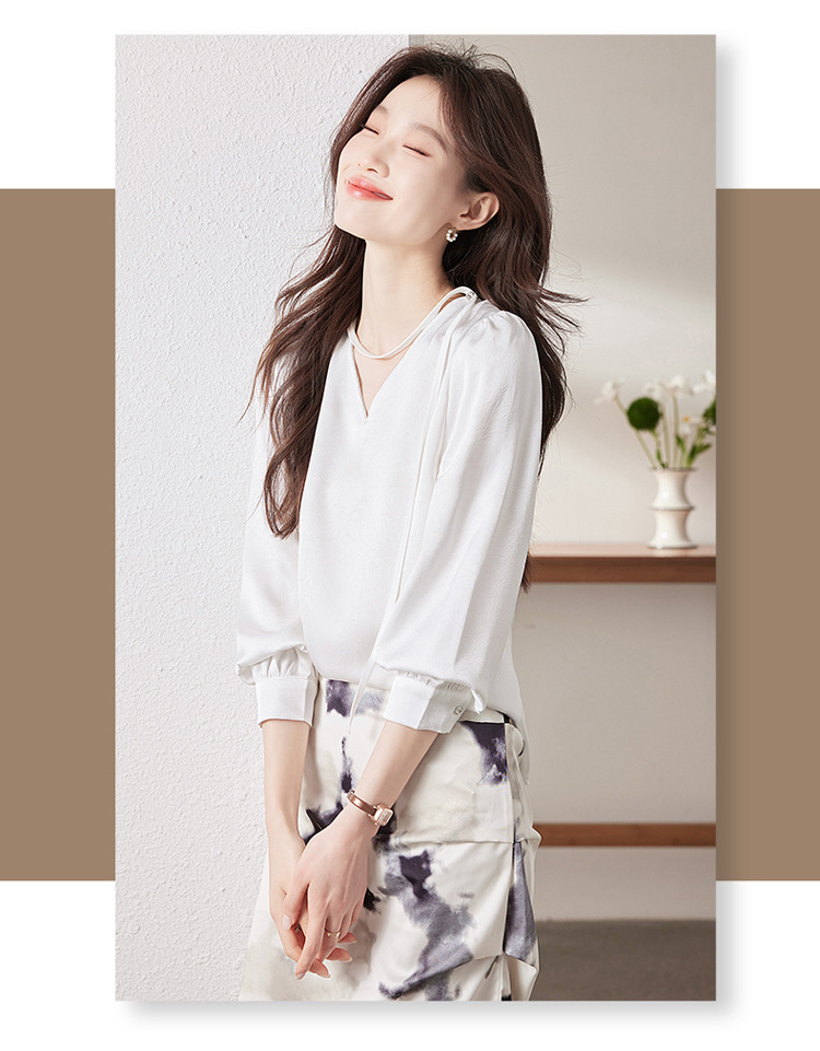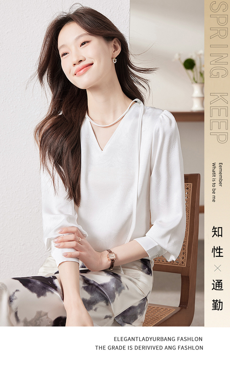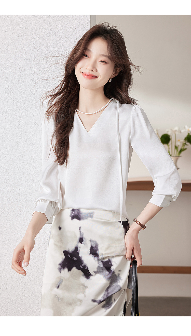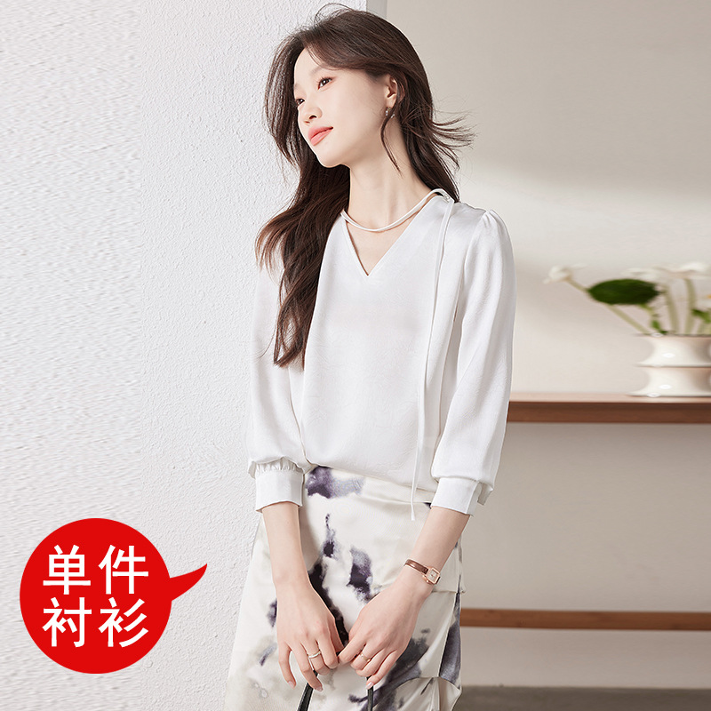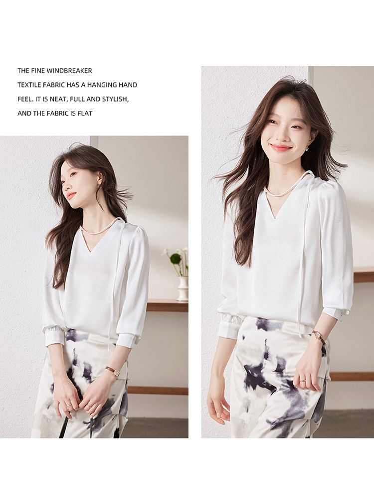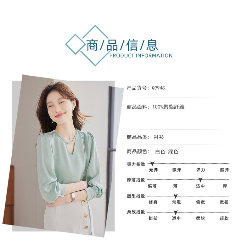 민트 그린 셔츠 여성 리본 탑 도매 봄과 여름 2025 새로운 패션 v-neck 여성용 긴 소매 쉬폰 셔츠스토어 가기