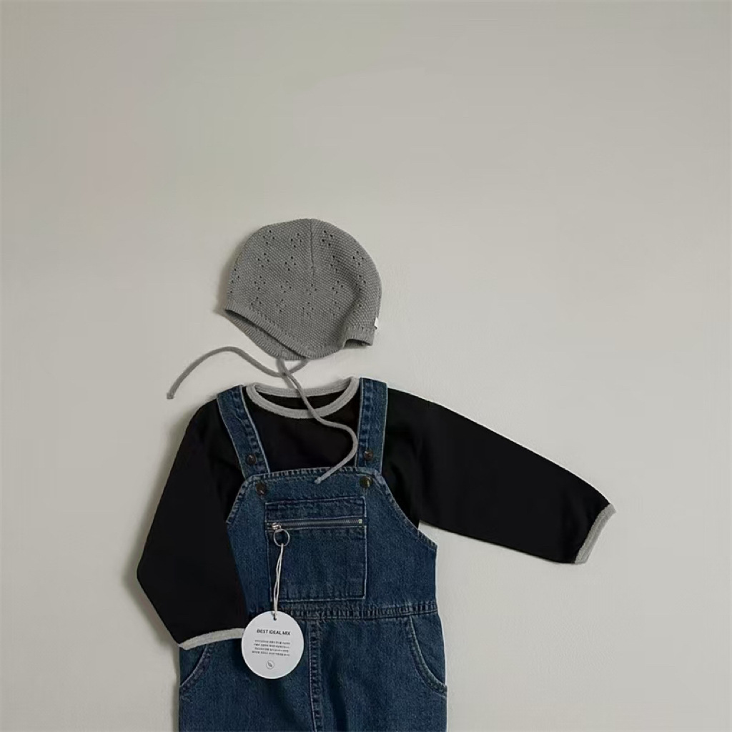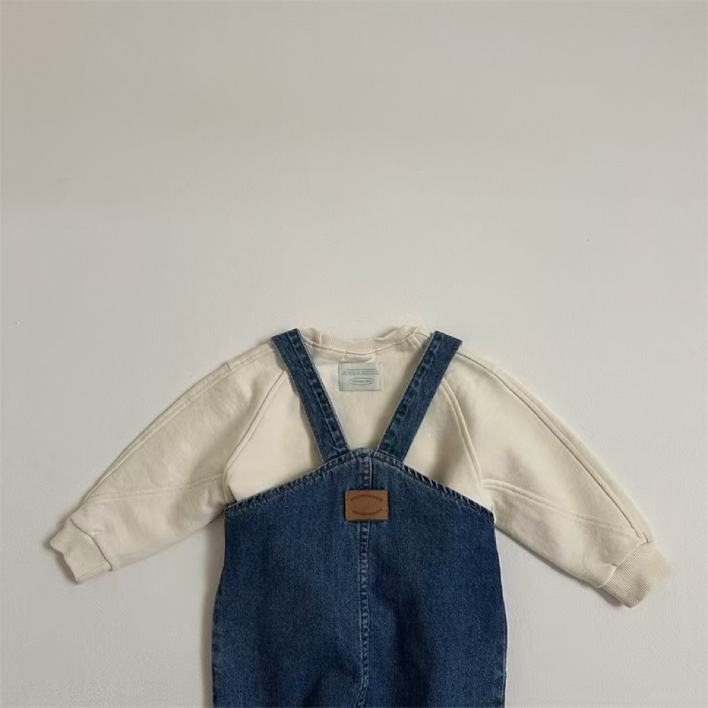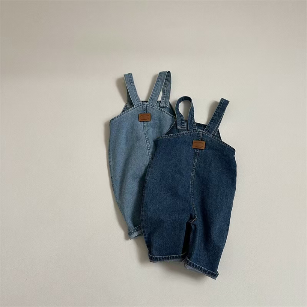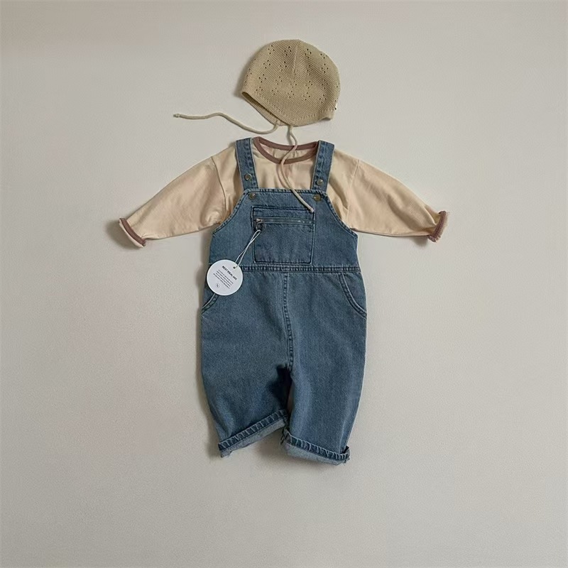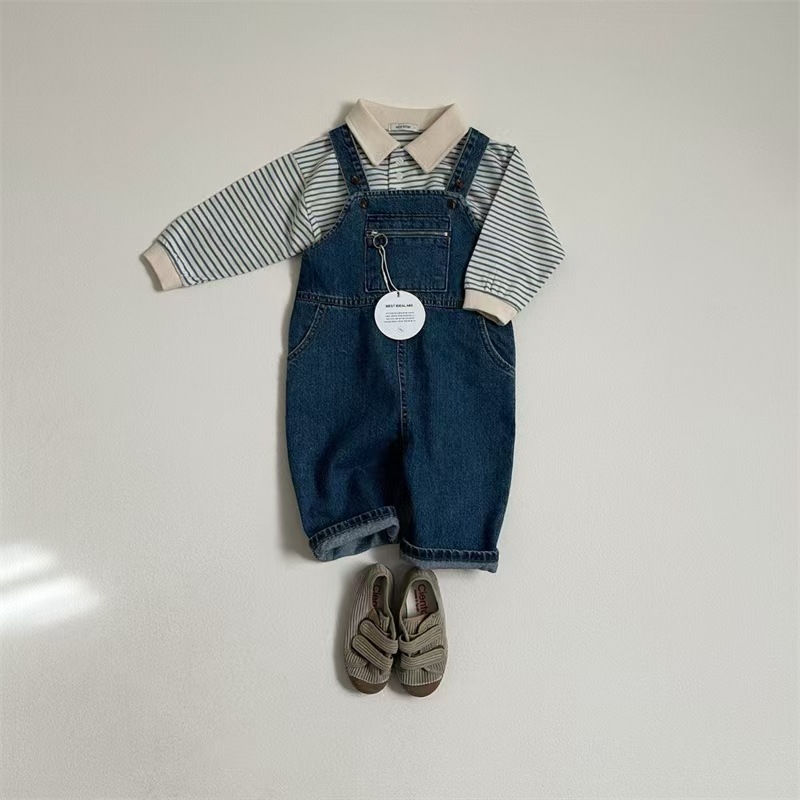 인스 한국 스타일 데님 멜빵 바지 가슴 지퍼 포켓 디자인 남녀 아기 의류 신상품 올 시즌용