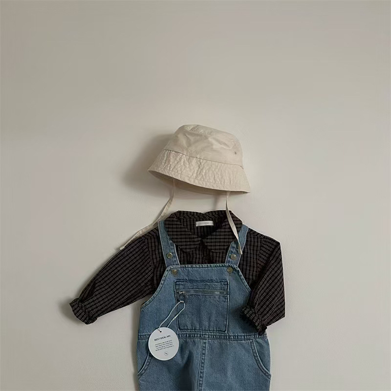 인스 한국 스타일 데님 멜빵 바지 가슴 지퍼 포켓 디자인 남녀 아기 의류 신상품 올 시즌용스토어 가기
