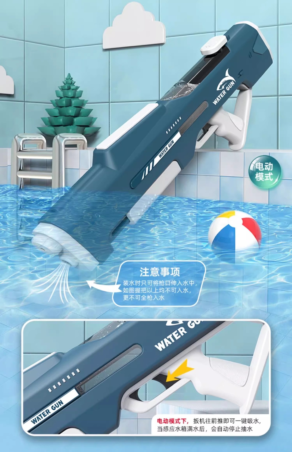 전동 물총 수동/자동 일체형 고압 강력 대용량 완전 자동 물놀이 어린이 장난감 물총 야외용