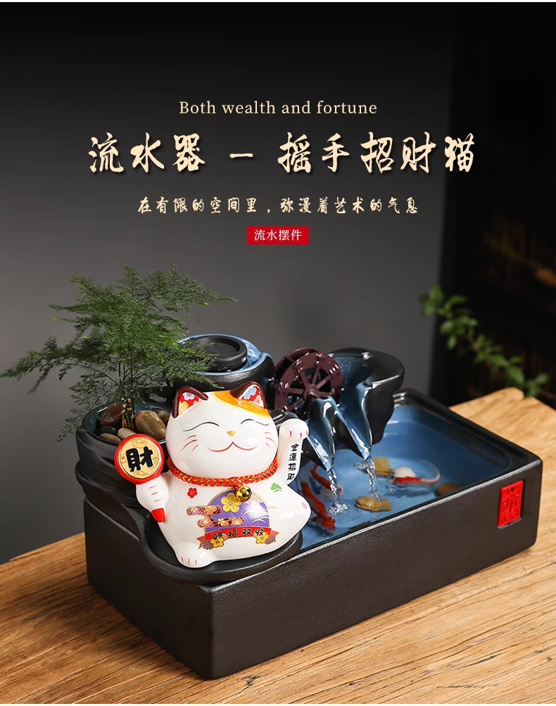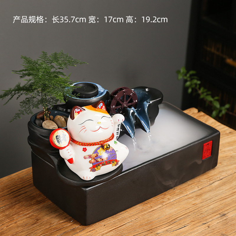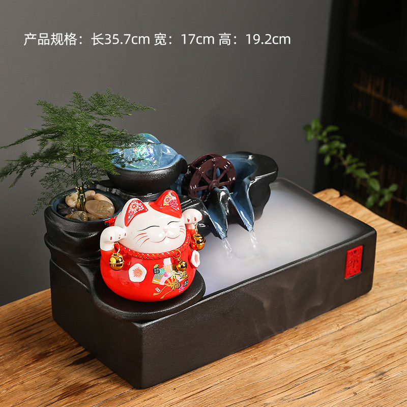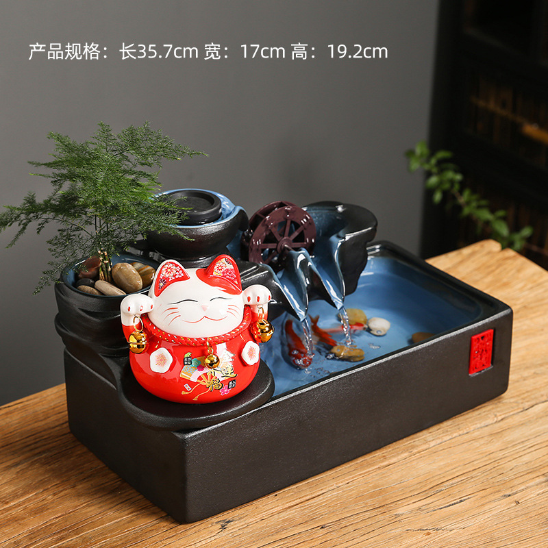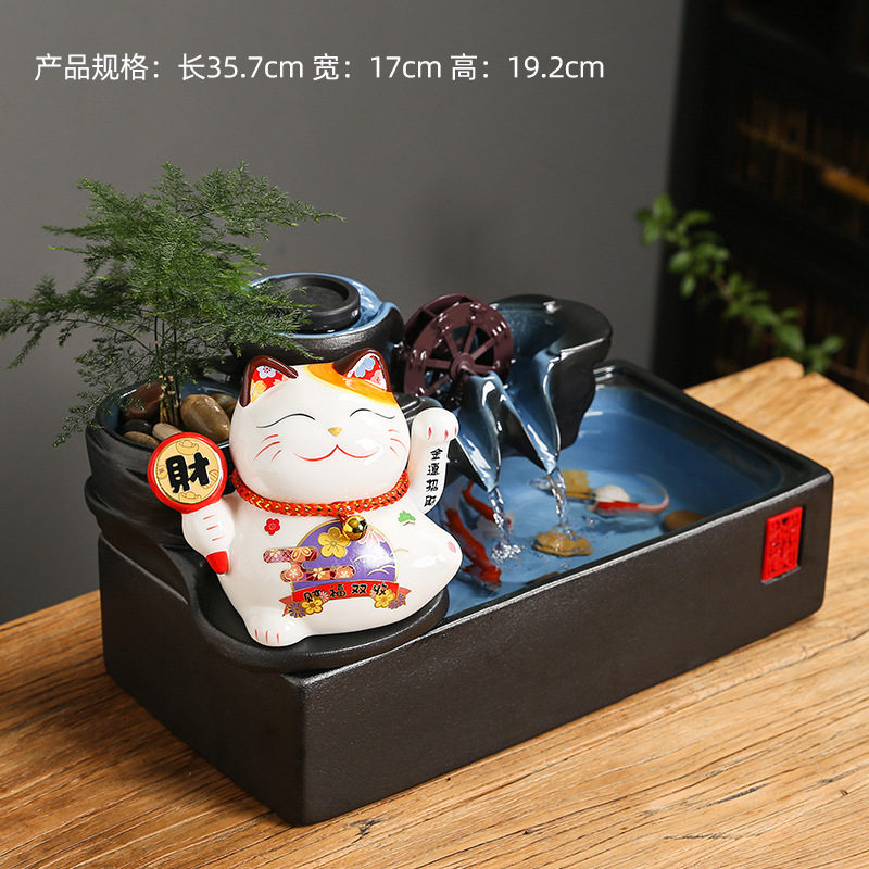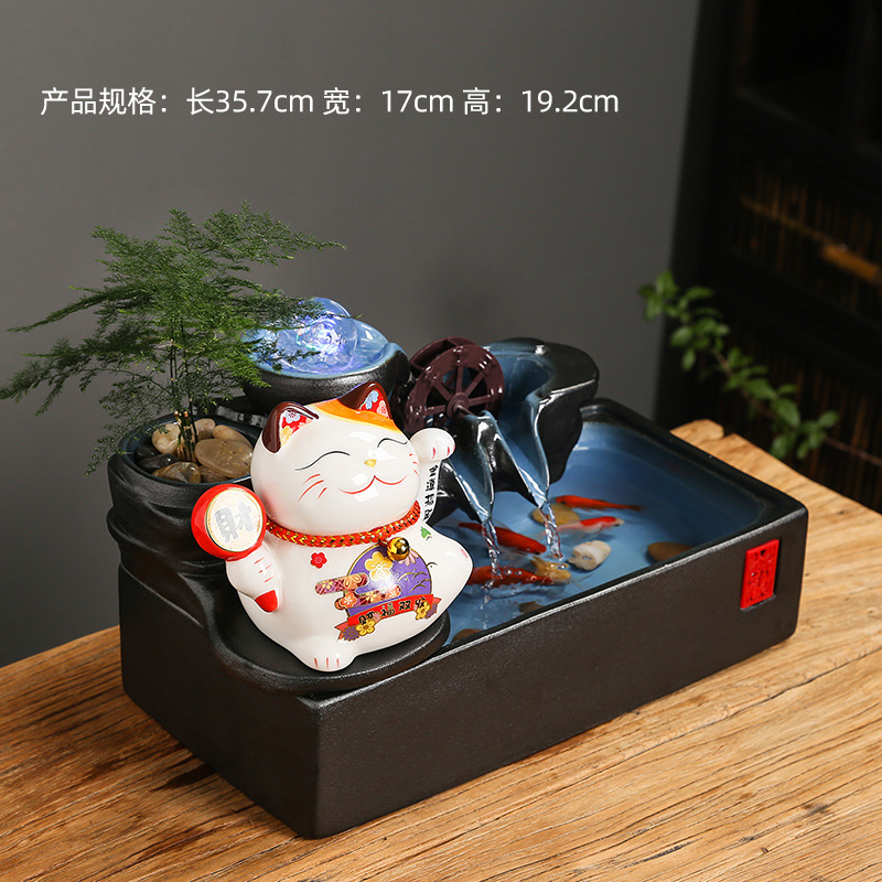 중국 행운의 고양이 흐르는 물 장식품 흐르는 흐르는 물 장식 돈을 버는 거실 사무실 데스크탑 장식 오프닝 선물스토어 가기