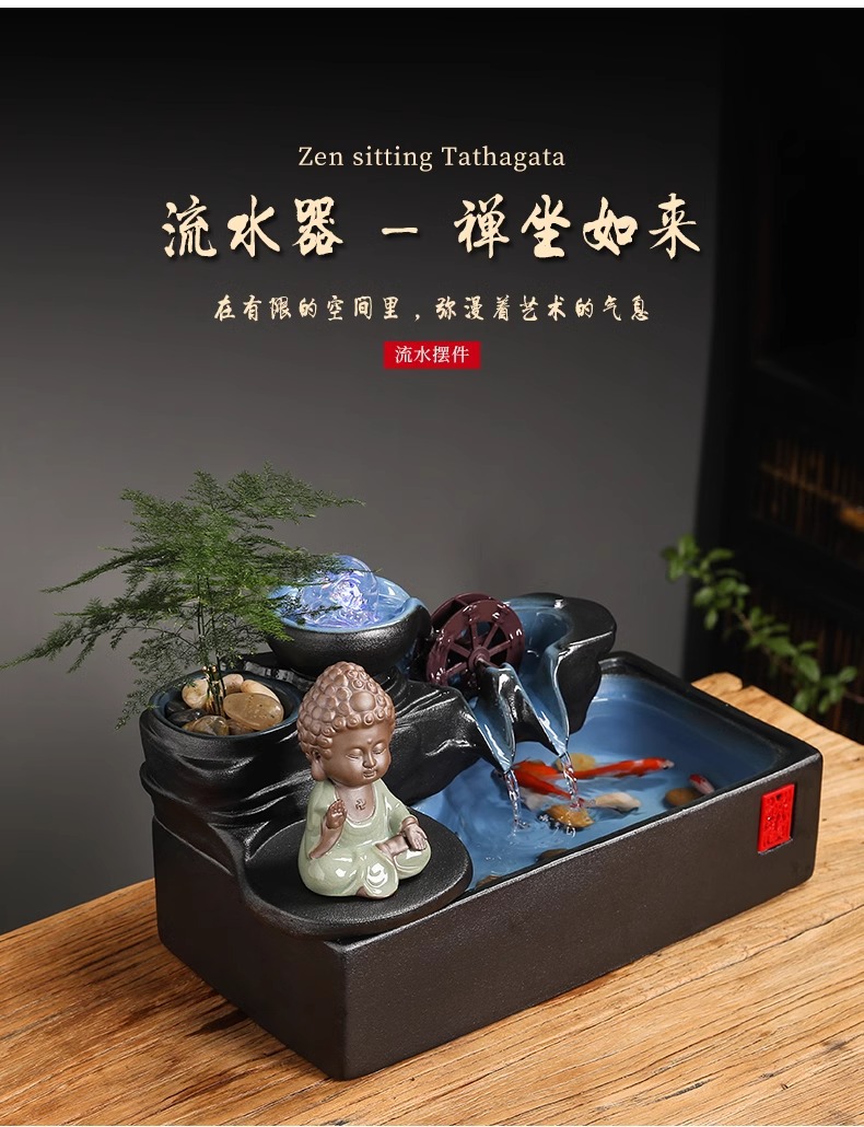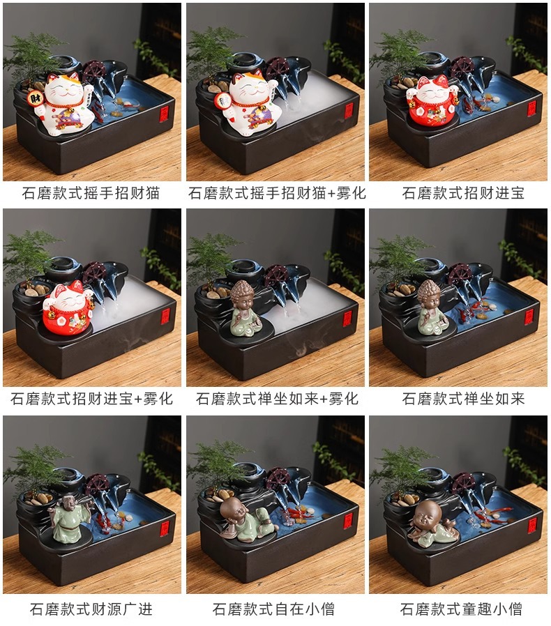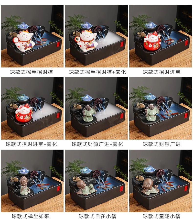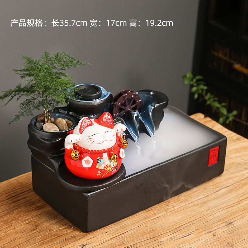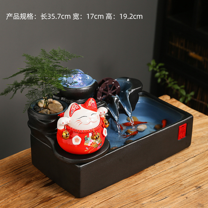 중국 행운의 고양이 흐르는 물 장식품 흐르는 흐르는 물 장식 돈을 버는 거실 사무실 데스크탑 장식 오프닝 선물스토어 가기