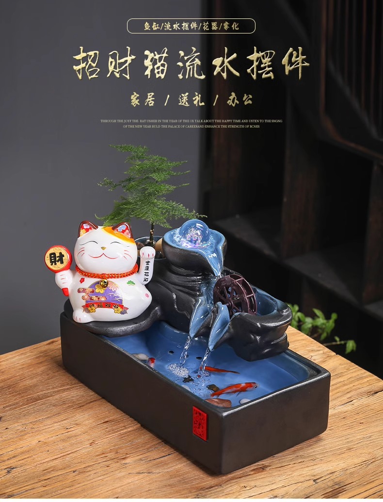 중국 행운의 고양이 흐르는 물 장식품 흐르는 흐르는 물 장식 돈을 버는 거실 사무실 데스크탑 장식 오프닝 선물