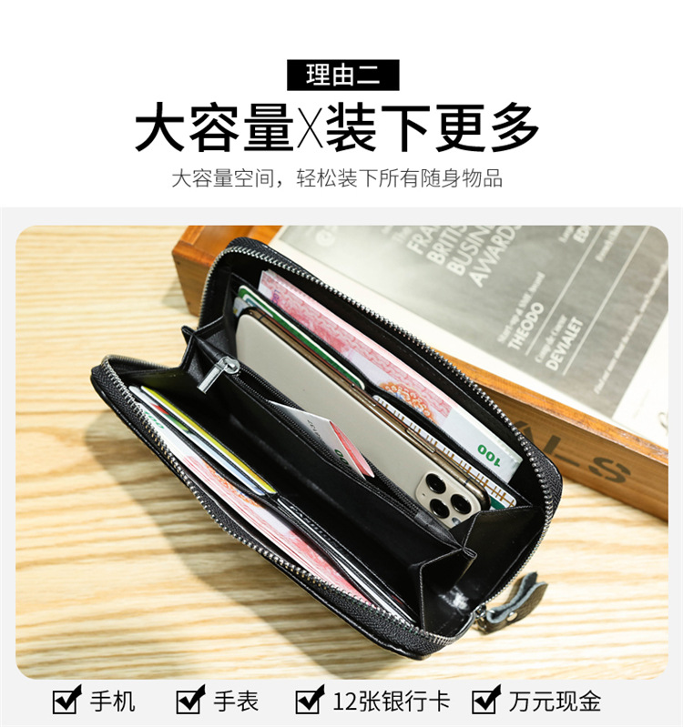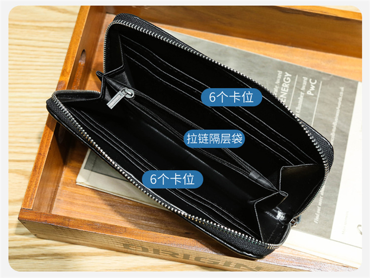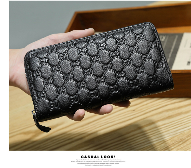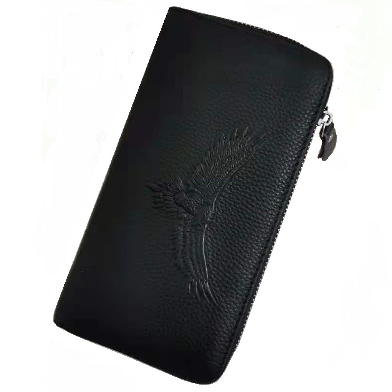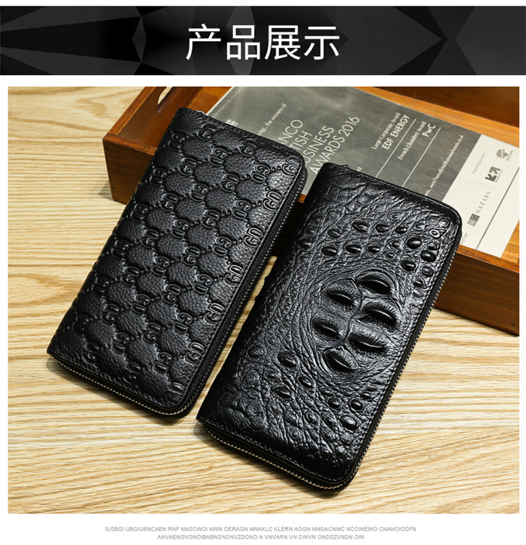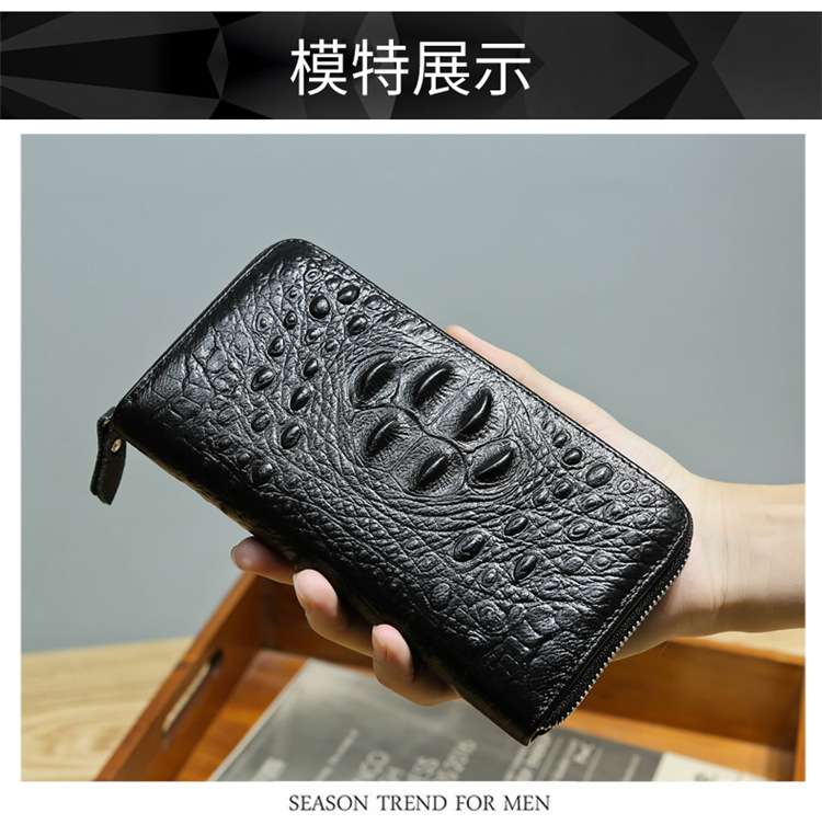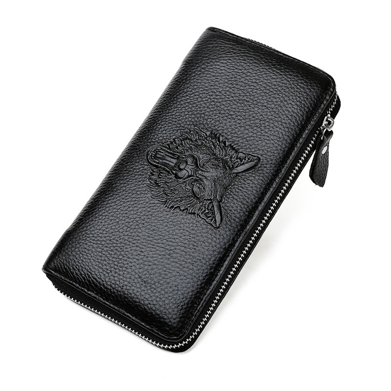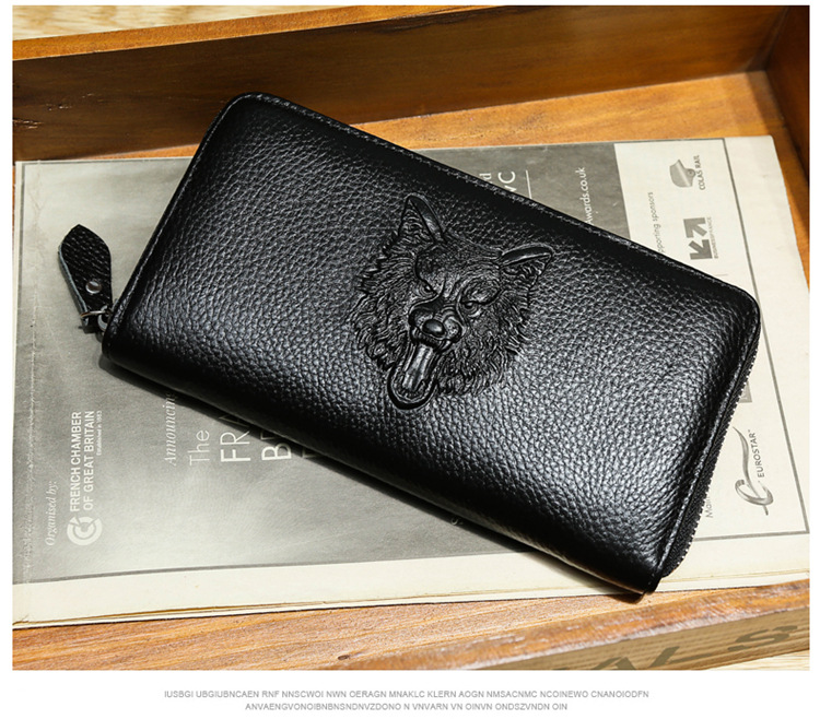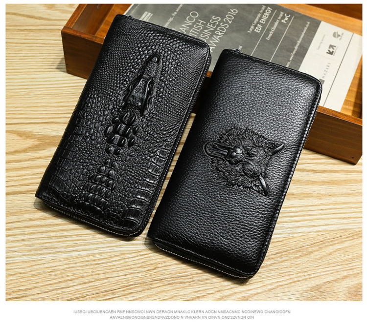 국경 정품 가죽 남성용 장 지갑 늑대 머리 부드러운 가죽 블랙 지갑 대형 지폐 동전 악어 백 남성용 클러치 백스토어 가기