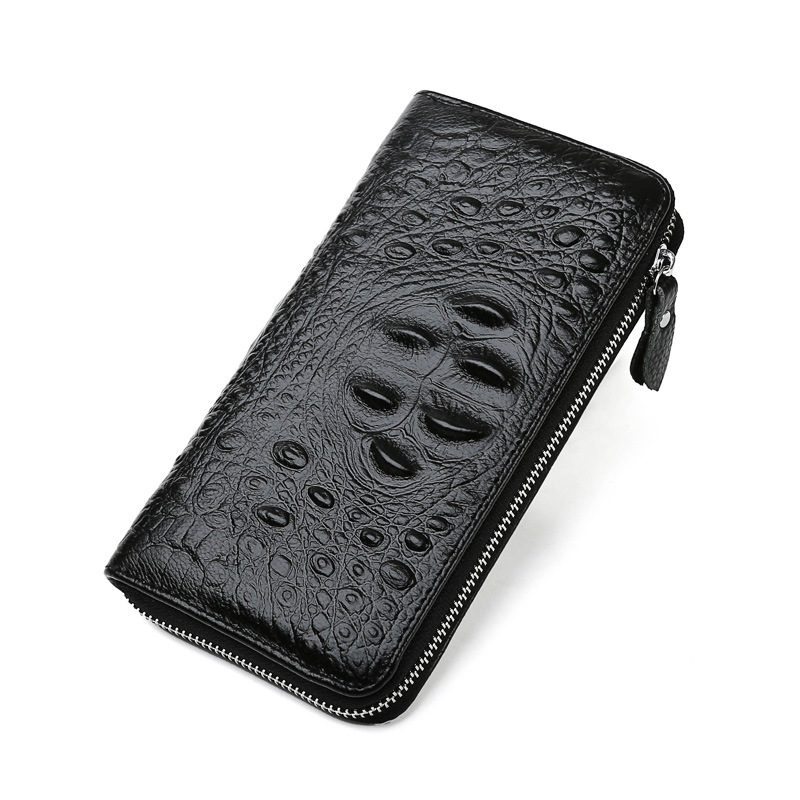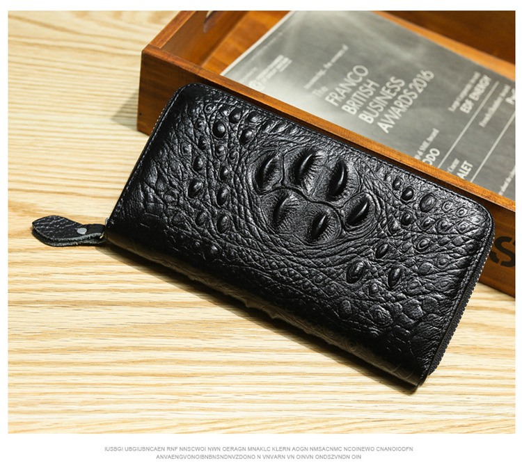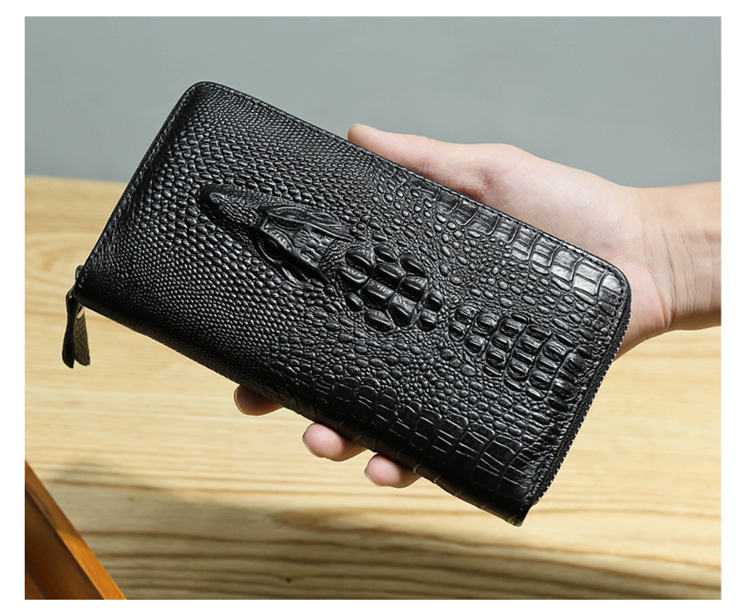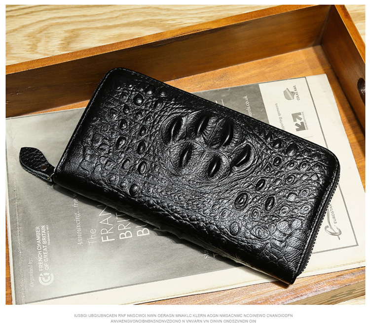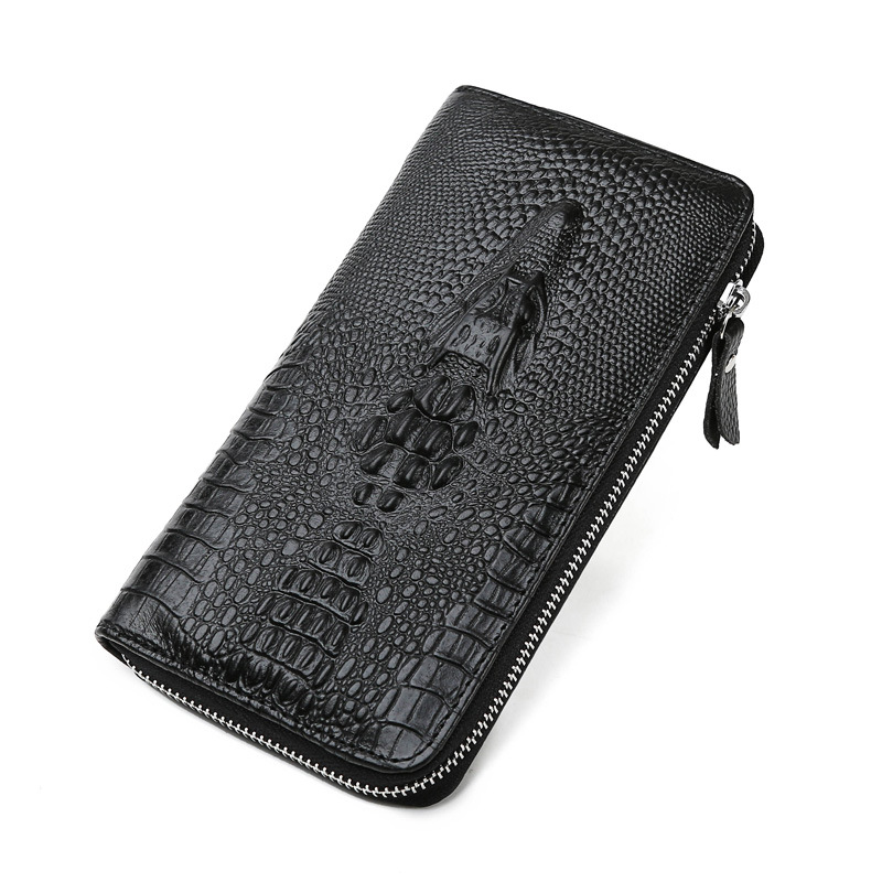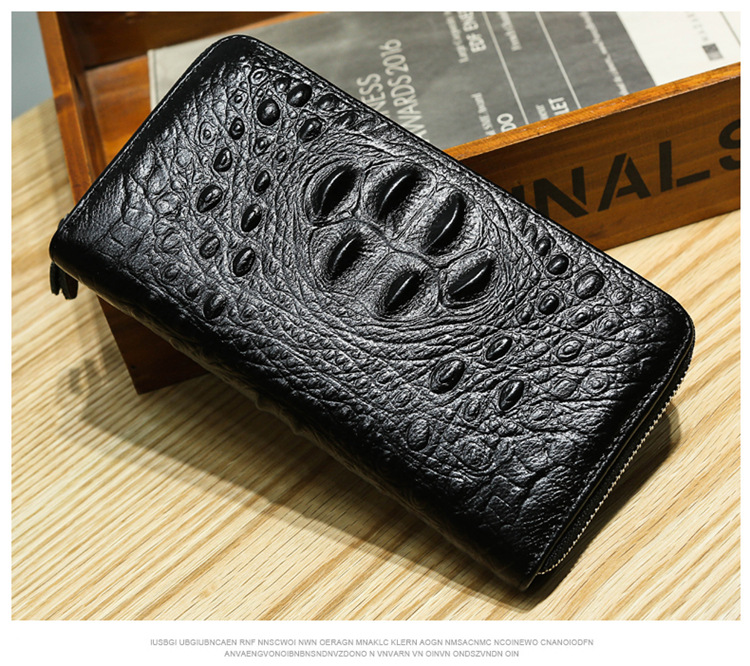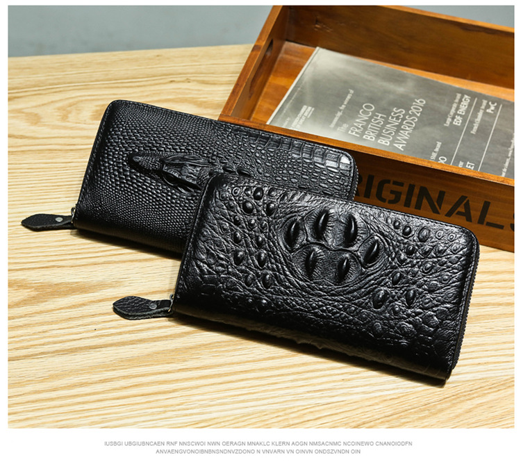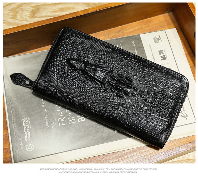 국경 정품 가죽 남성용 장 지갑 늑대 머리 부드러운 가죽 블랙 지갑 대형 지폐 동전 악어 백 남성용 클러치 백