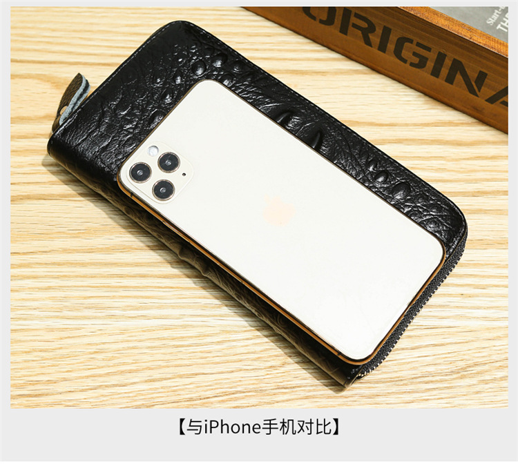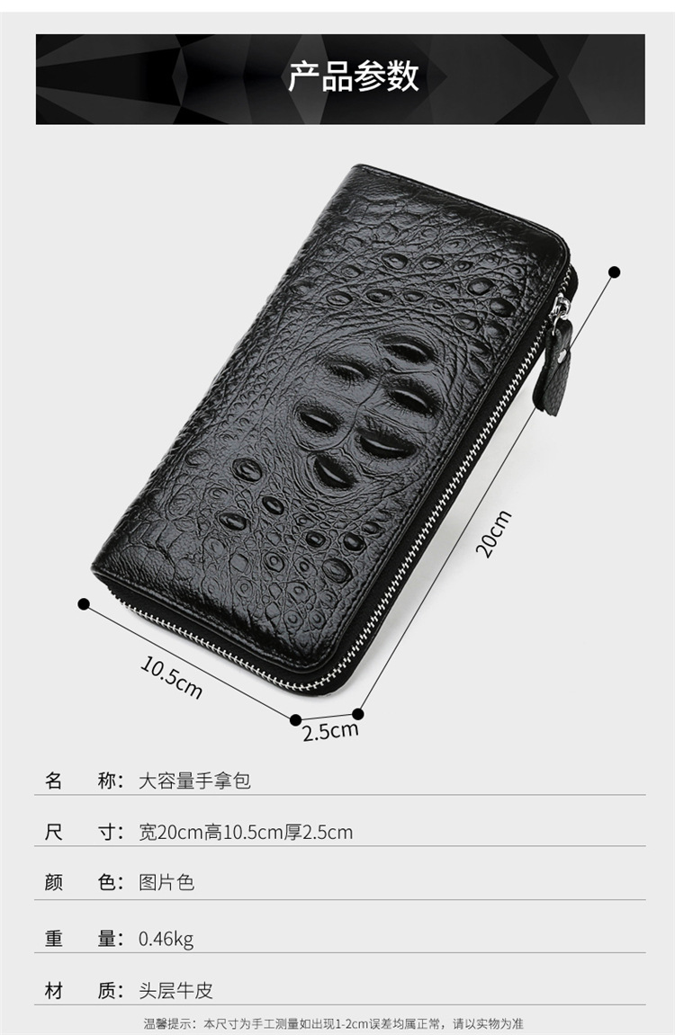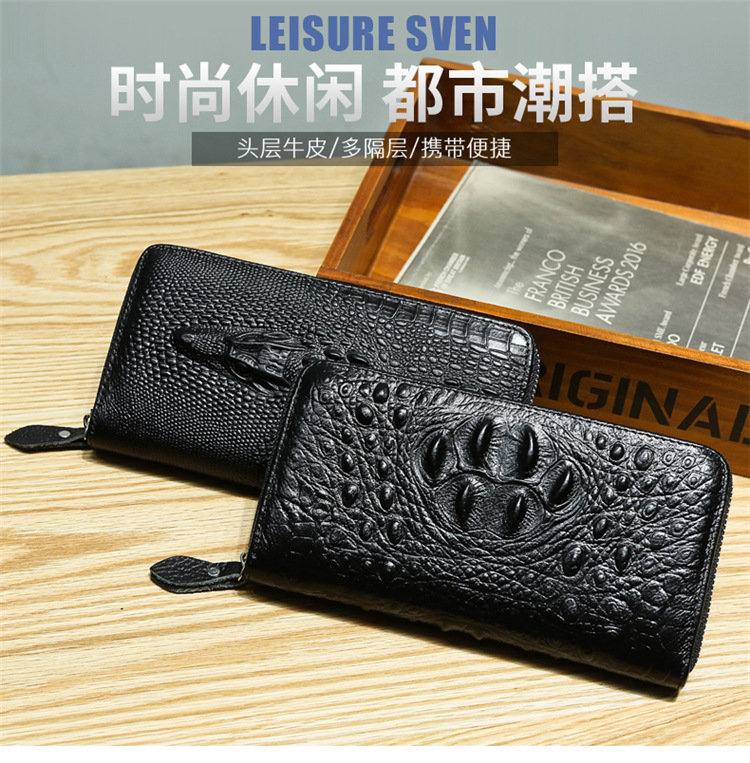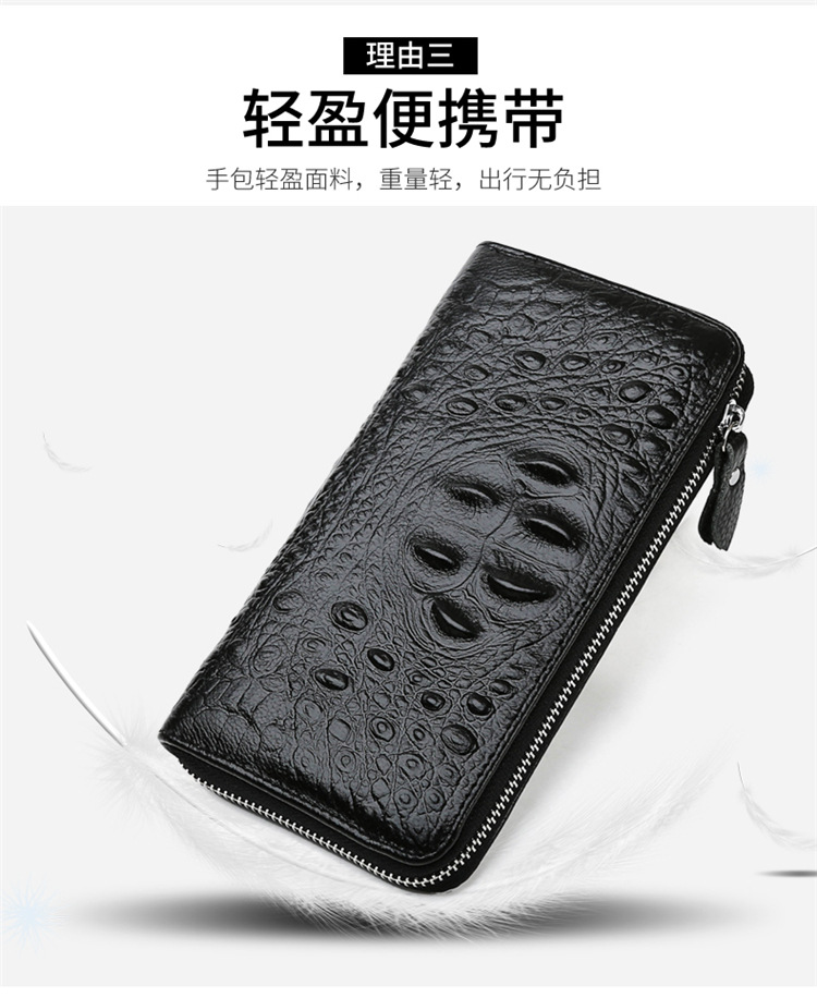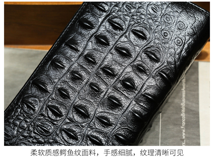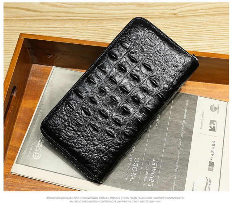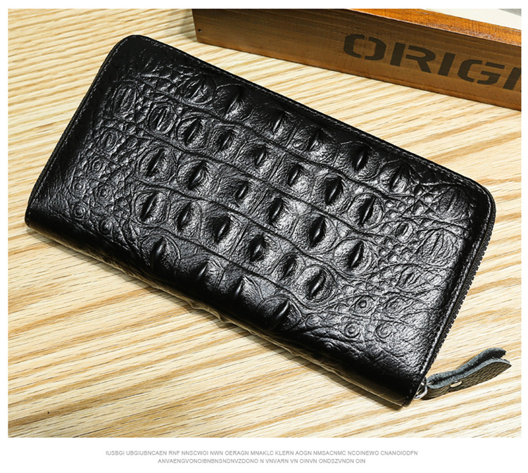 국경 정품 가죽 남성용 장 지갑 늑대 머리 부드러운 가죽 블랙 지갑 대형 지폐 동전 악어 백 남성용 클러치 백