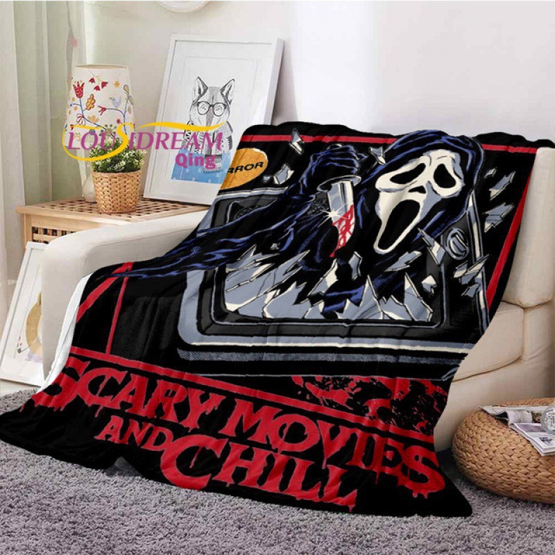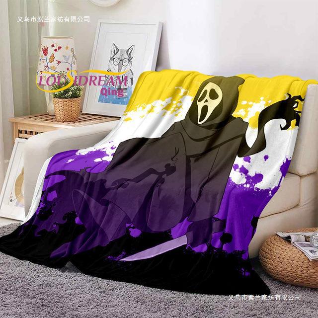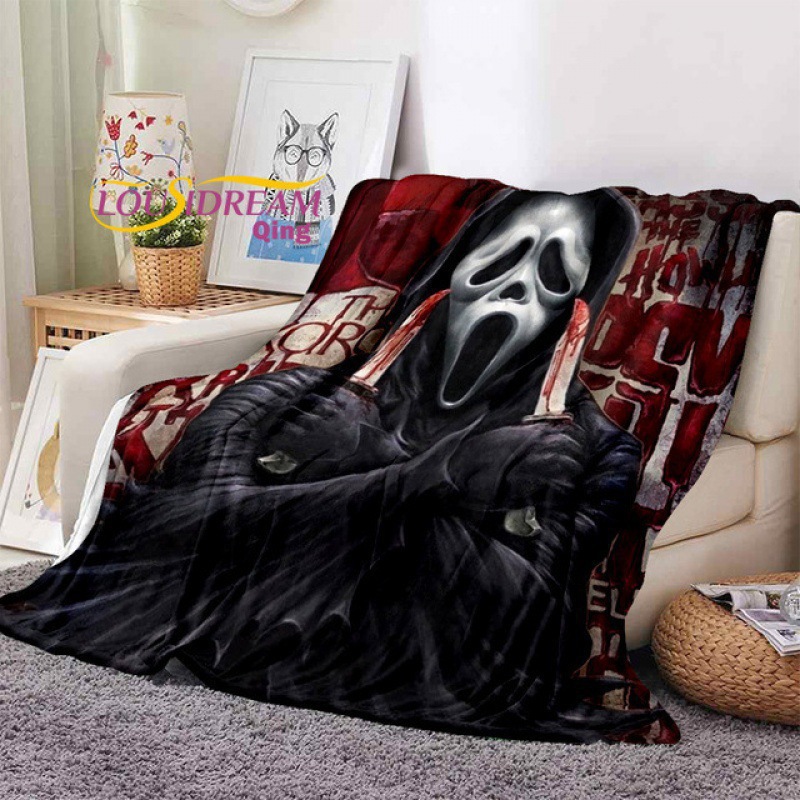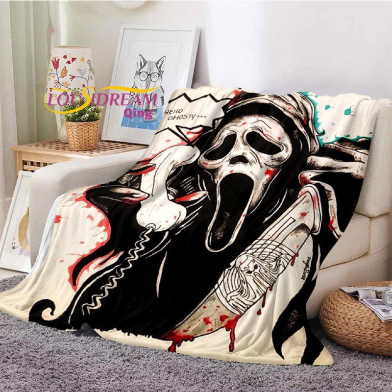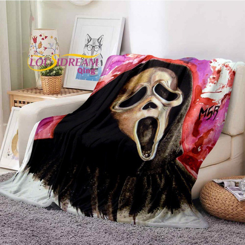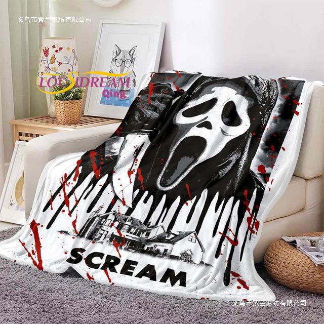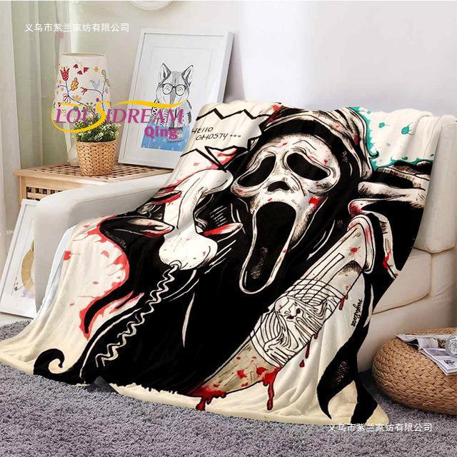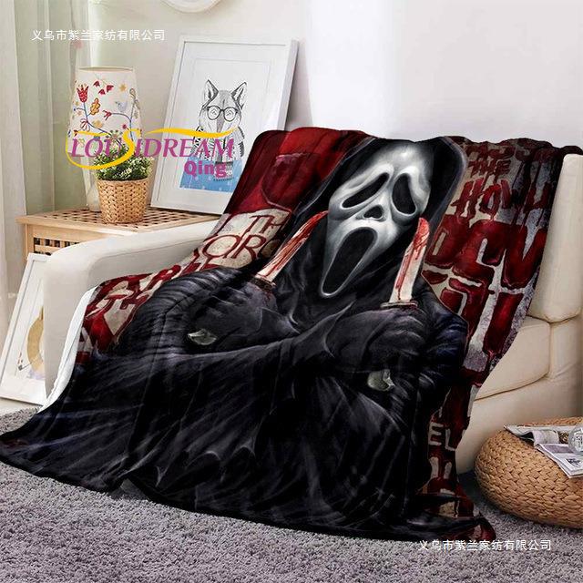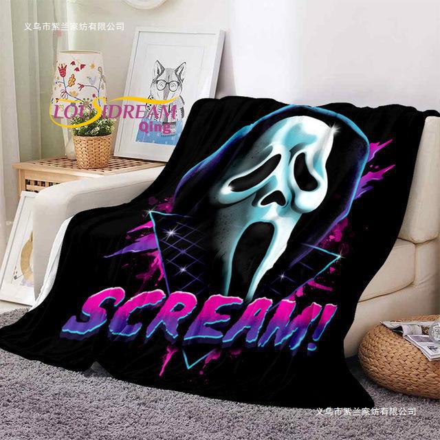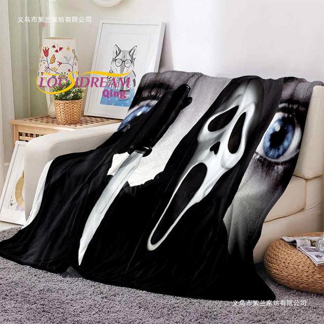 비명을 지르는 얼굴 공포 담요 귀여운 플란넬 담요 침구 부드러운 만화 게으른 담요
