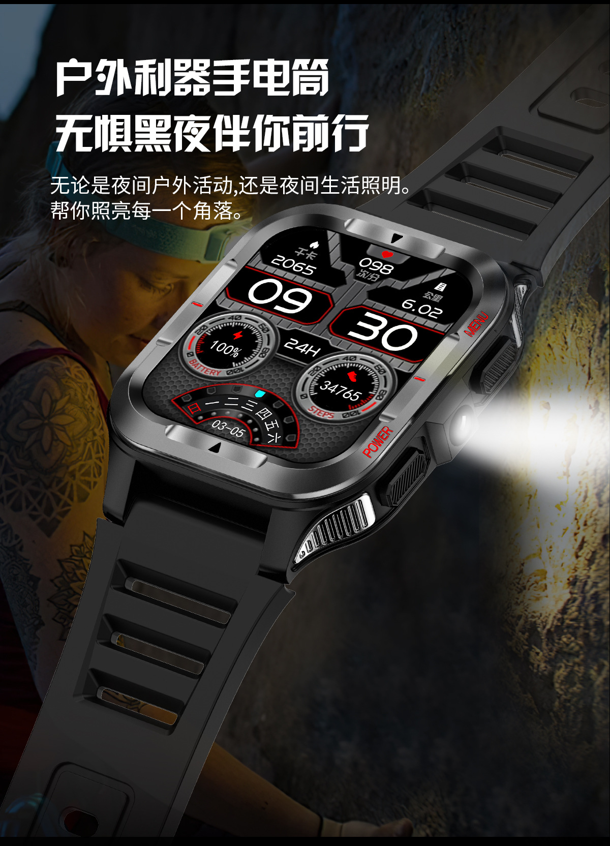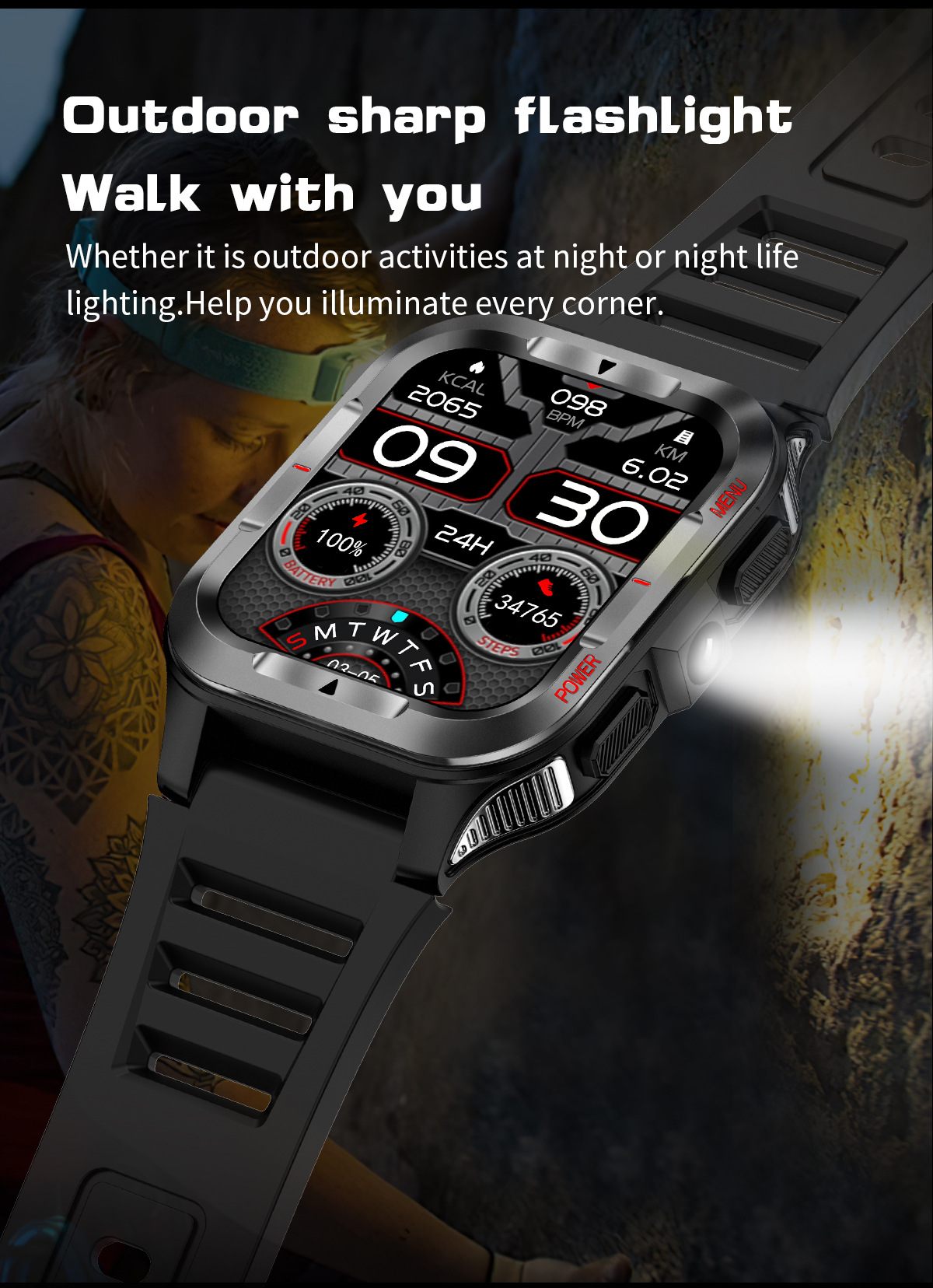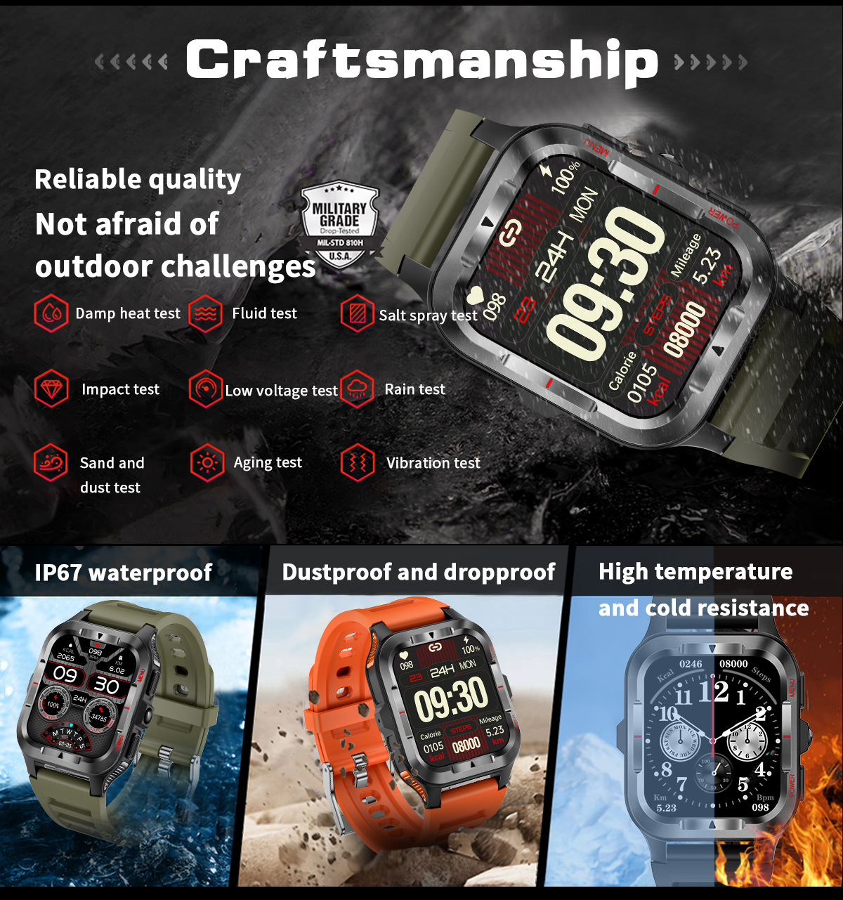 국경 간 새로운 G27 스마트 시계 블루투스 통화 심박수 혈압 모니터링 LED 조명 야외 3 개 방지 스포츠 시계