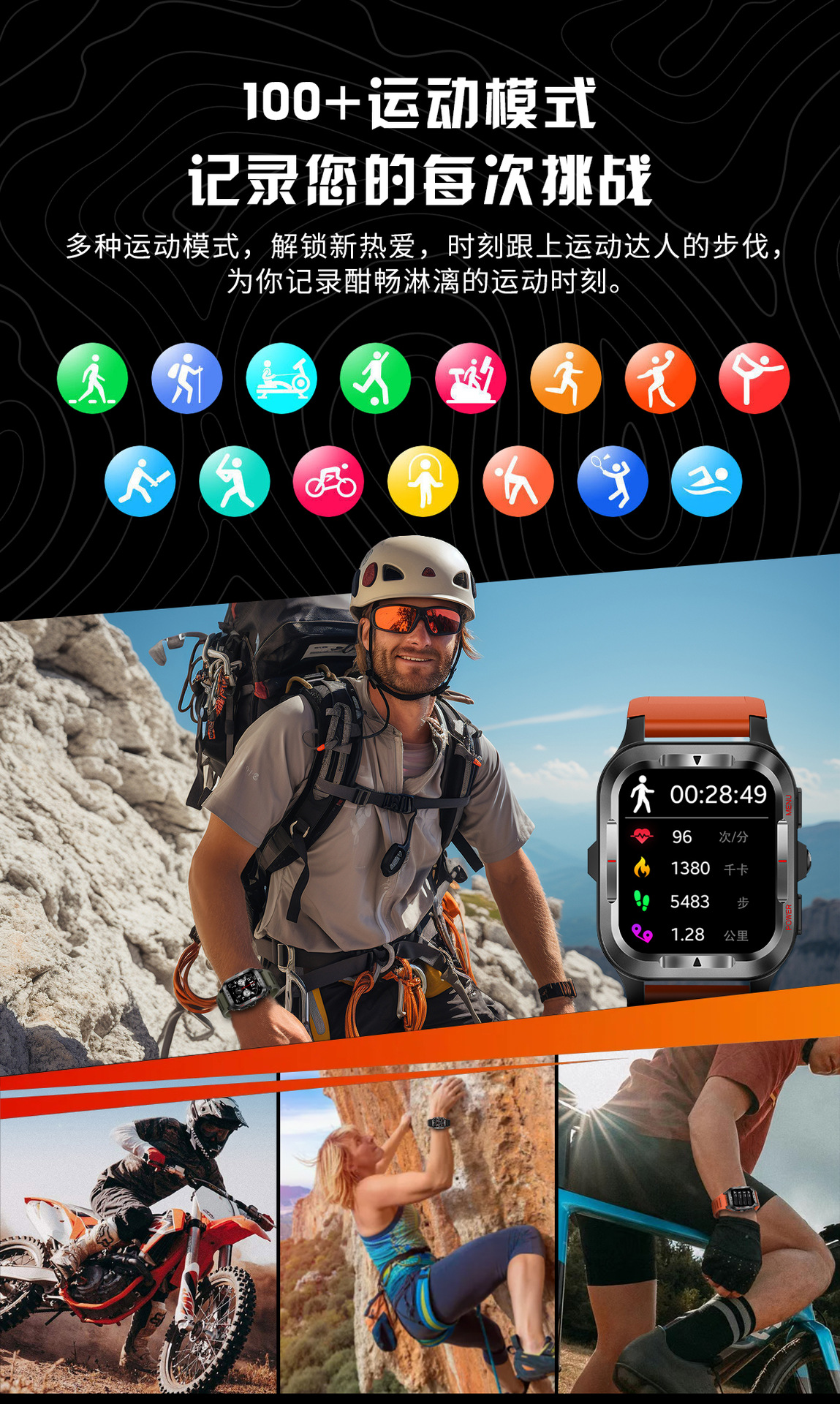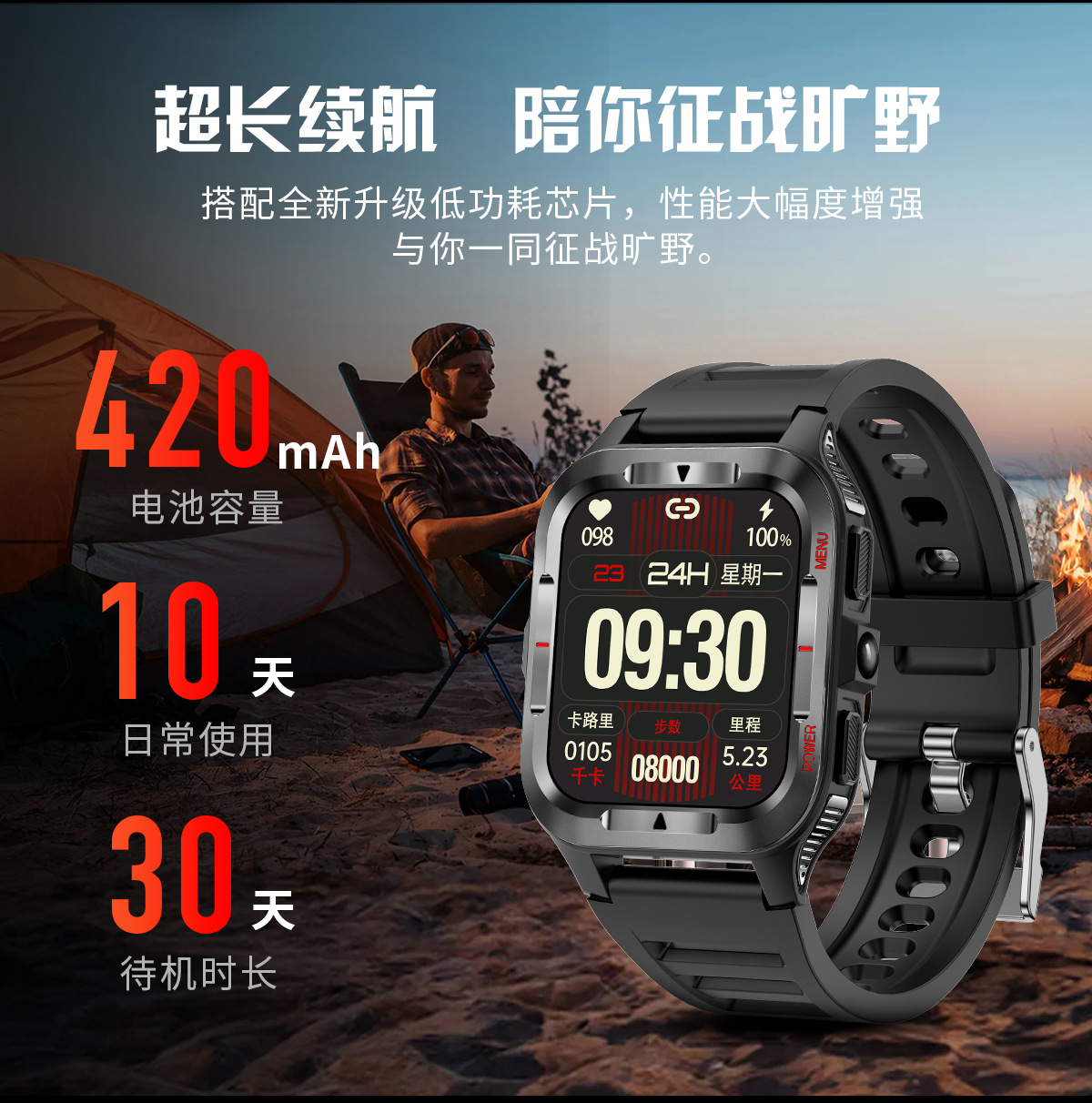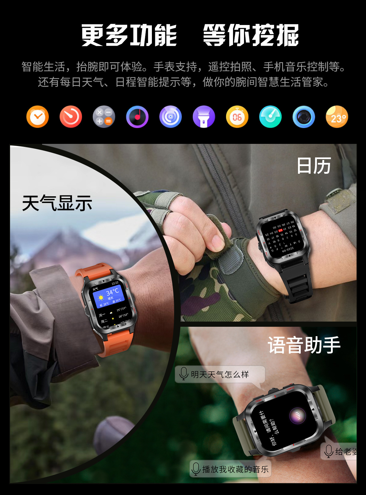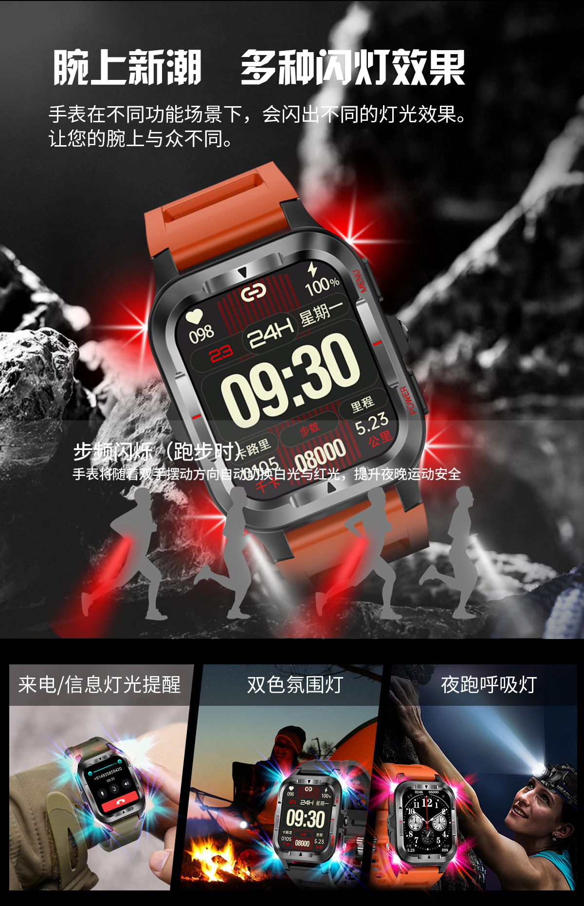 국경 간 새로운 G27 스마트 시계 블루투스 통화 심박수 혈압 모니터링 LED 조명 야외 3 개 방지 스포츠 시계