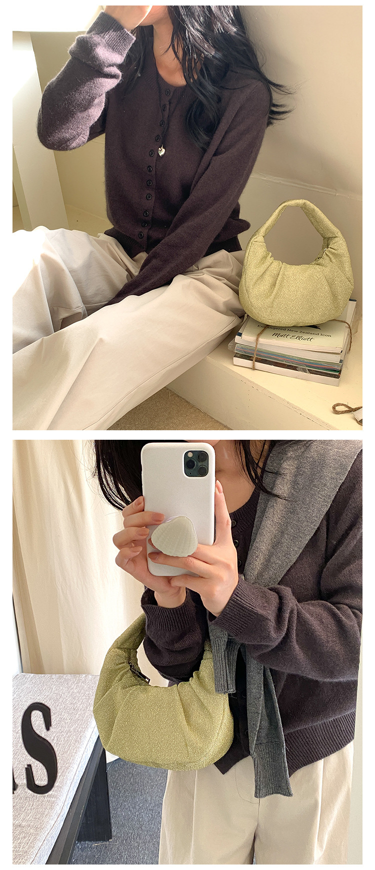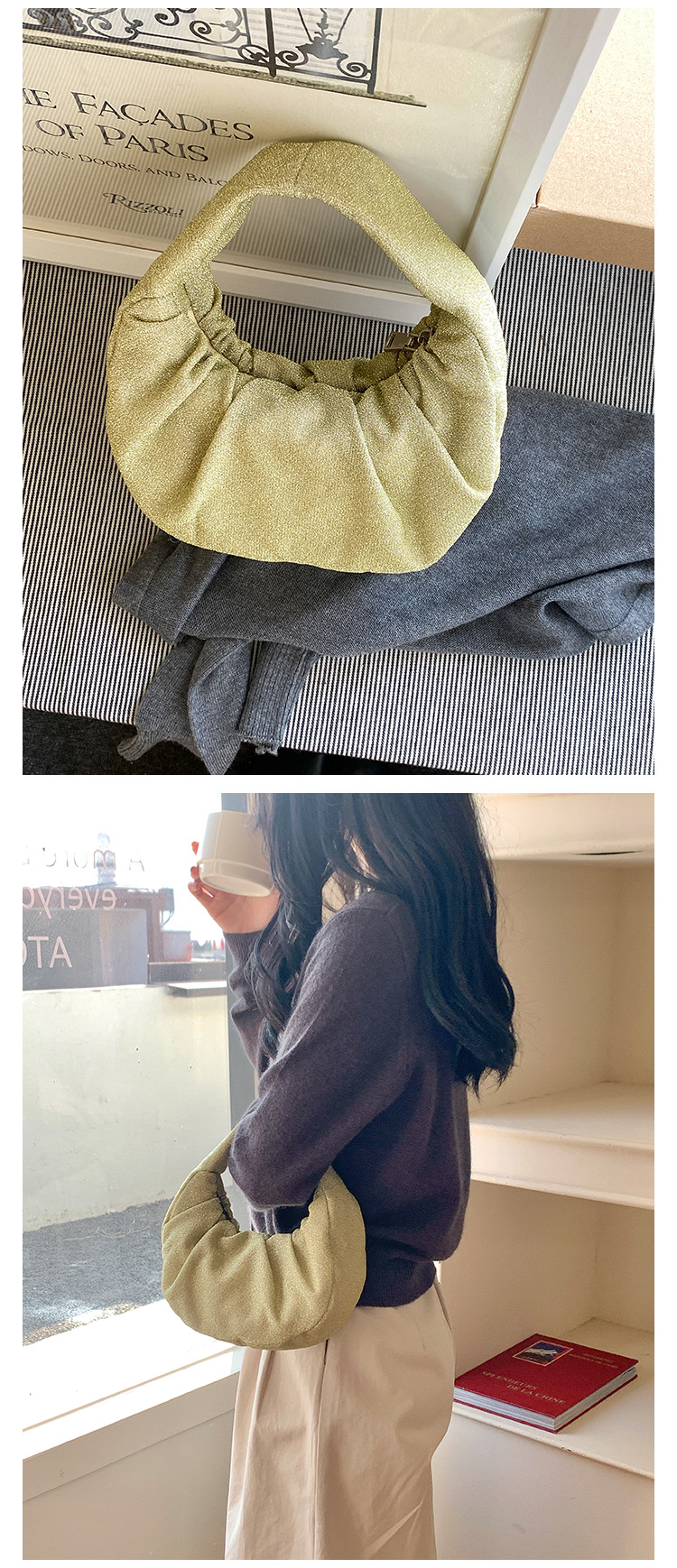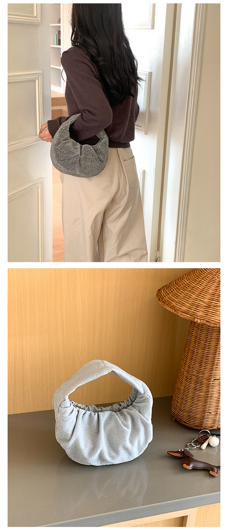 한국판 신달 가방 주름 2025 새로운 핸드 헬드 천 가방 국경 틈새 하이 엔드 기질 디자인 핸드백스토어 가기