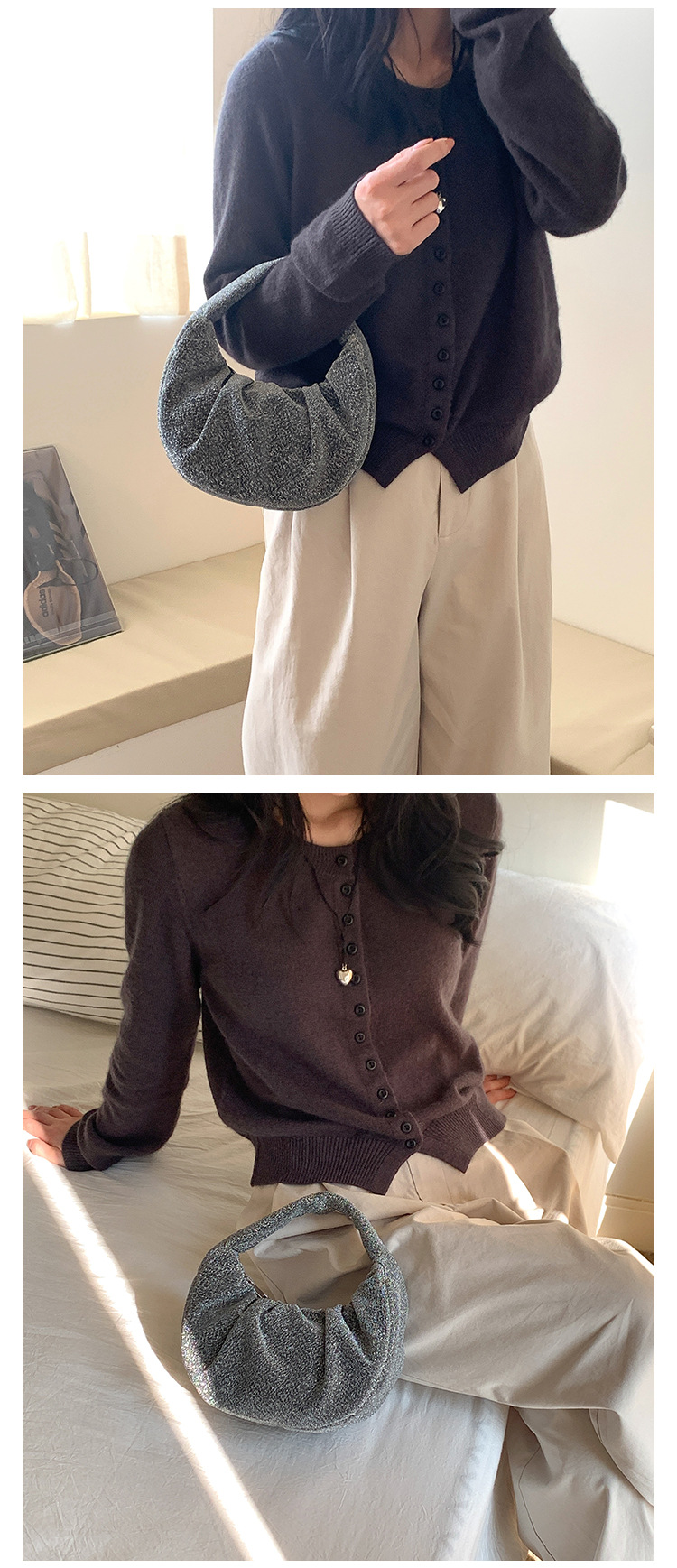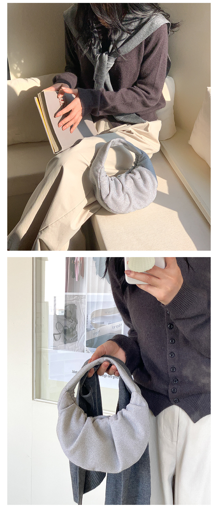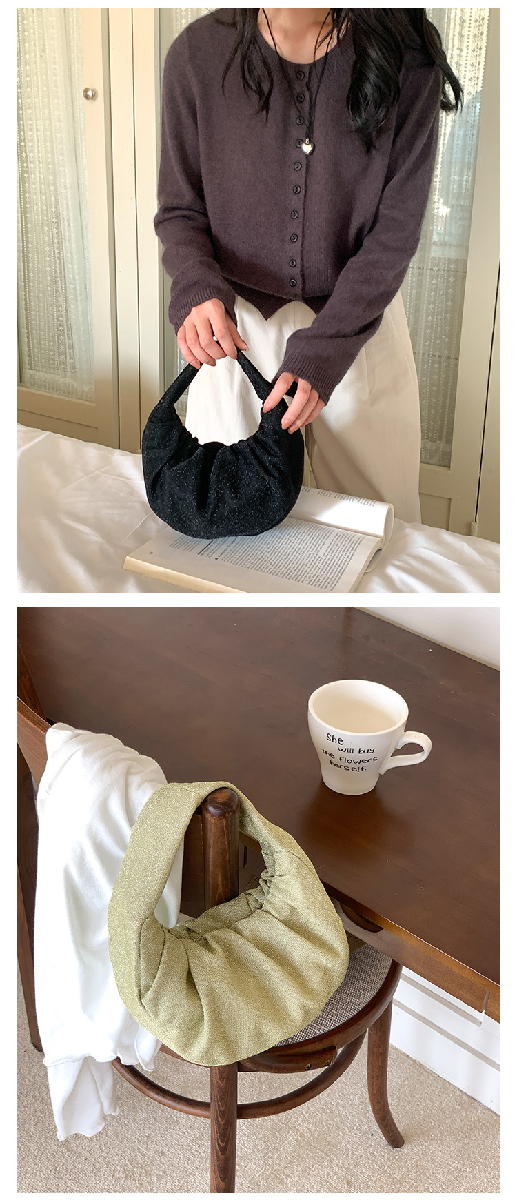 한국판 신달 가방 주름 2025 새로운 핸드 헬드 천 가방 국경 틈새 하이 엔드 기질 디자인 핸드백스토어 가기