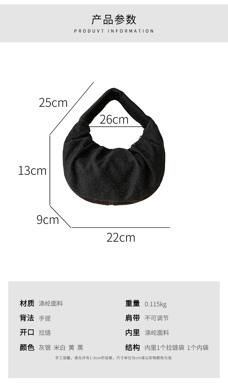 한국판 신달 가방 주름 2025 새로운 핸드 헬드 천 가방 국경 틈새 하이 엔드 기질 디자인 핸드백