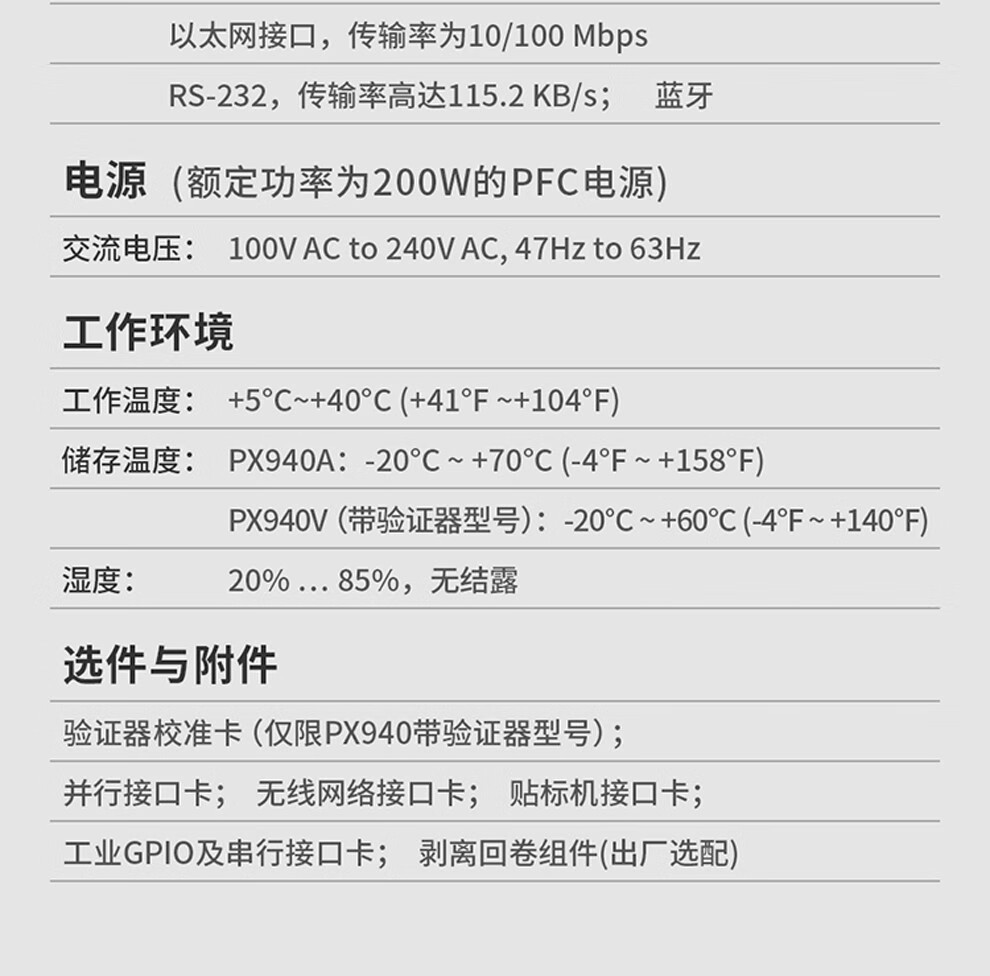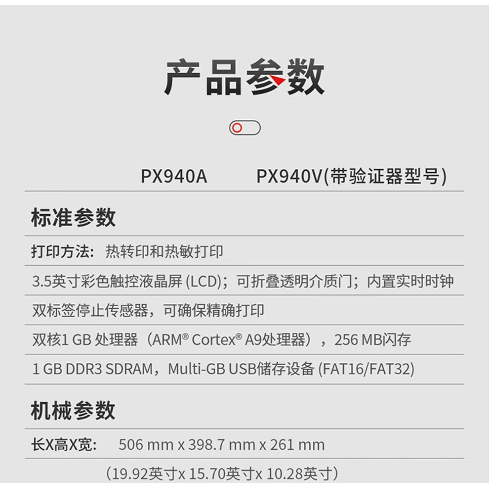 • PX940V-203dpi (자동으로 바코드 확인 가능)