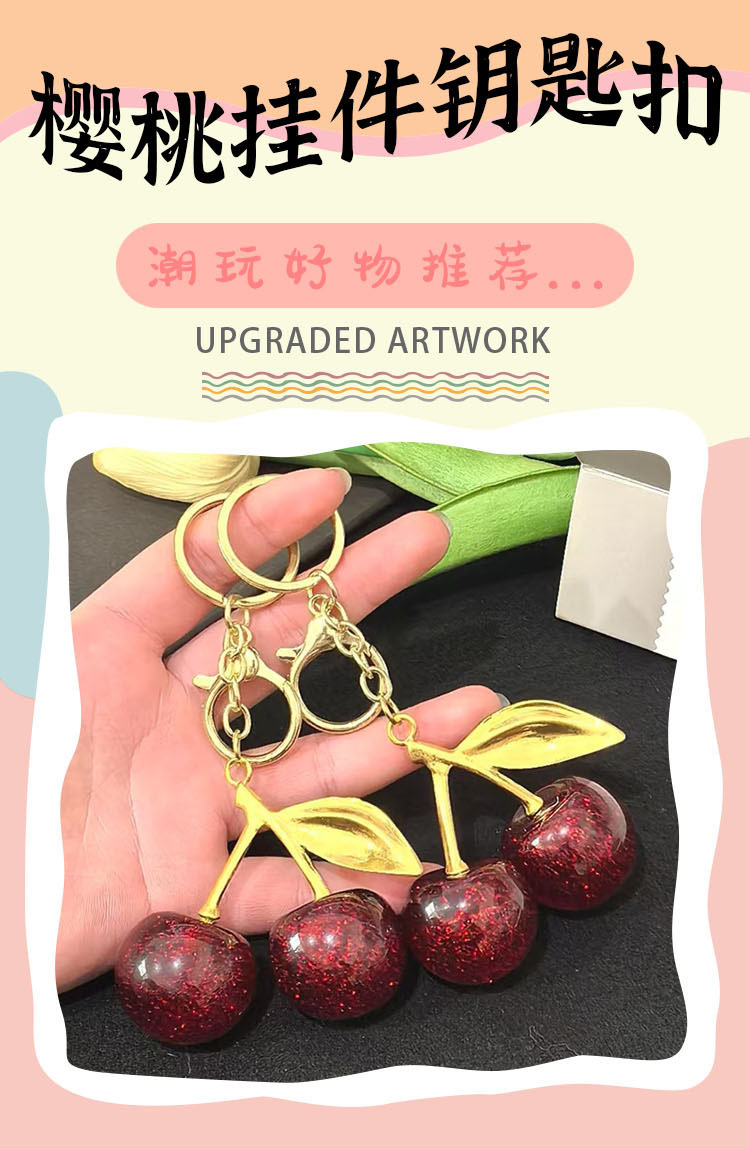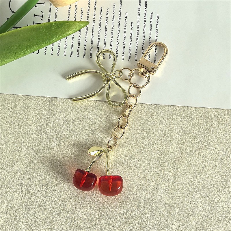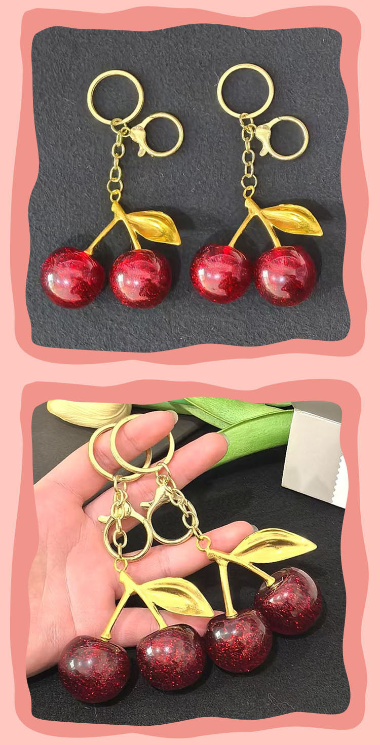 국경 간 시뮬레이션 과일 체리 키 체인 금속 키 백 펜던트 창조적 인 자동차 키 체인
