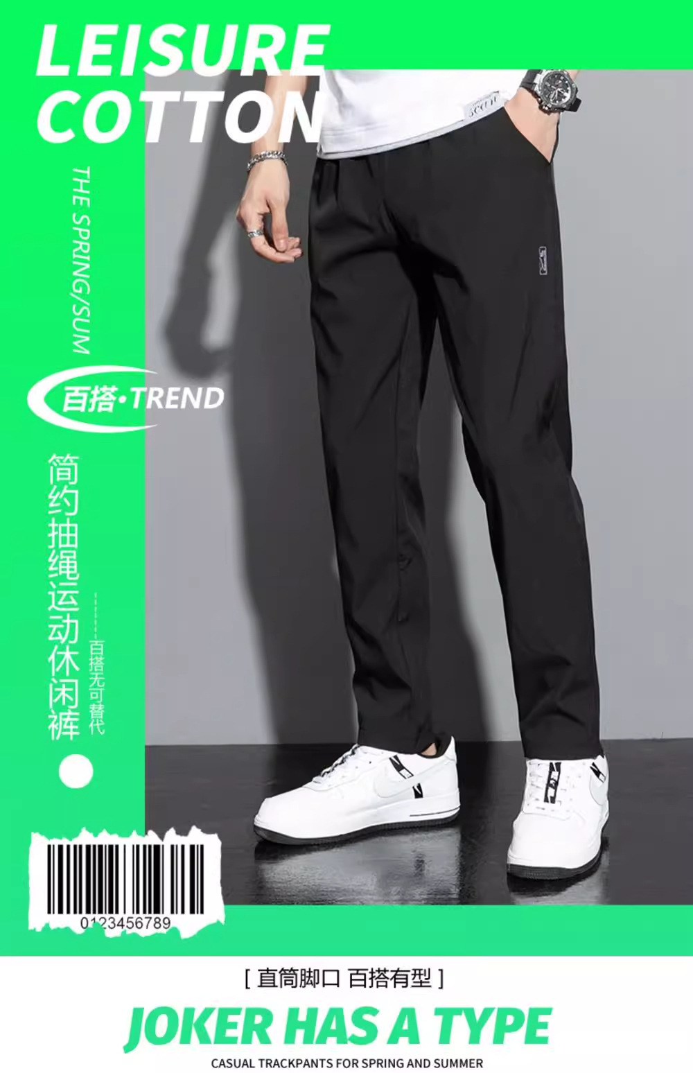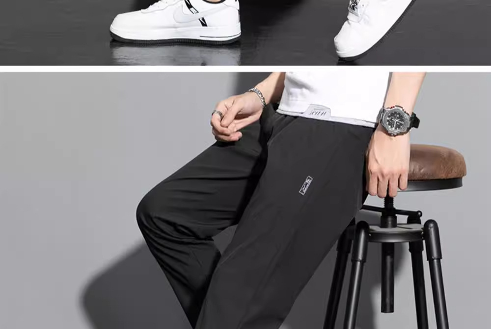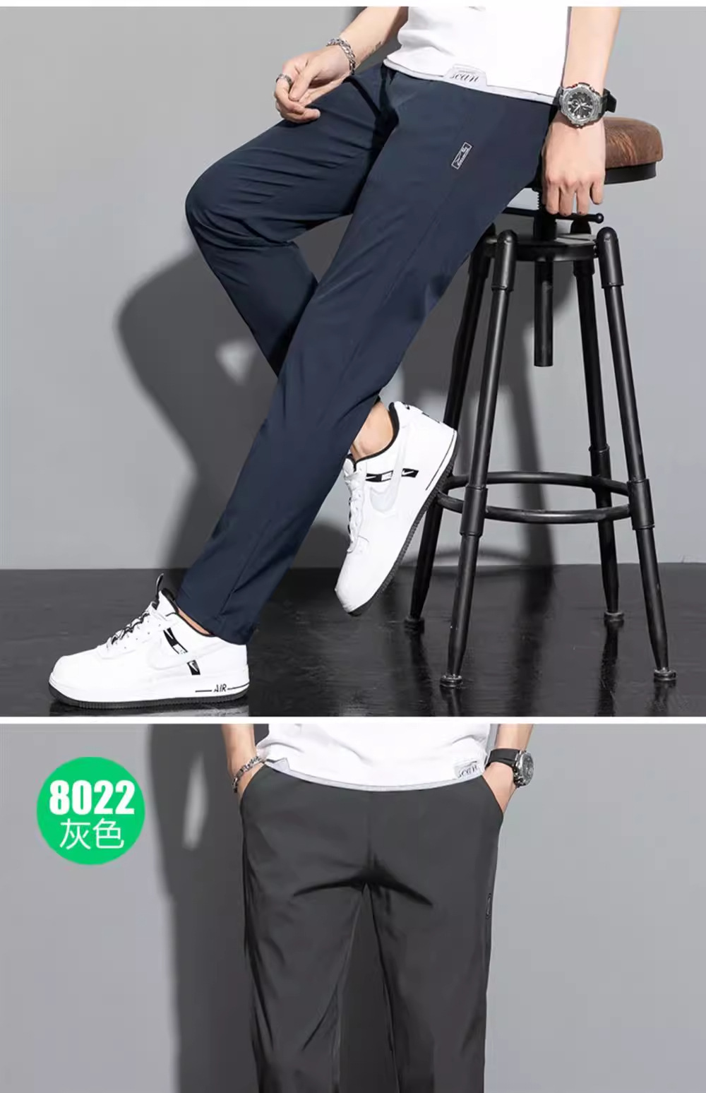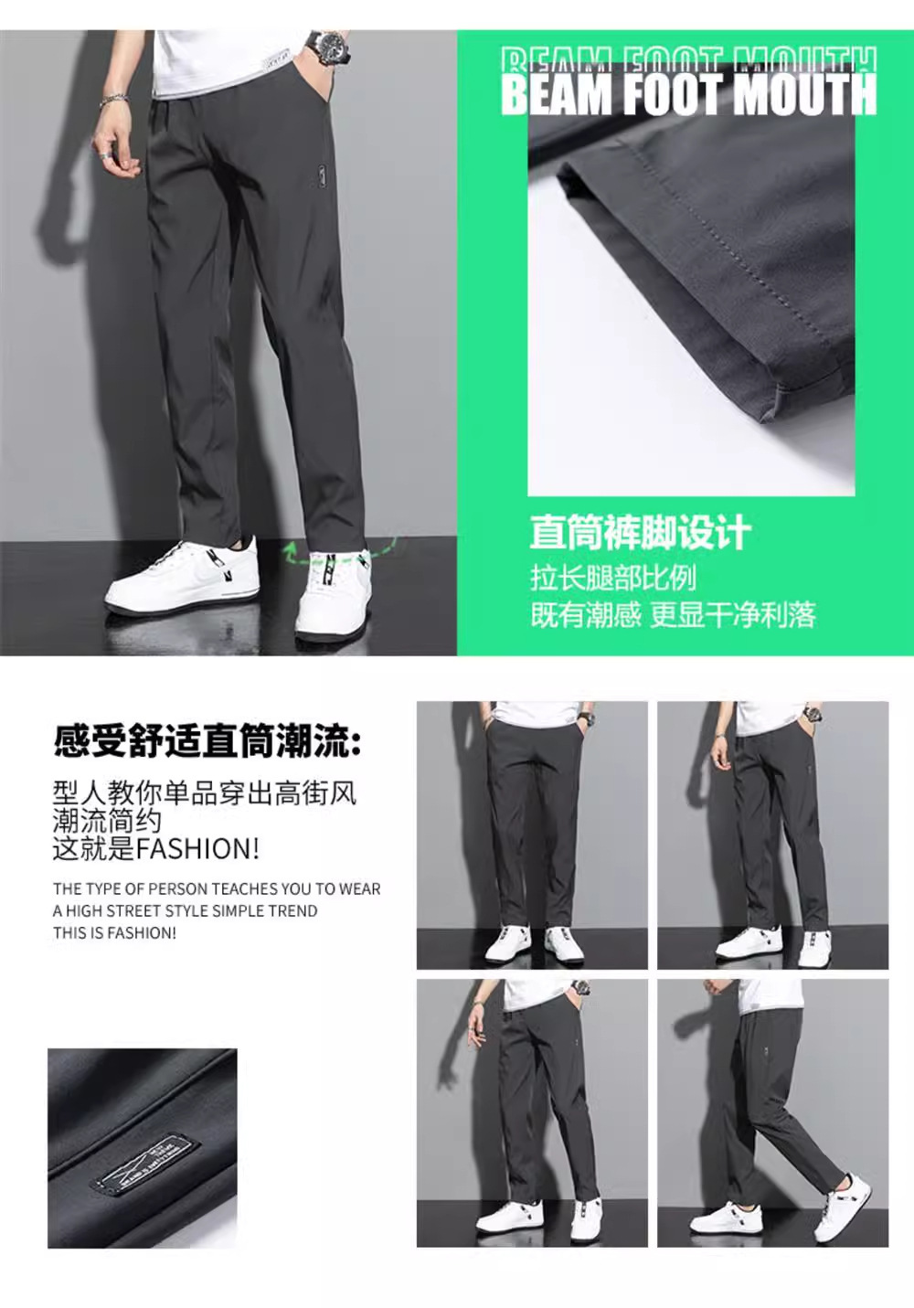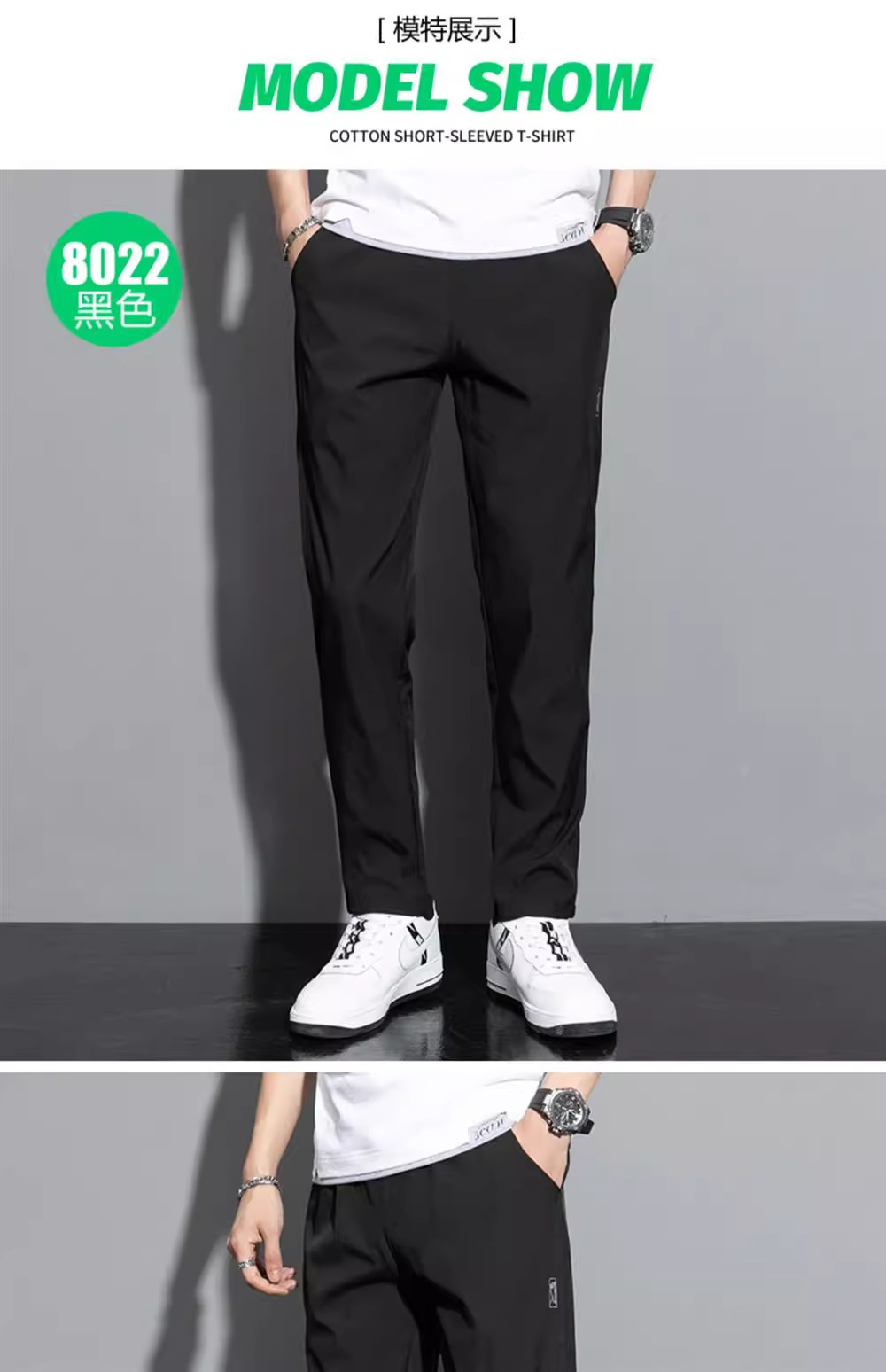 아이스 실크 스트레이트 팬츠 남성 여름 얇은 속건 남성 바지 대형 트렌디 브랜드 여름 스포츠 캐주얼 바지 루즈스토어 가기