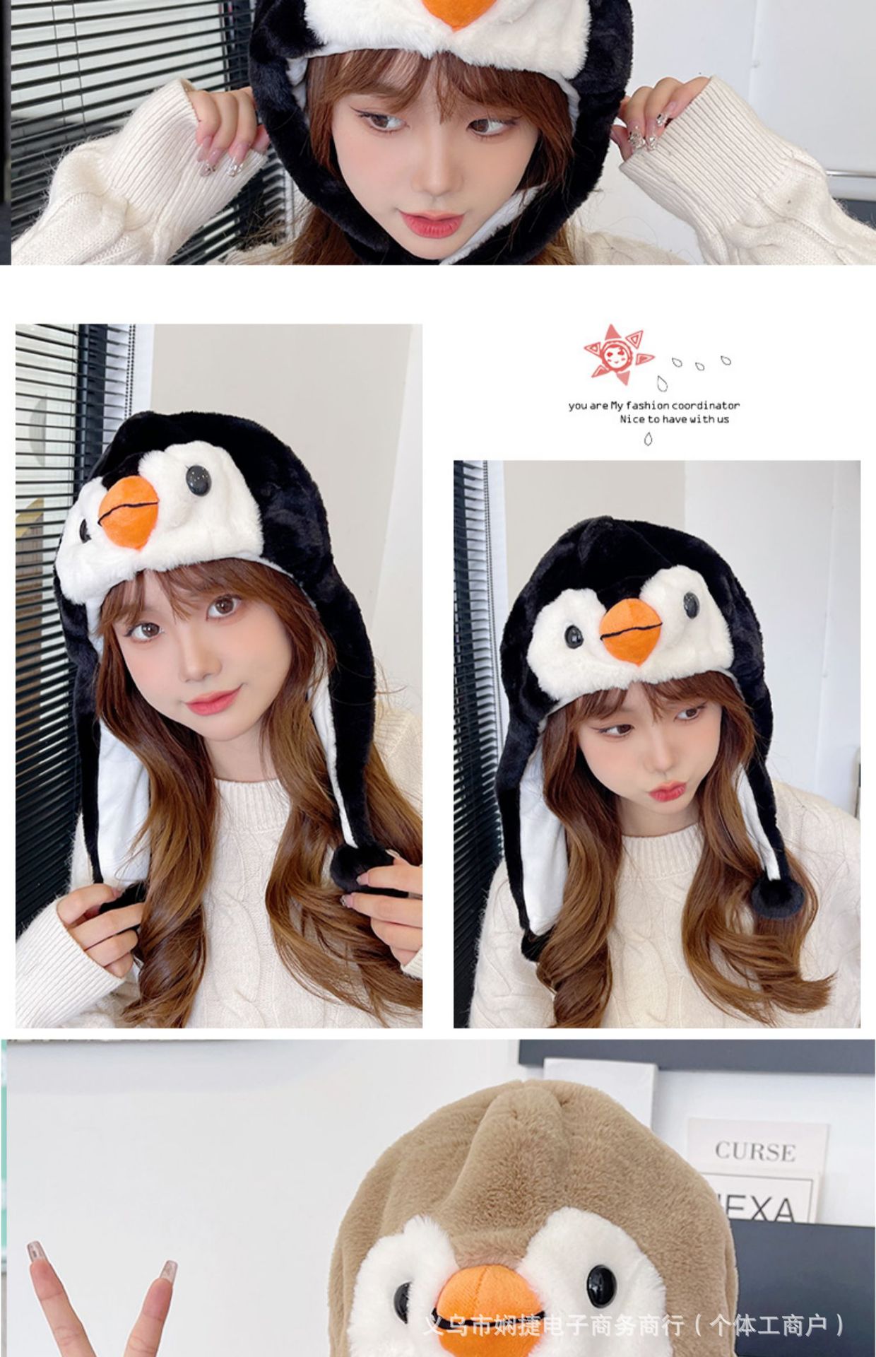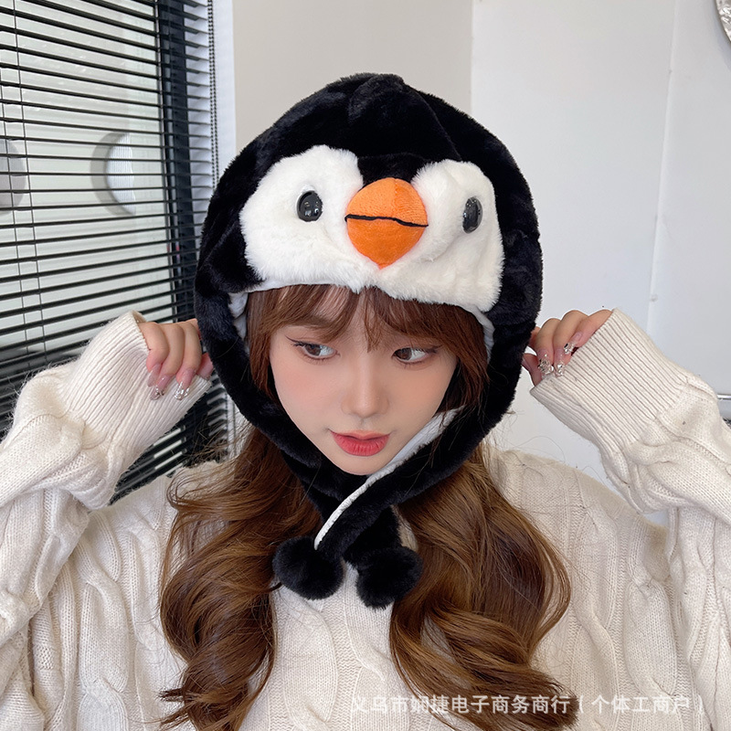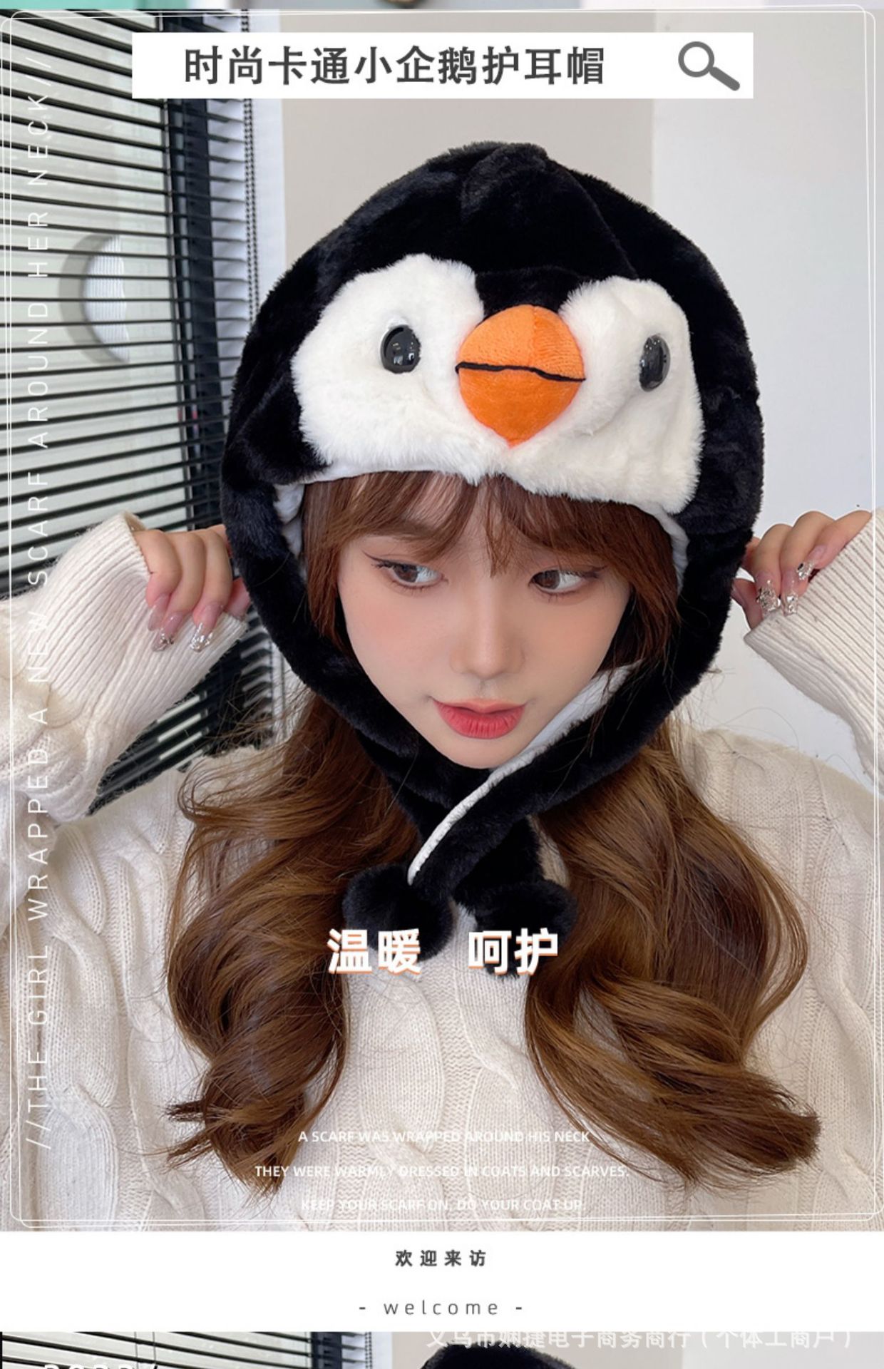 펭귄 모자 겨울 따뜻한 귀여운 만화 재미 있은 커플 두꺼운 사진 소품 귀 보호 모자 승마 모자스토어 가기