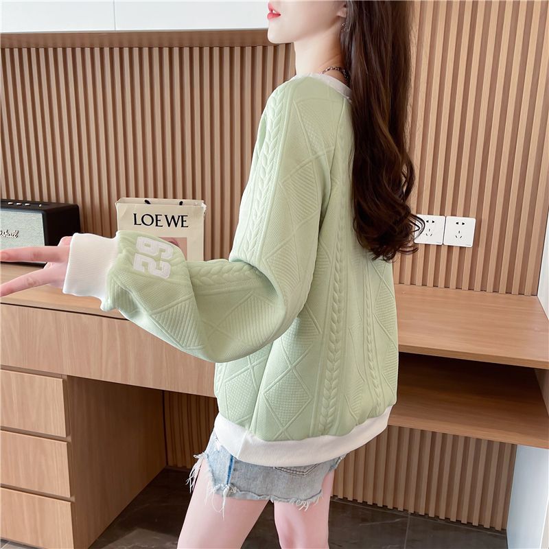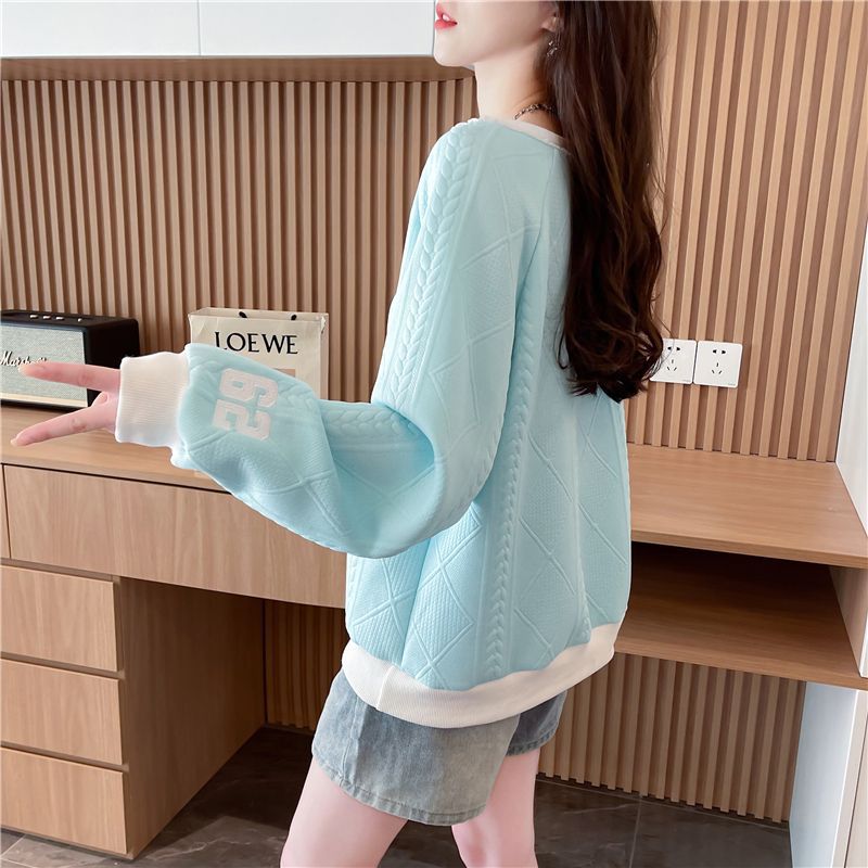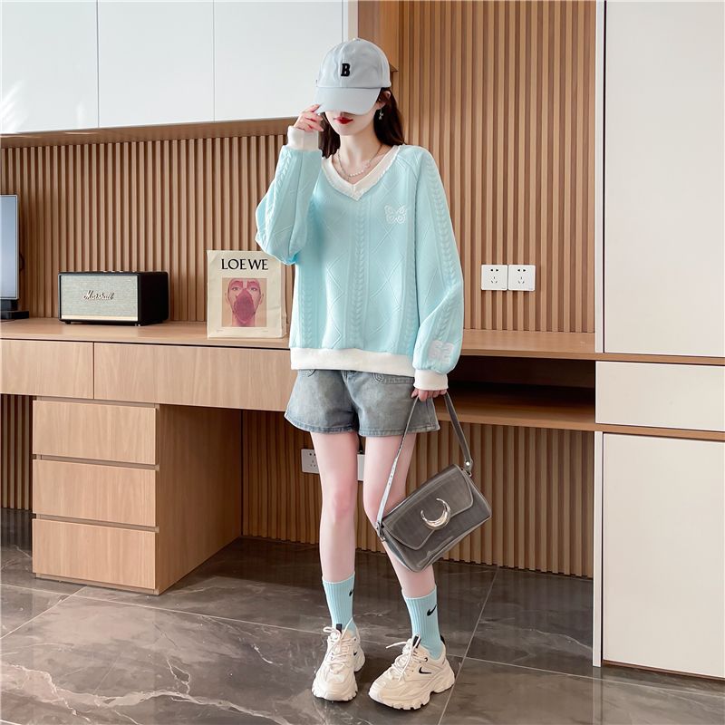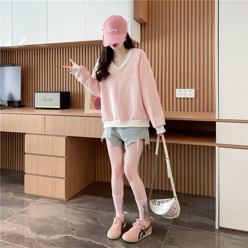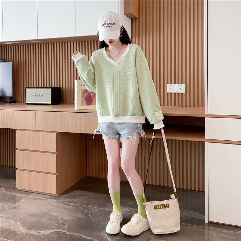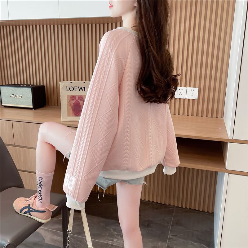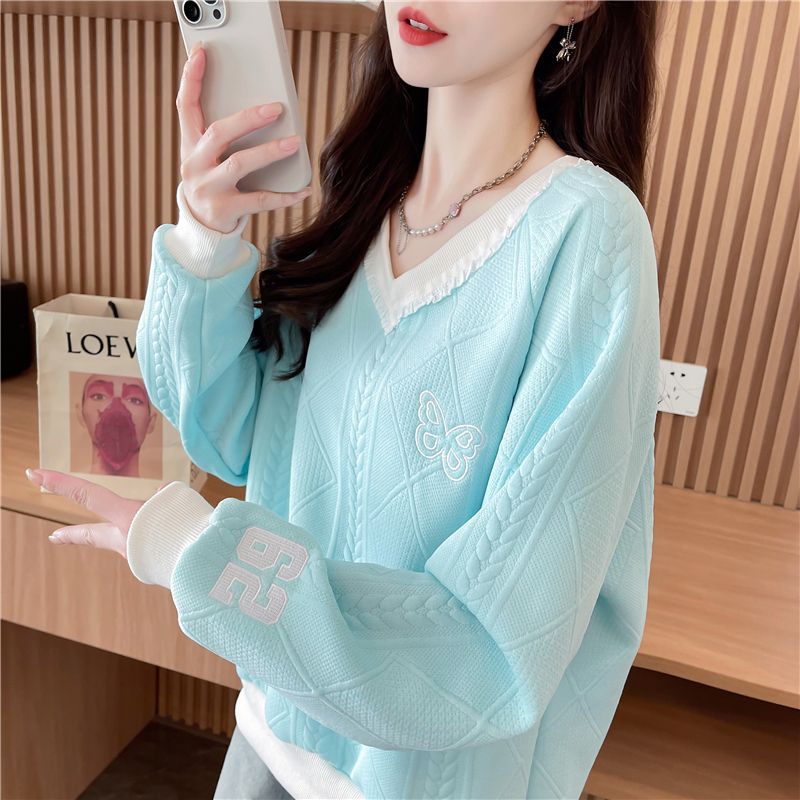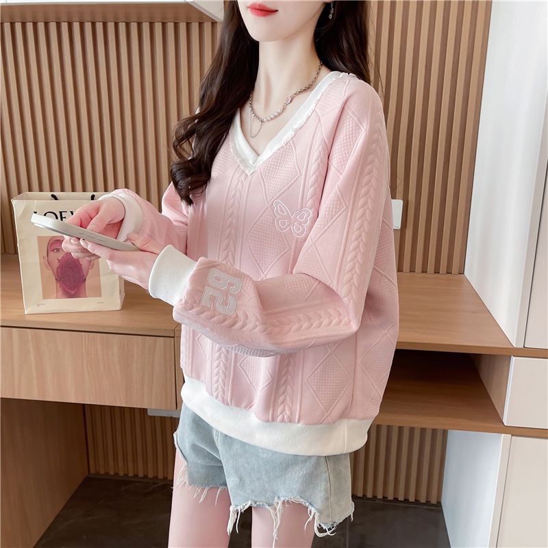 이른 봄 대비 V 넥 땀 여성의 봄과 가을 2025 새로운 느슨한 플러스 사이즈 작은 디자인 레이스 탑스토어 가기