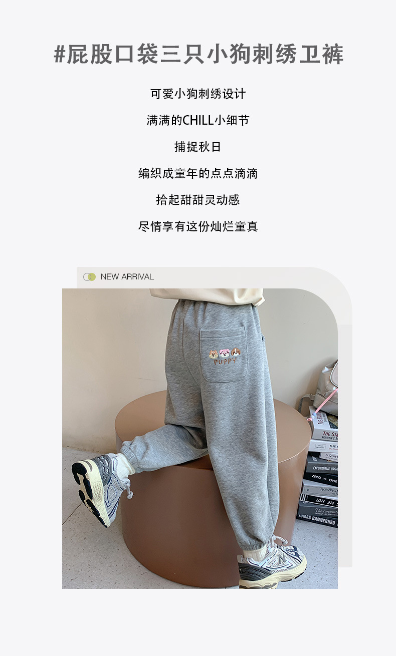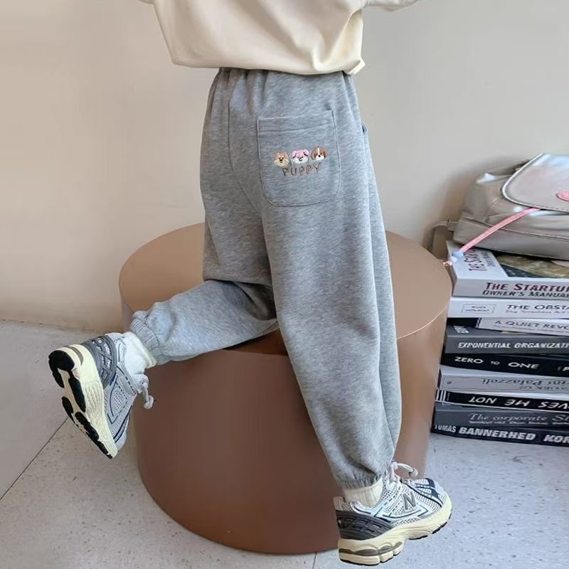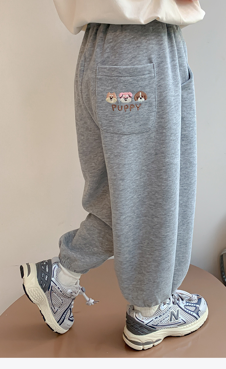 • 회색 개 자수 스웨트팬츠 봄과 가을