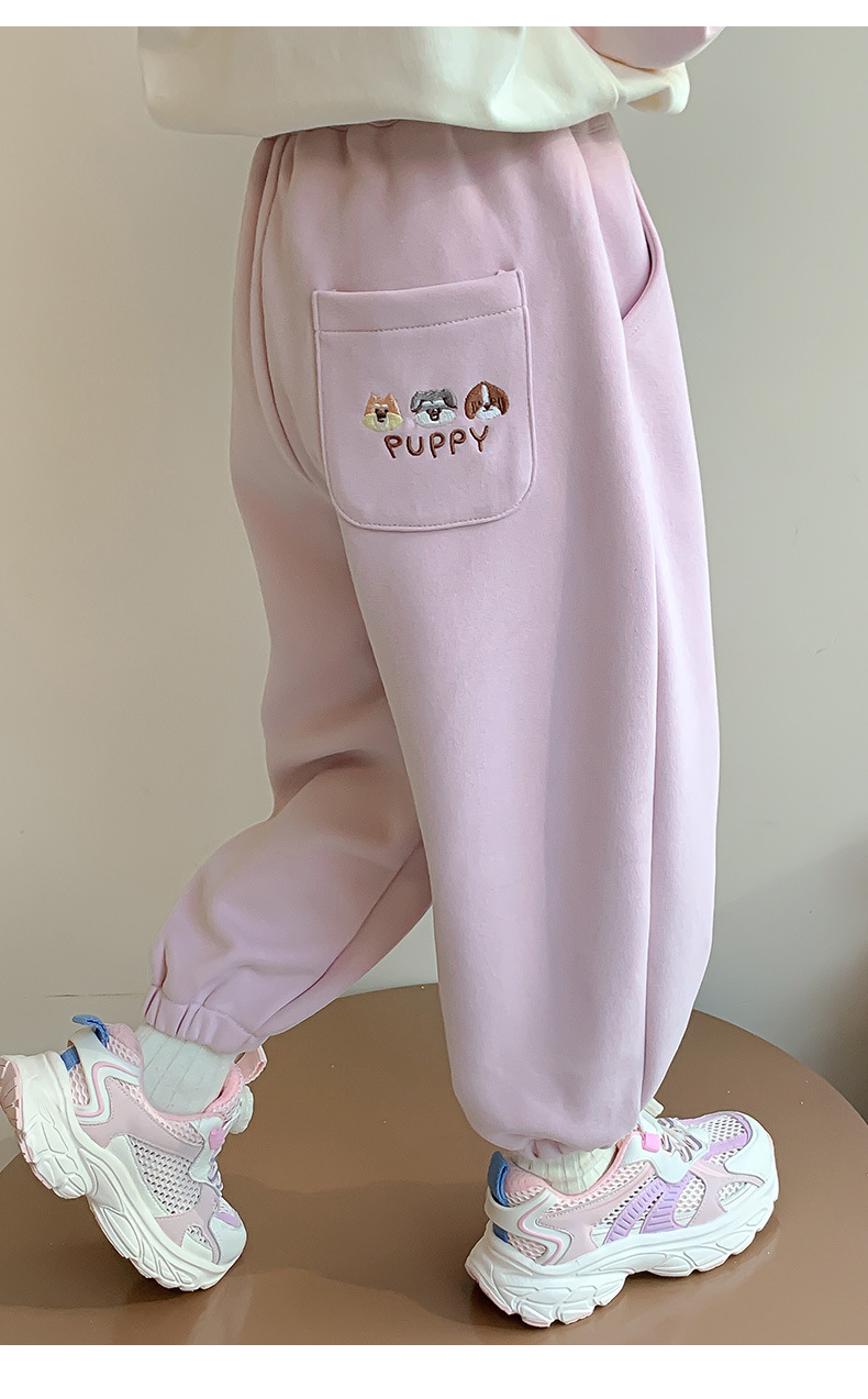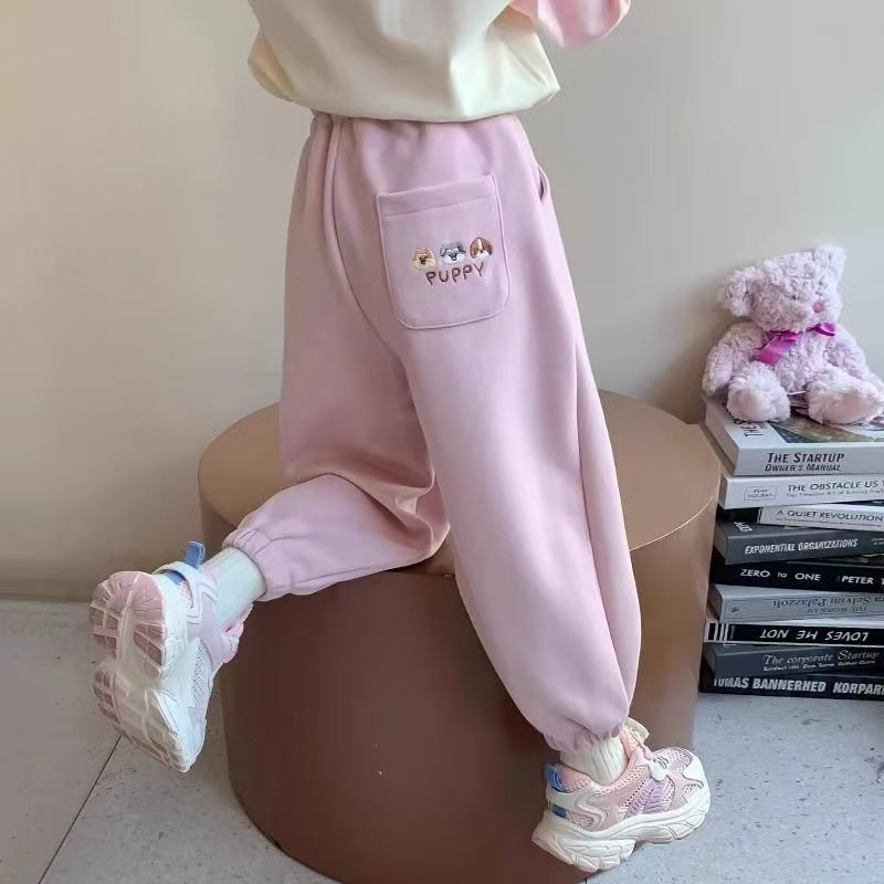 • 핑크색 개 자수 스웨트팬츠 봄과 가을