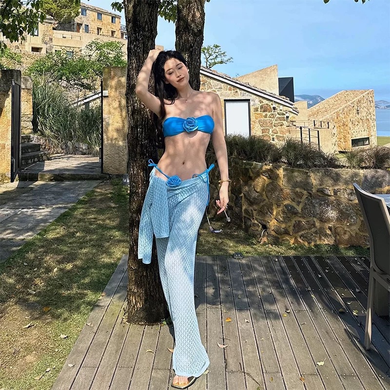 新款泰国泳衣黄色罩衫度假长裙泳衣比基尼拍照绝美高级感温泉泳衣