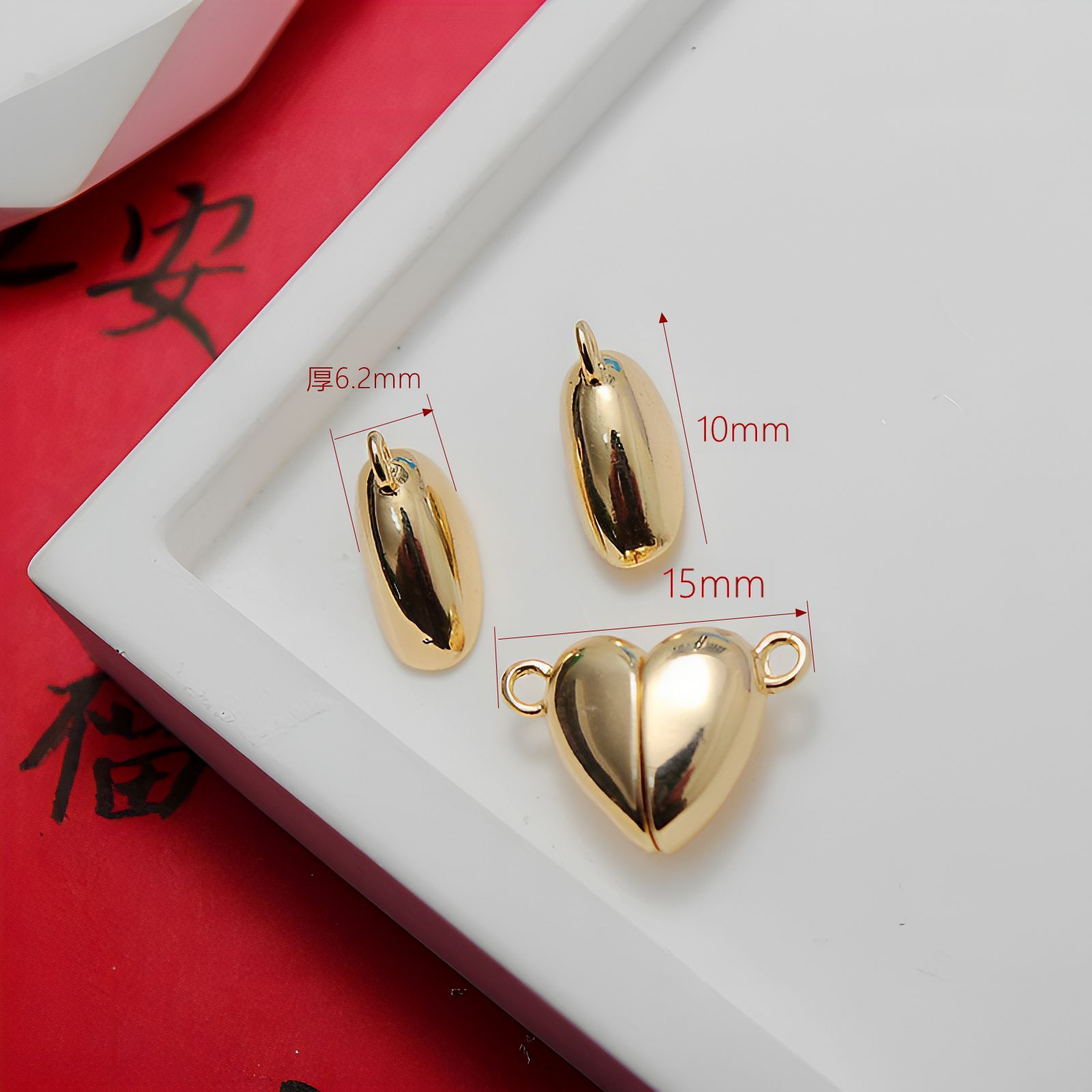 14K包金保银色爱心磁铁扣手链项链收尾连接头吸铁扣DIY手工饰品