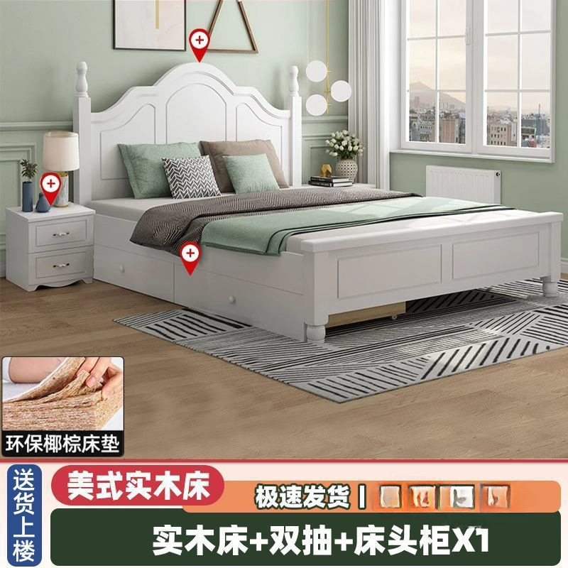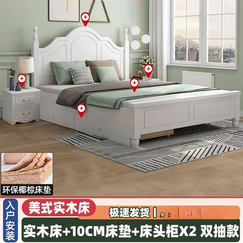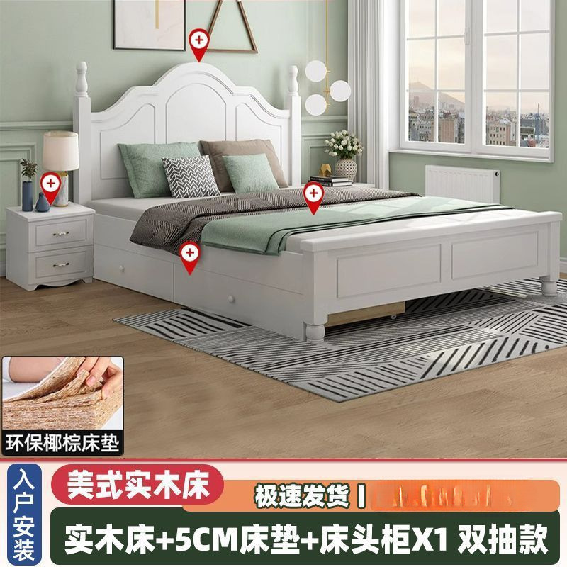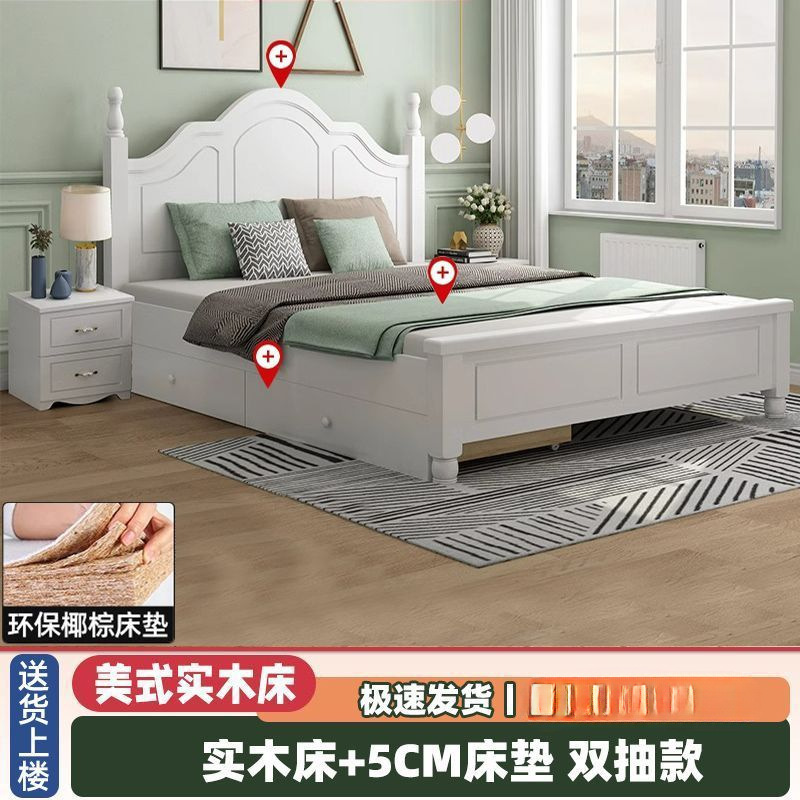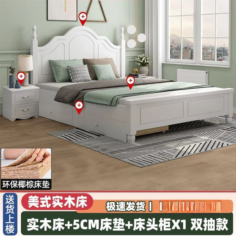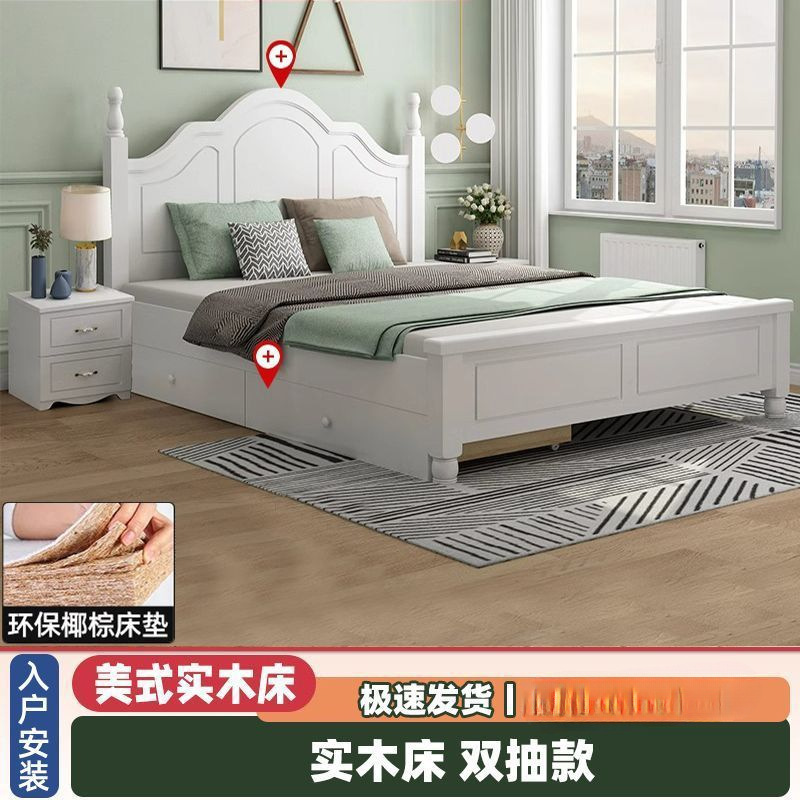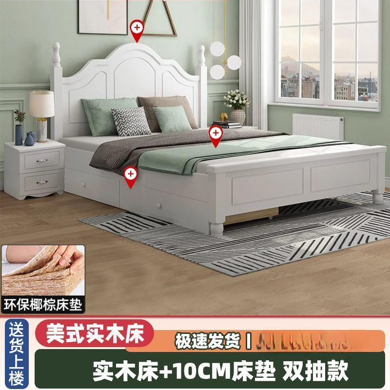 미국 스타일의 단단한 나무 침대 현대 간단한 마스터 침실 싱글 침대 렌탈 룸 더블 스토리지 퀸 침대 소나무 멀티 지원 침대 보드스토어 가기