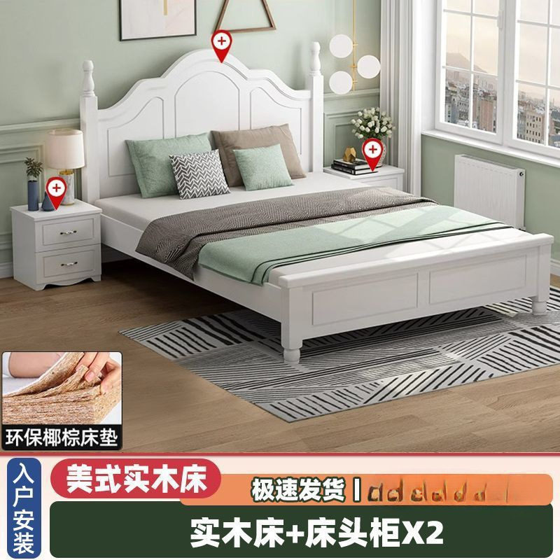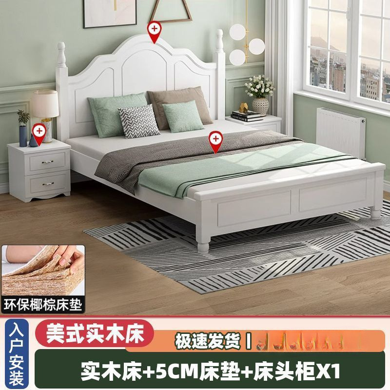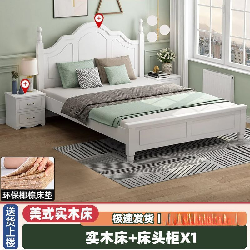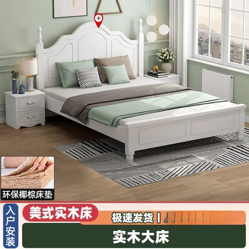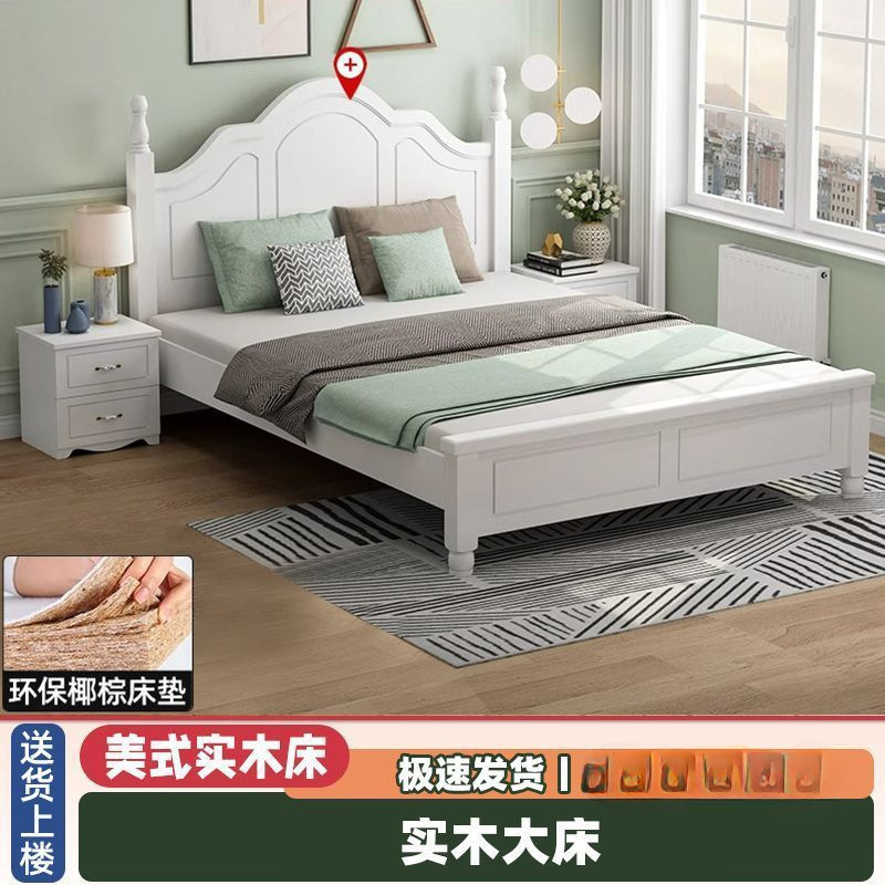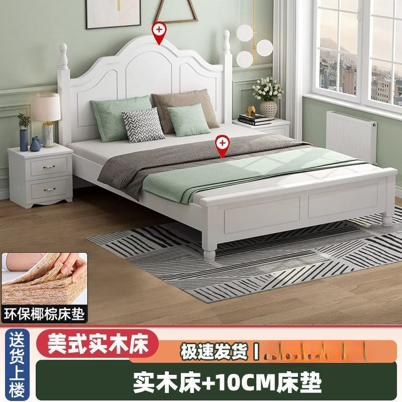 미국 스타일의 단단한 나무 침대 현대 간단한 마스터 침실 싱글 침대 렌탈 룸 더블 스토리지 퀸 침대 소나무 멀티 지원 침대 보드스토어 가기