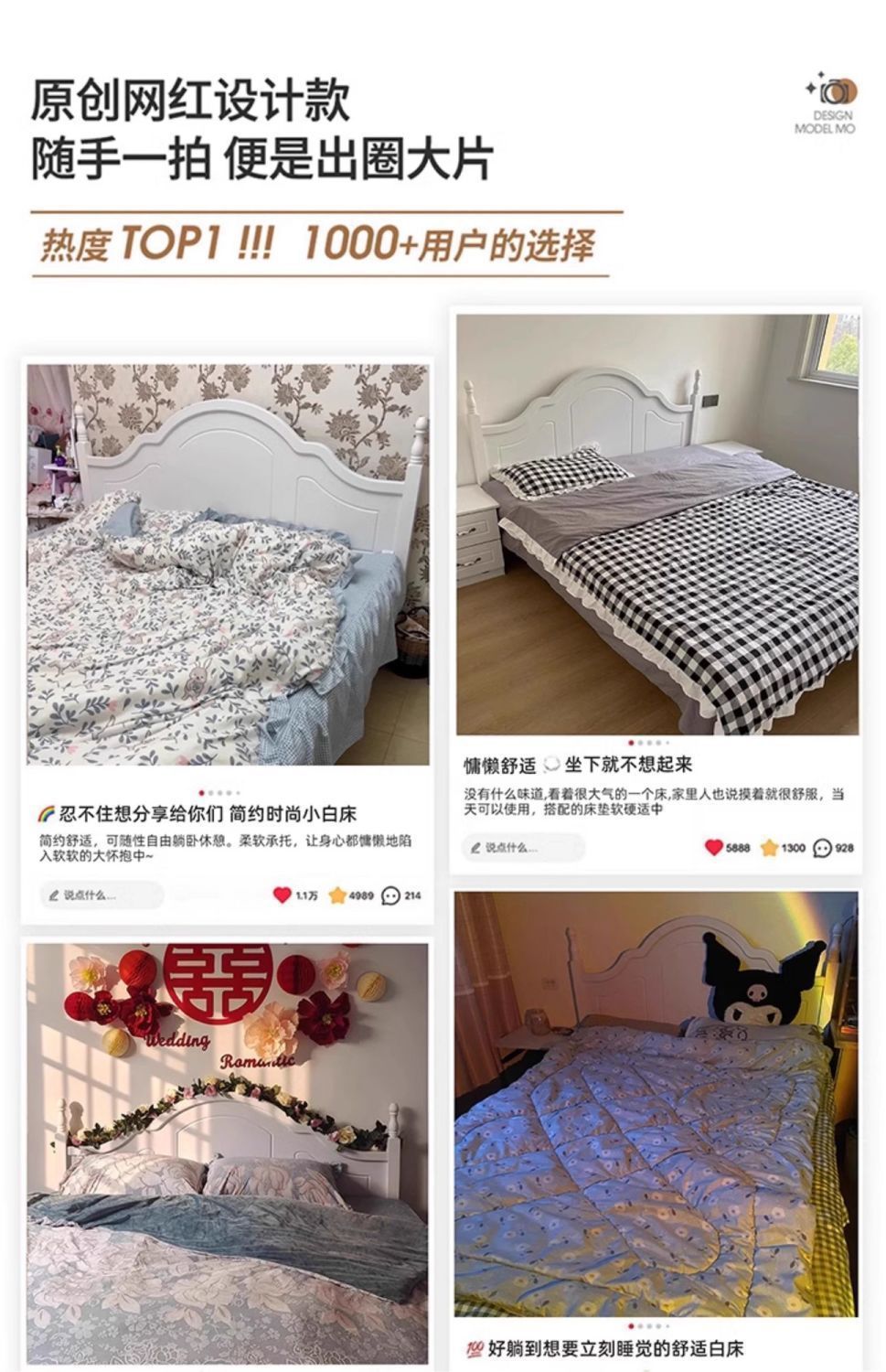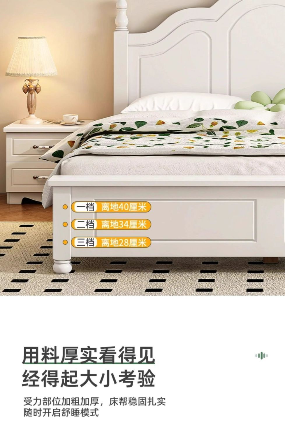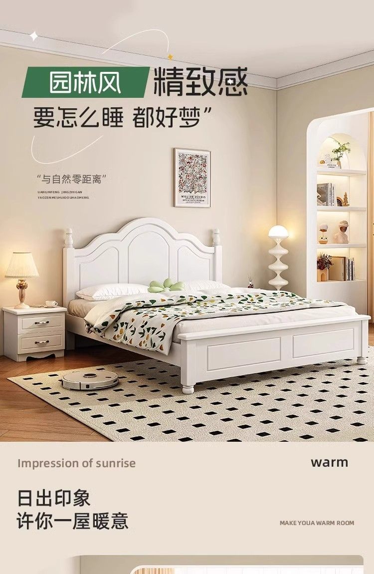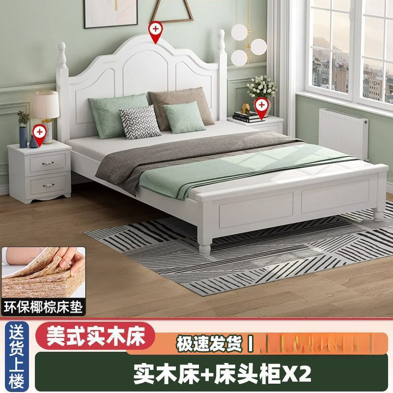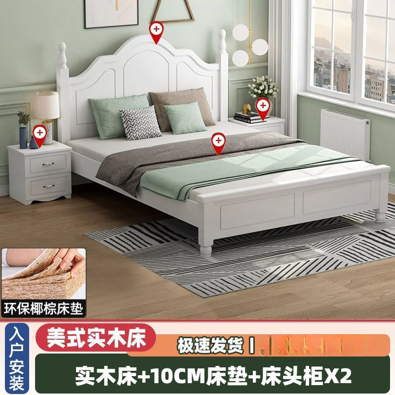 미국 스타일의 단단한 나무 침대 현대 간단한 마스터 침실 싱글 침대 렌탈 룸 더블 스토리지 퀸 침대 소나무 멀티 지원 침대 보드스토어 가기