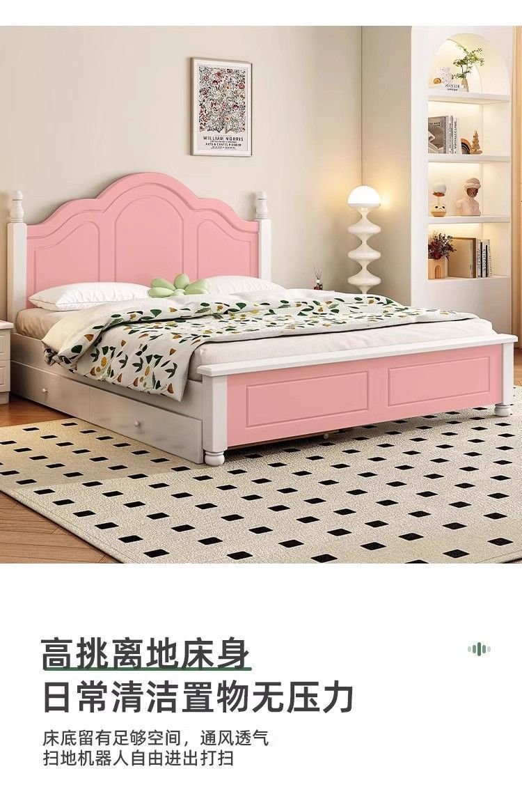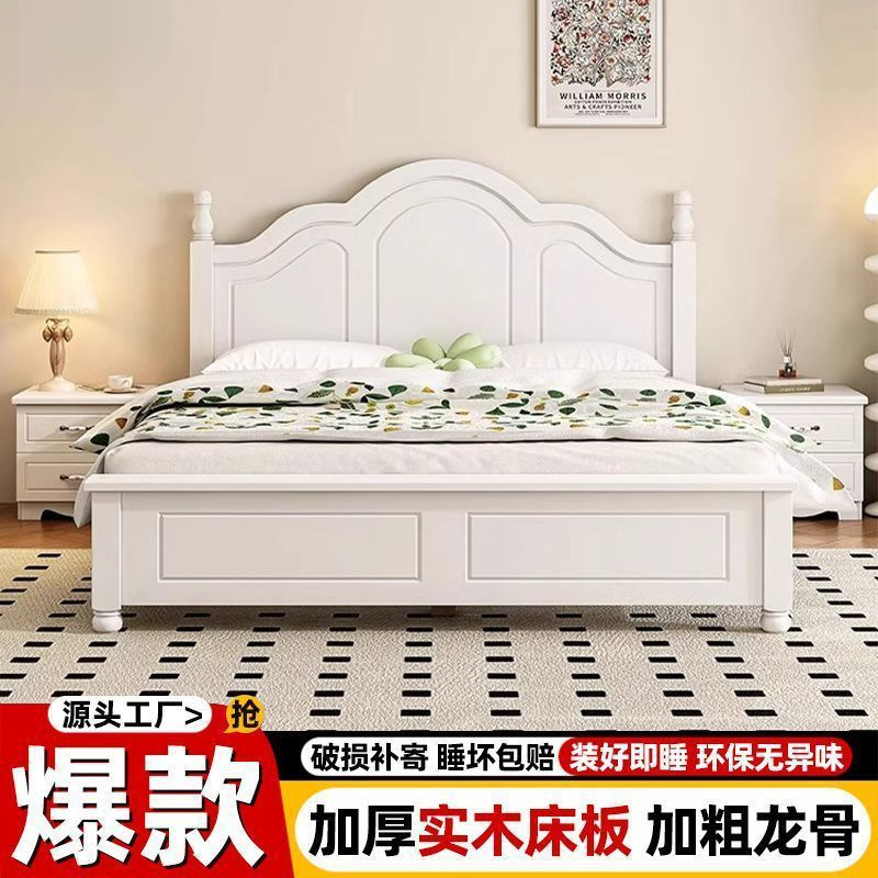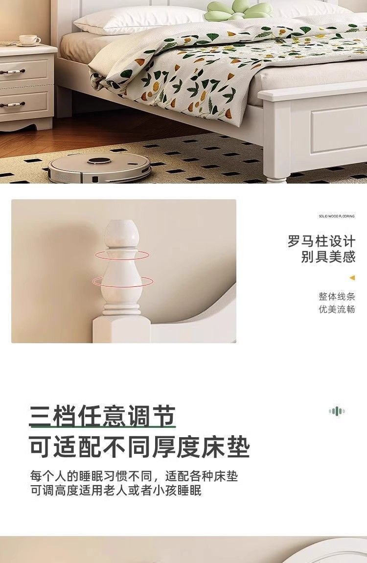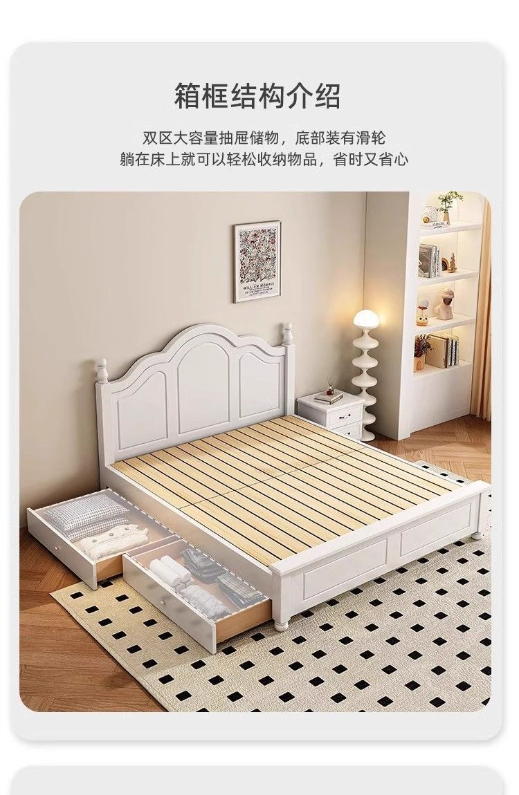 미국 스타일의 단단한 나무 침대 현대 간단한 마스터 침실 싱글 침대 렌탈 룸 더블 스토리지 퀸 침대 소나무 멀티 지원 침대 보드