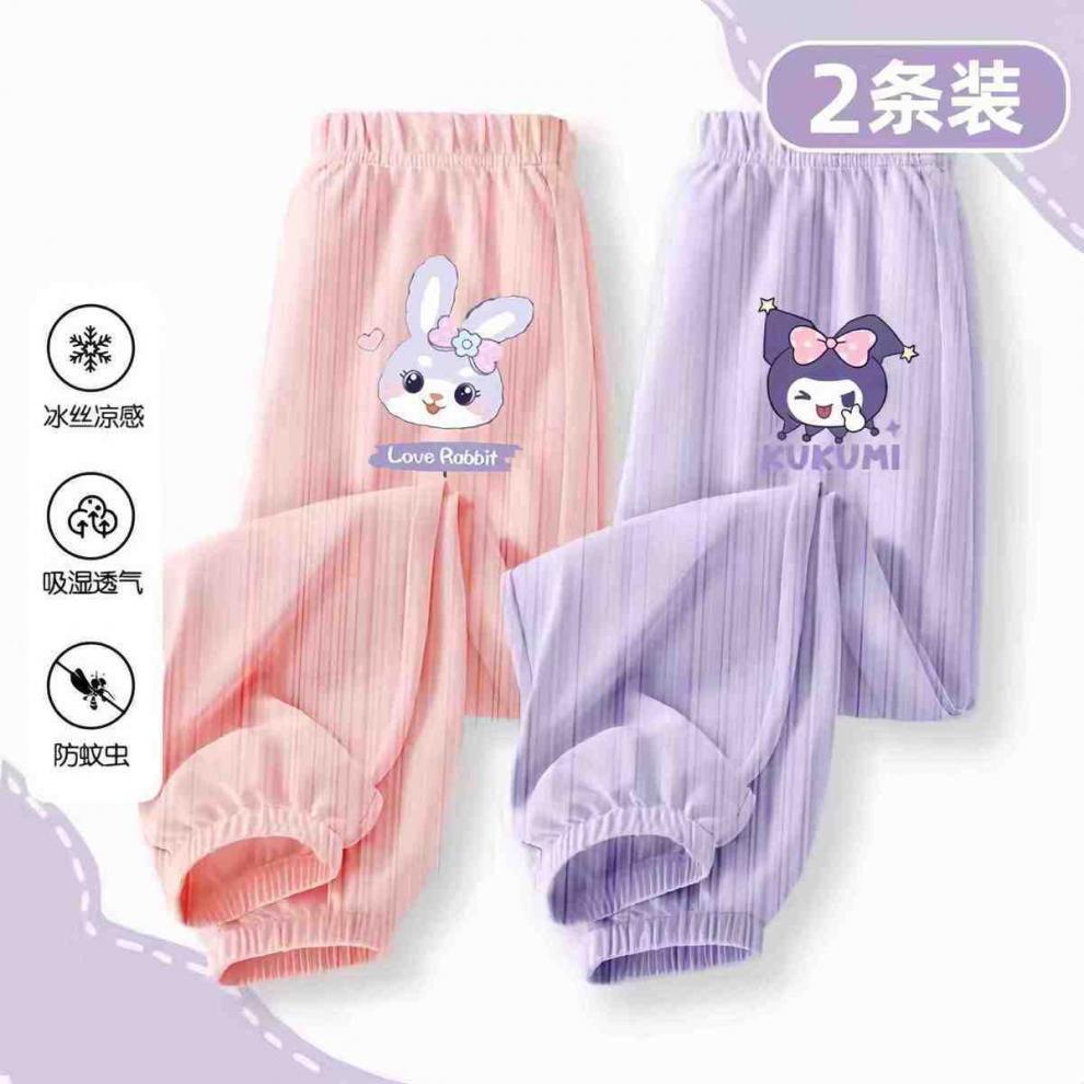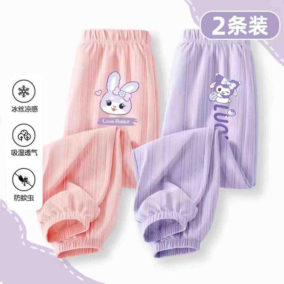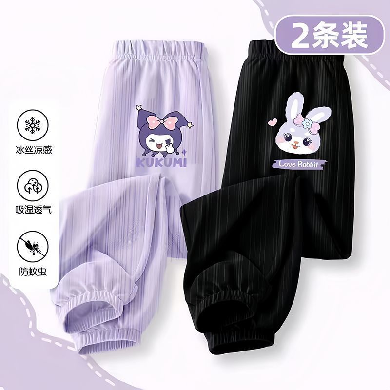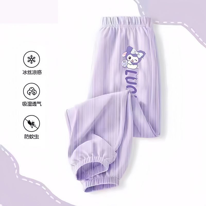 소녀 안티 모기 바지 여름 얇은 바지 2024 새로운 통기성 아이스 실크 바지 어린이 캐주얼 스포츠 와이드 다리 바지