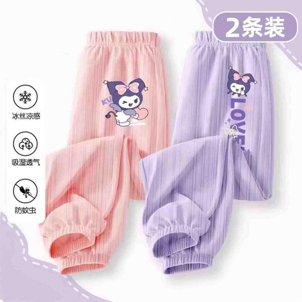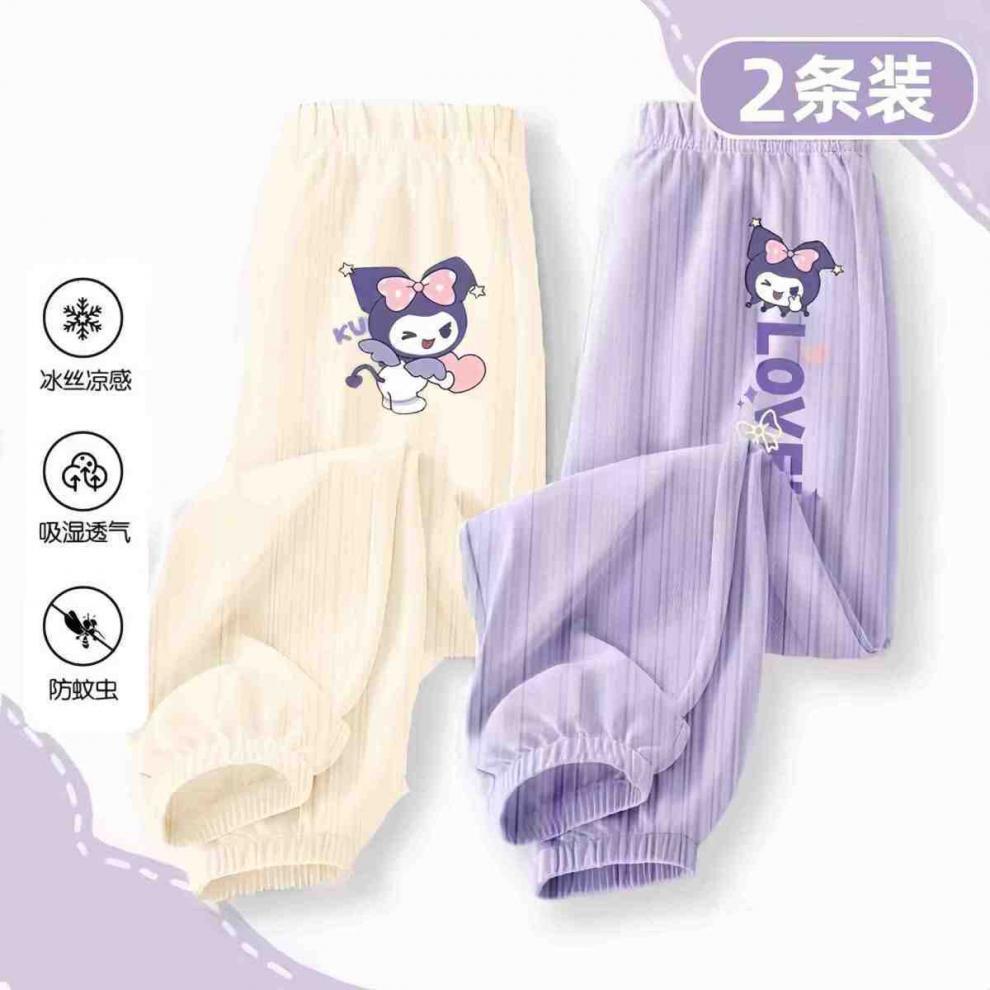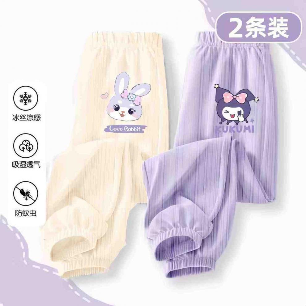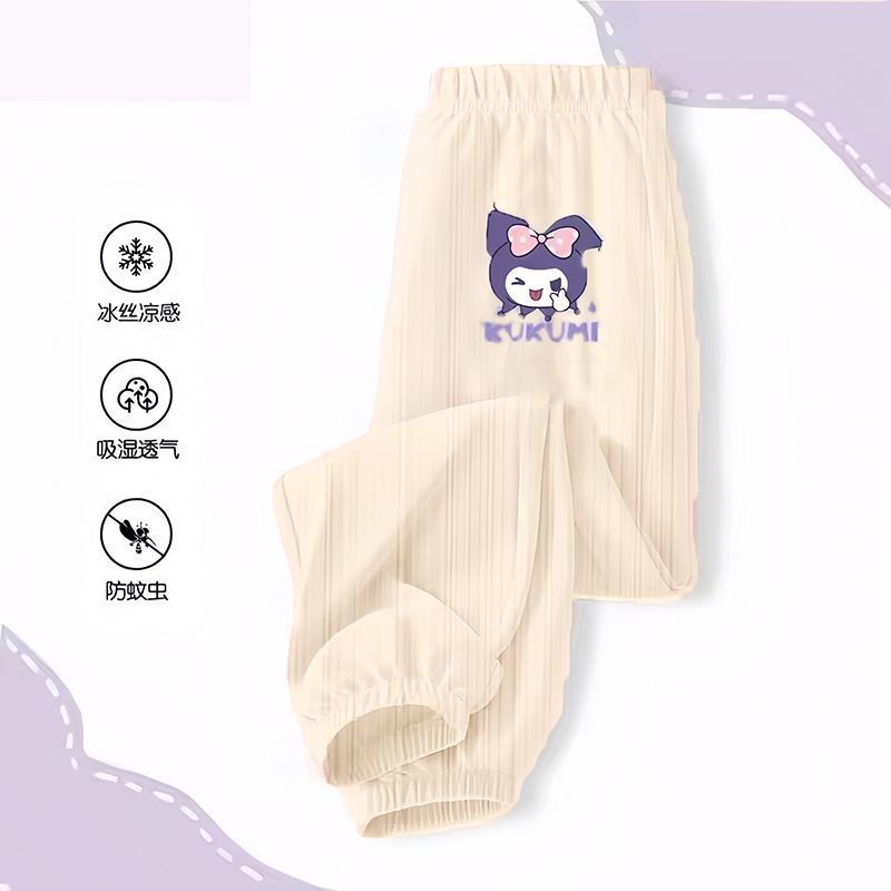 소녀 안티 모기 바지 여름 얇은 바지 2024 새로운 통기성 아이스 실크 바지 어린이 캐주얼 스포츠 와이드 다리 바지