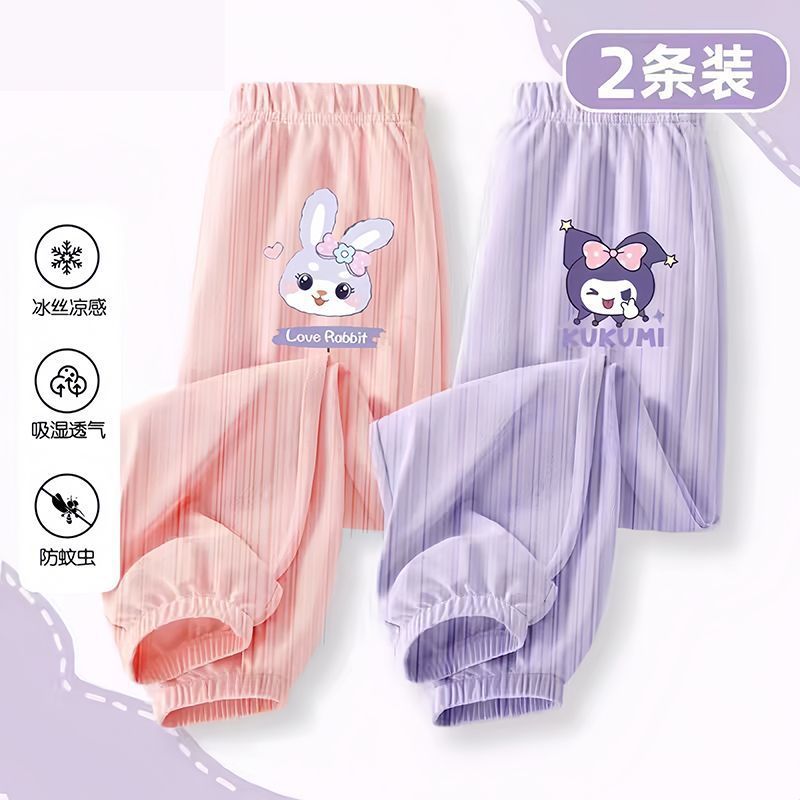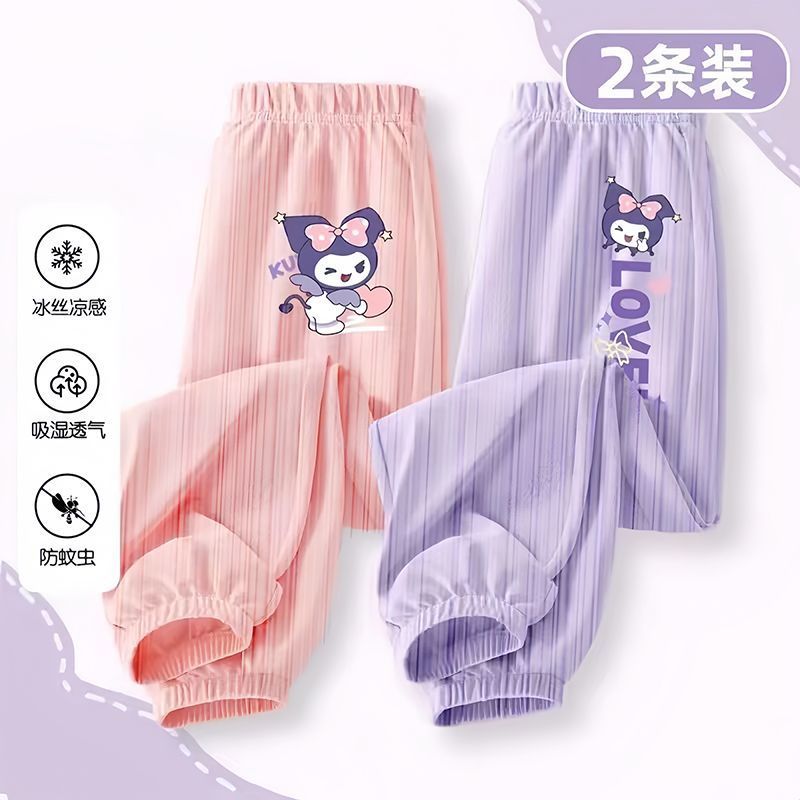 소녀 안티 모기 바지 여름 얇은 바지 2024 새로운 통기성 아이스 실크 바지 어린이 캐주얼 스포츠 와이드 다리 바지스토어 가기