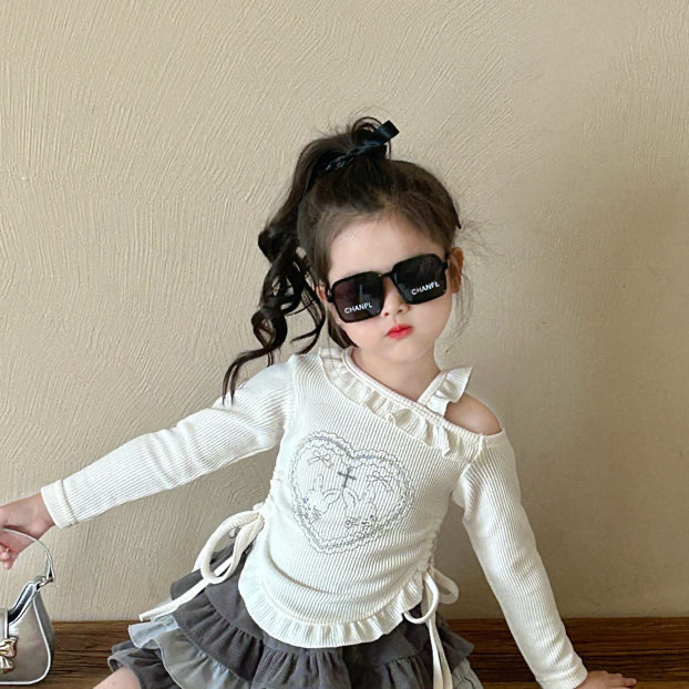어린이 세련된 어깨베이스 셔츠 2025 봄 새 소녀 유행 치마 아기 투피스 케이크 스커트스토어 가기