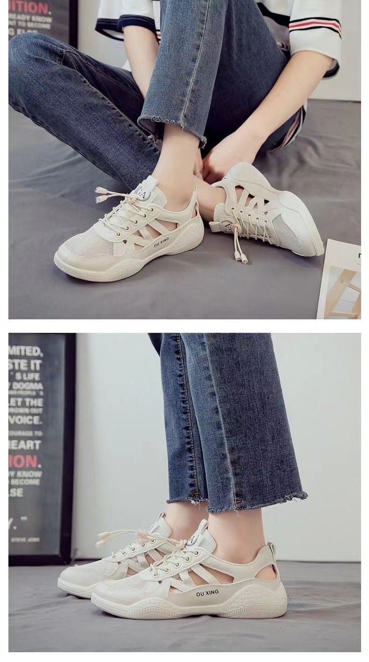 작은 흰색 신발 여자 2025 여름 새로운 할로우 얇은 메쉬 신발 스커트 올 매치 스포츠 홀 샌들스토어 가기
