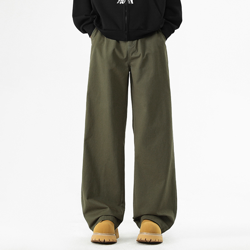 아메리칸 레트로 트렌디 한 헤비 세탁 코튼 크라우드 팬츠 남성용 봄과 가을 새로운 간단한 올 매치 캐주얼 바지