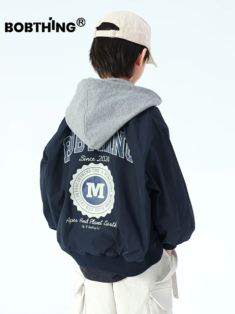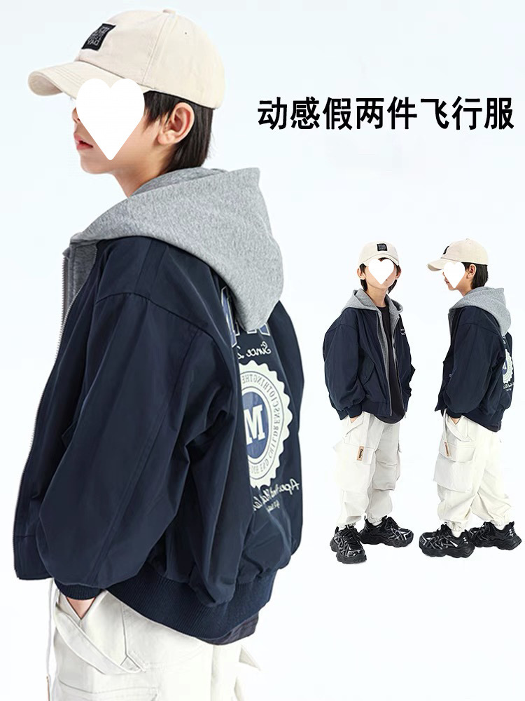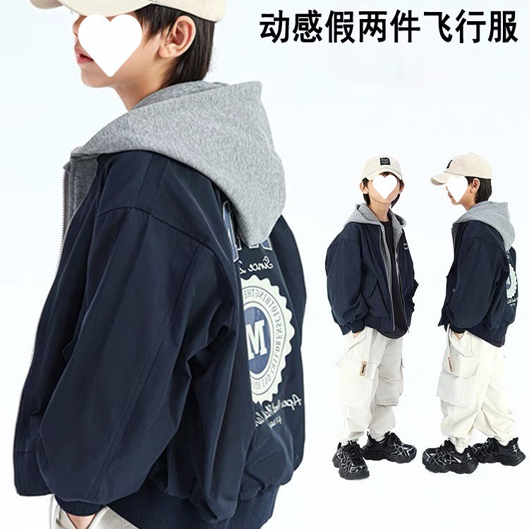 소년의 가을 가짜 2 피스 야구 세트 후드 카디건 재킷 어린이 2025 새로운 어린이 탑스토어 가기